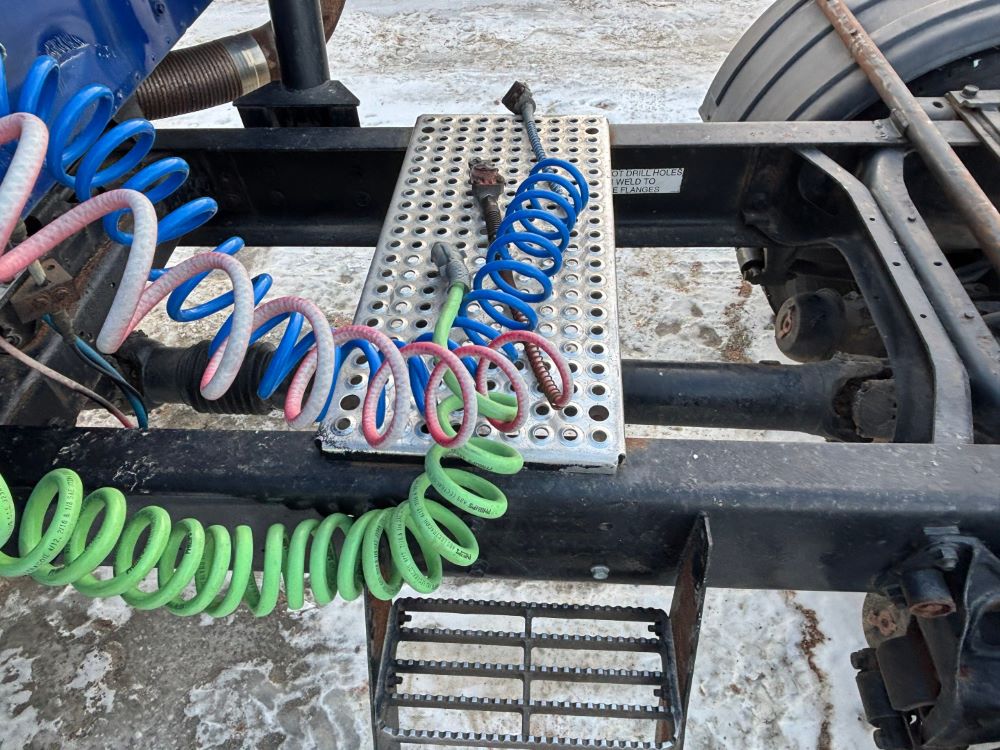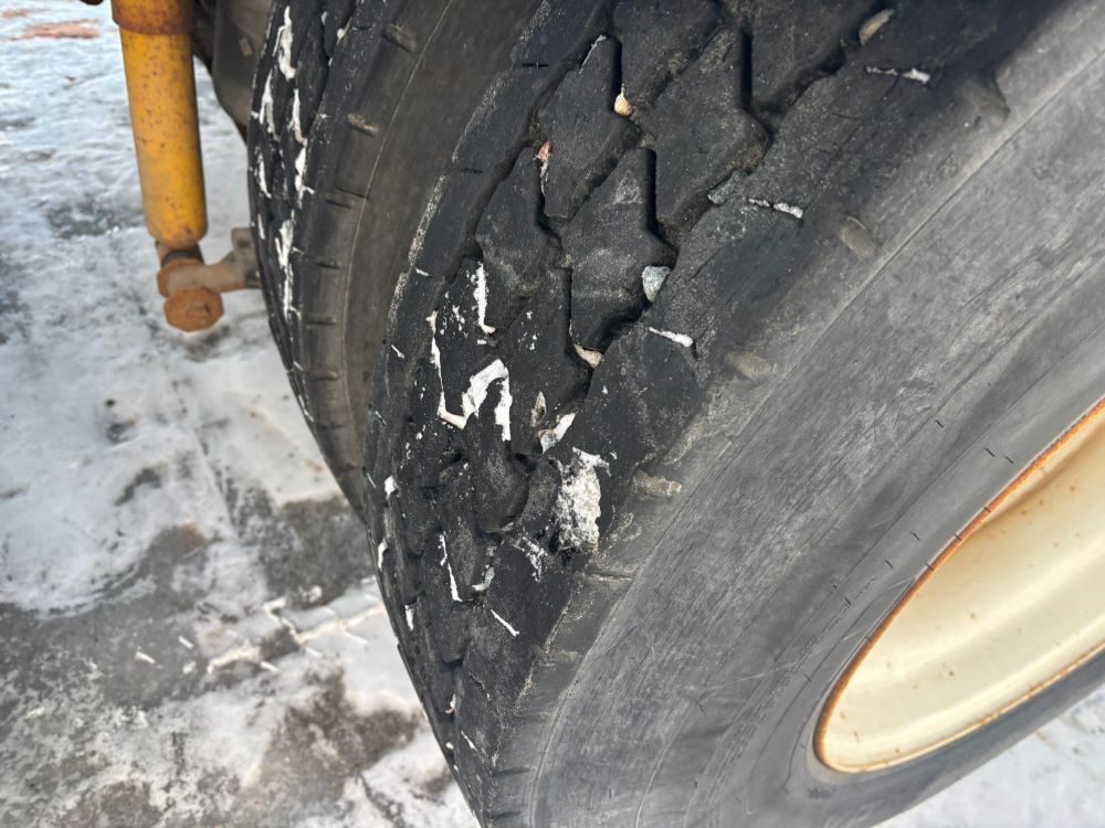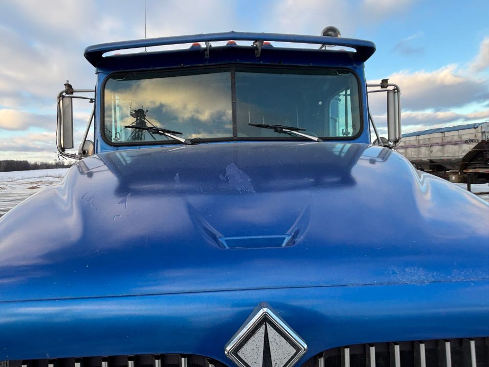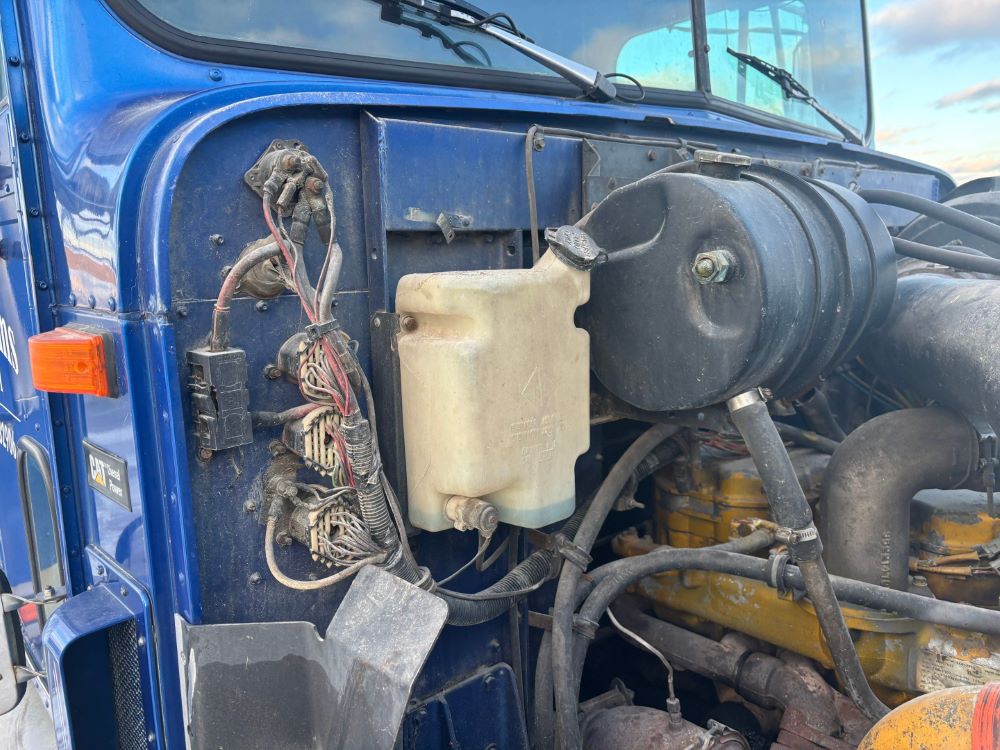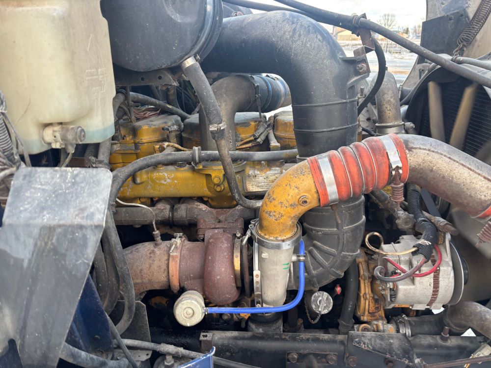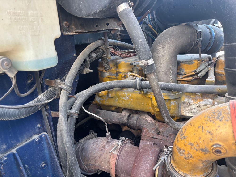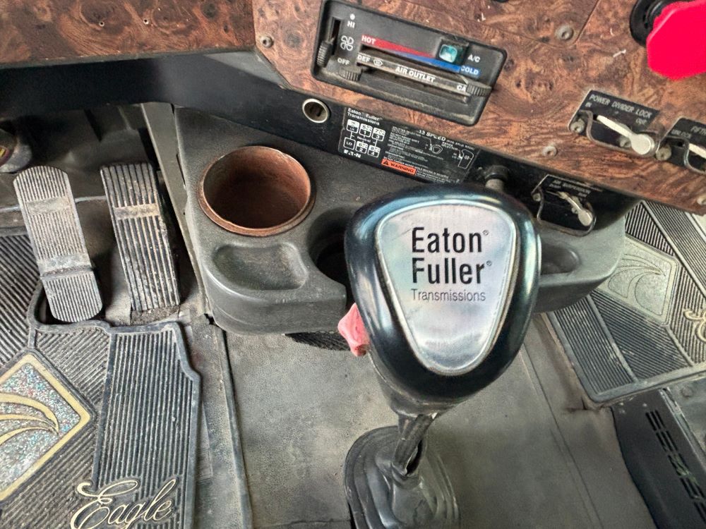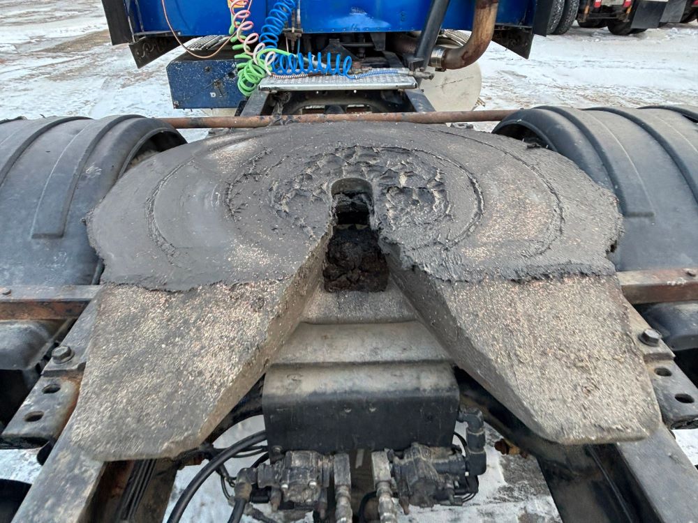 1999 International 9200 Truck (GP12736, Unit 99), Cat C-12 diesel engine, Eaton Fuller 13 speed transmission, heat, Am/Fm radio, Pro Sleeper, cruise control, tandem axle, air ride suspension, 5th wheel plate, dual fuel tanks, single exhaust, 11R22.5 tires, engine heater, GVWR 52,000 pounds, shows 978,850 miles.