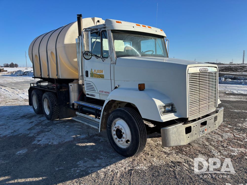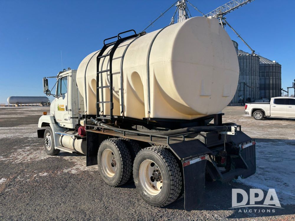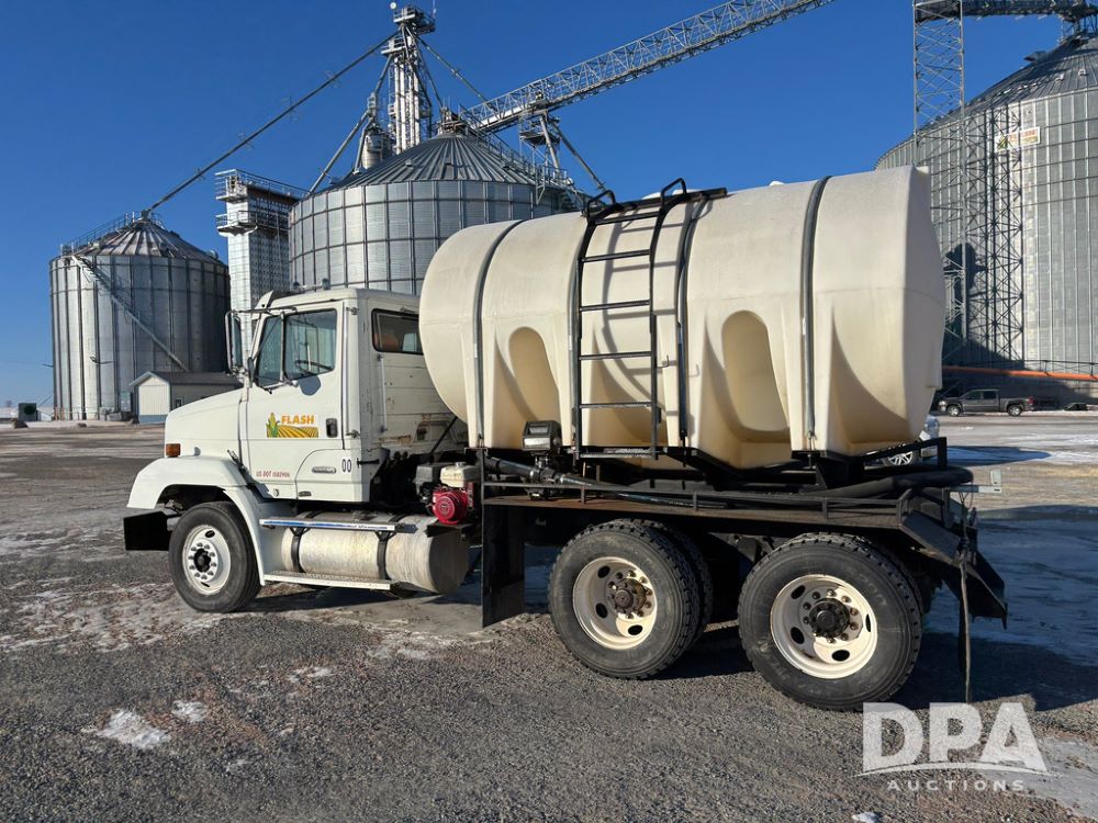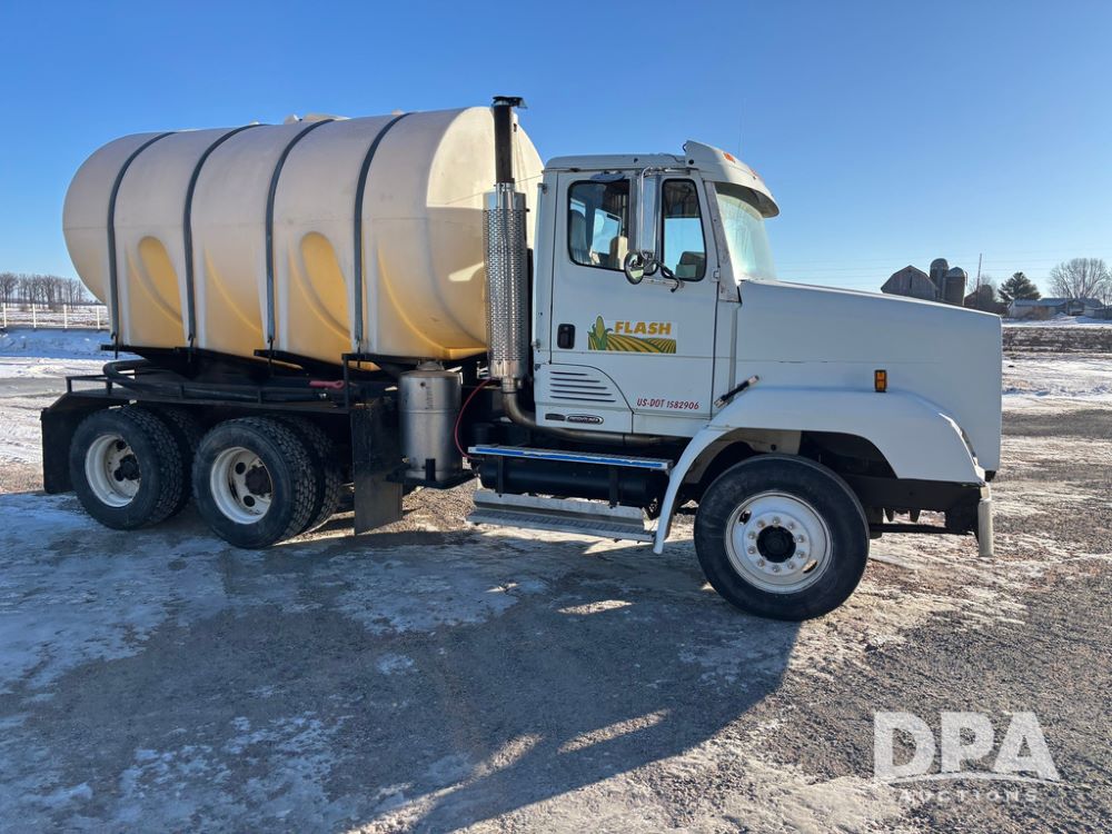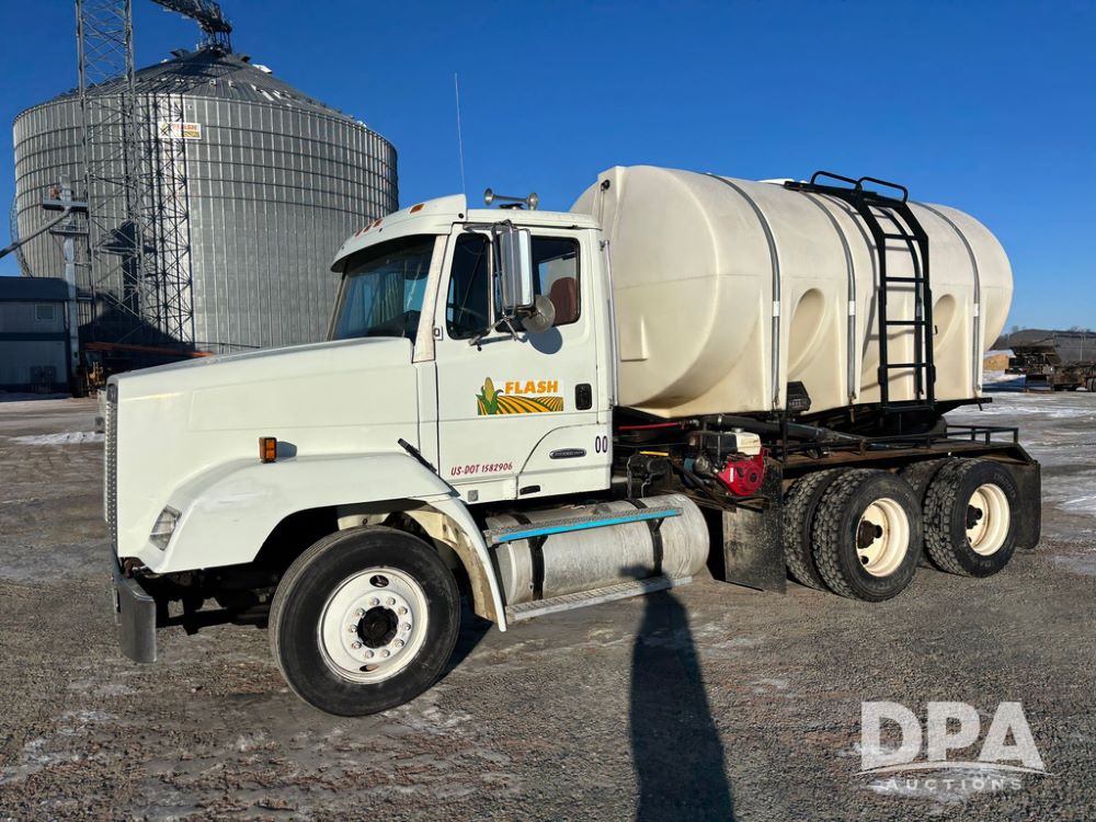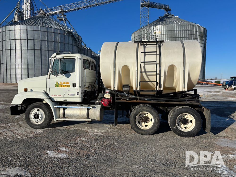 2000 Freightliner Liquid Nurse Truck (GP12735, Unit 00), Detroit Series 60 diesel engine, Eaton Fuller 13 speed transmission, heat, Am/Fm radio, tandem axle, air ride suspension, approx. 3,000 gallon poly liquid nurse tank, Honda GX390 electric start gas motor, pump, single fuel tank, single exhaust, 295/75R22.5 tires, GVWR 52,000 pounds, shows 260,303 miles.