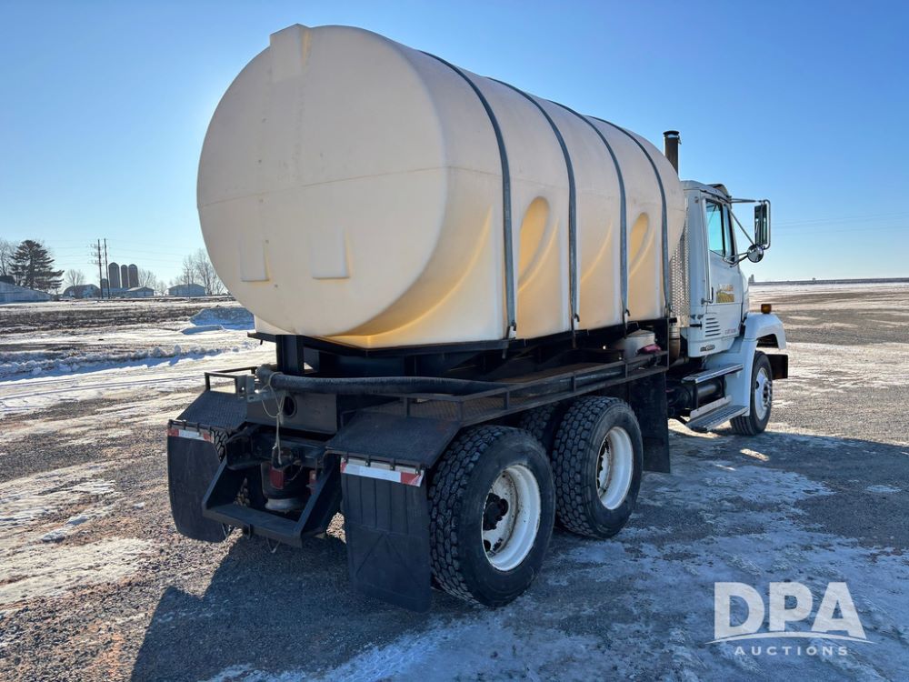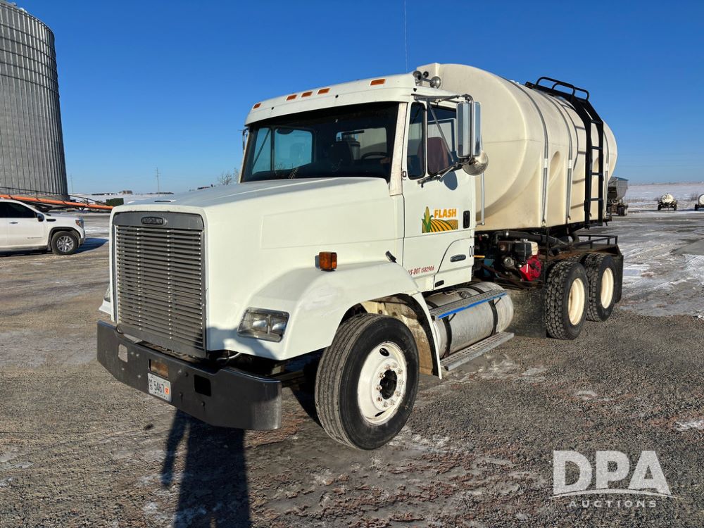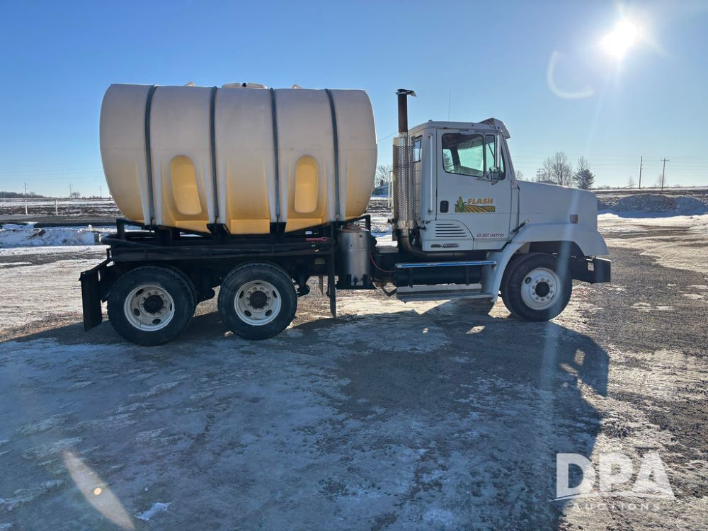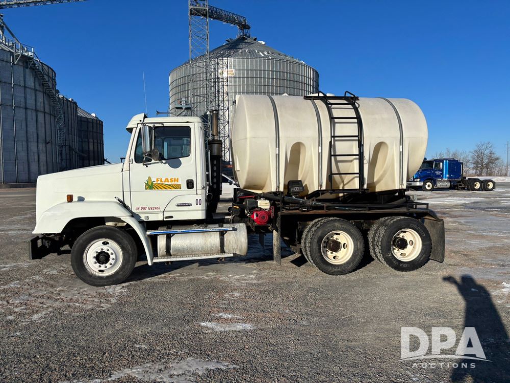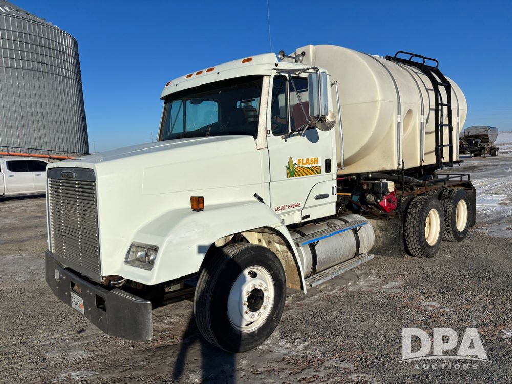 2000 Freightliner Liquid Nurse Truck (GP12735, Unit 00), Detroit Series 60 diesel engine, Eaton Fuller 13 speed transmission, heat, Am/Fm radio, tandem axle, air ride suspension, approx. 3,000 gallon poly liquid nurse tank, Honda GX390 electric start gas motor, pump, single fuel tank, single exhaust, 295/75R22.5 tires, GVWR 52,000 pounds, shows 260,303 miles.