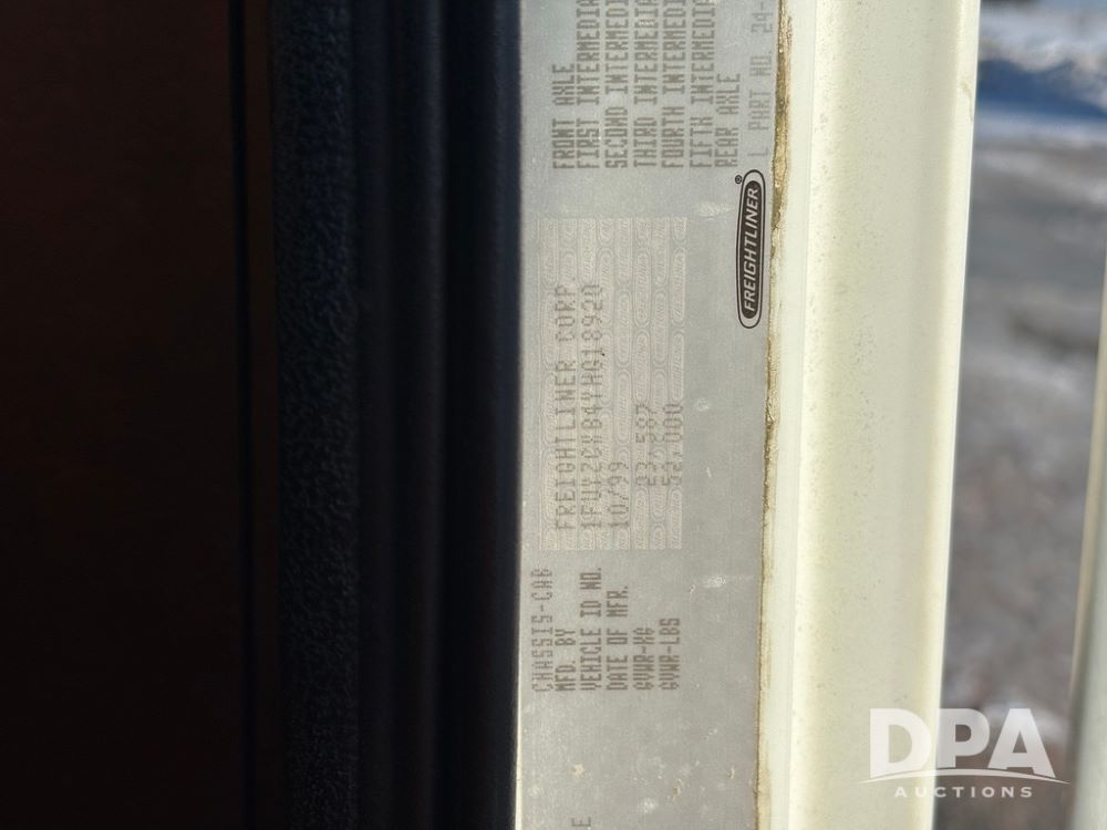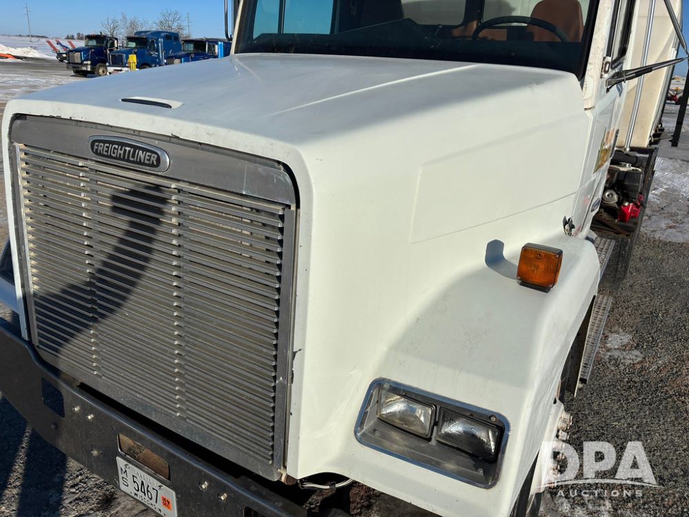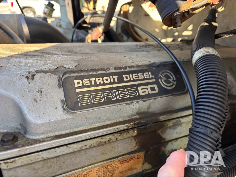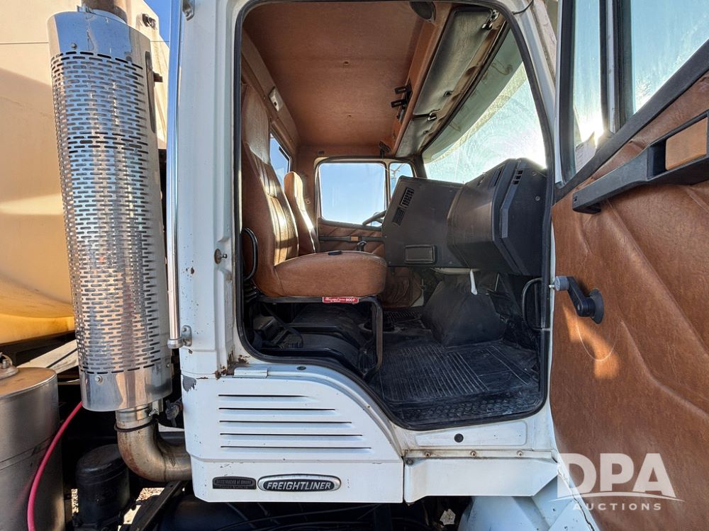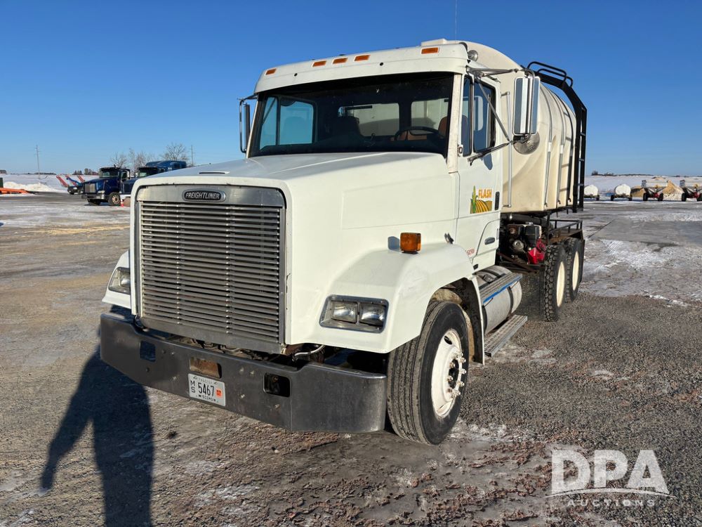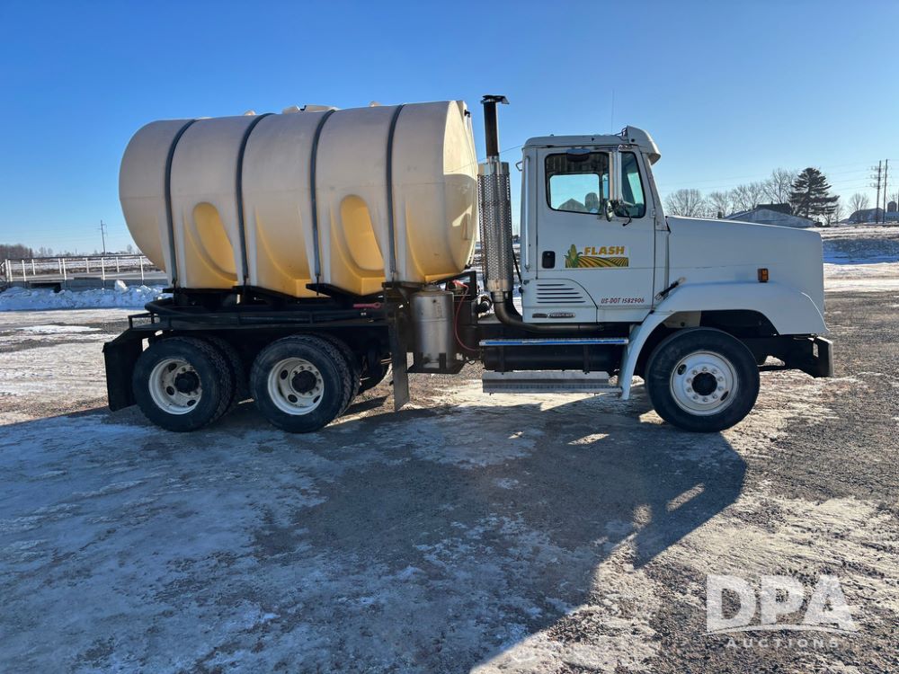 2000 Freightliner Liquid Nurse Truck (GP12735, Unit 00), Detroit Series 60 diesel engine, Eaton Fuller 13 speed transmission, heat, Am/Fm radio, tandem axle, air ride suspension, approx. 3,000 gallon poly liquid nurse tank, Honda GX390 electric start gas motor, pump, single fuel tank, single exhaust, 295/75R22.5 tires, GVWR 52,000 pounds, shows 260,303 miles.