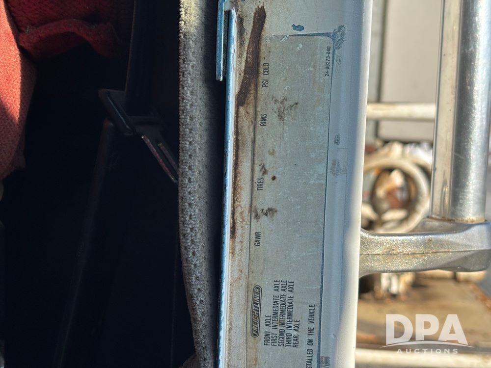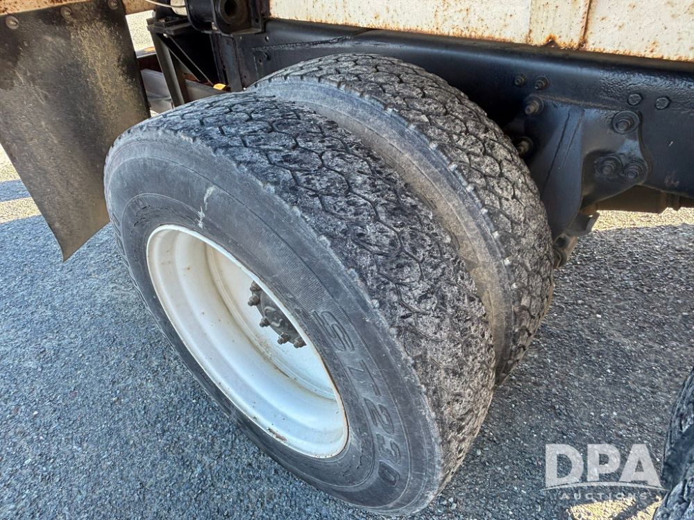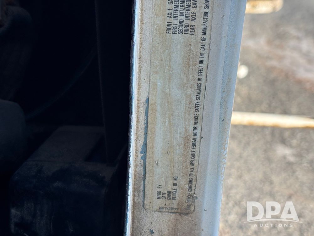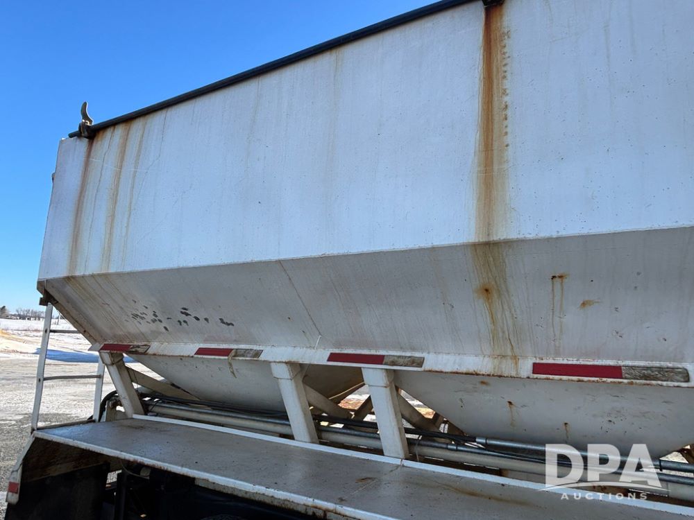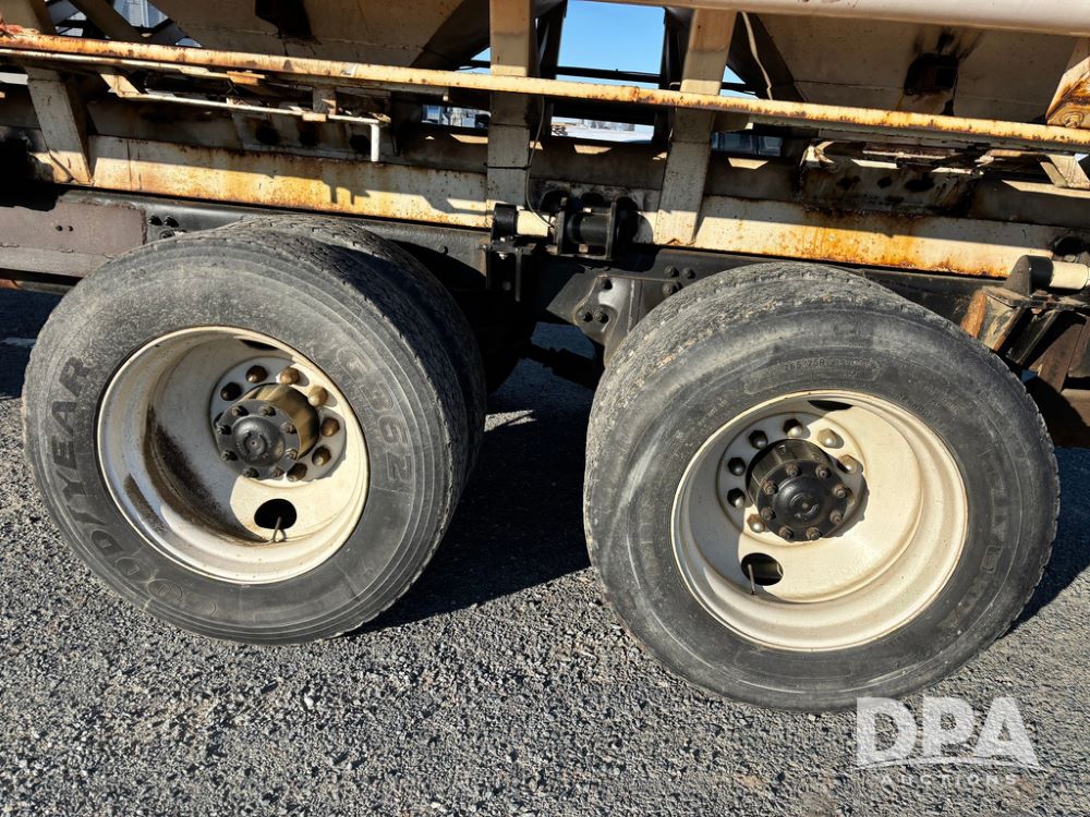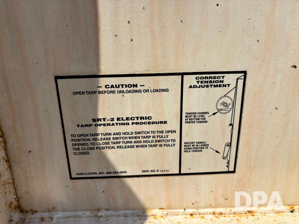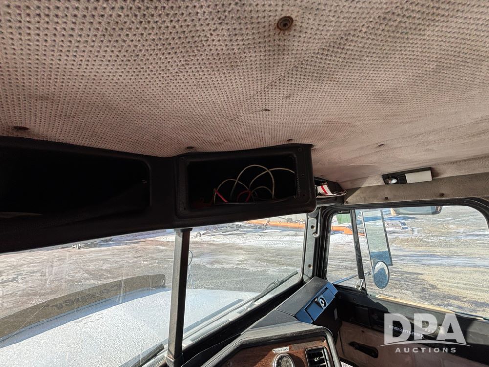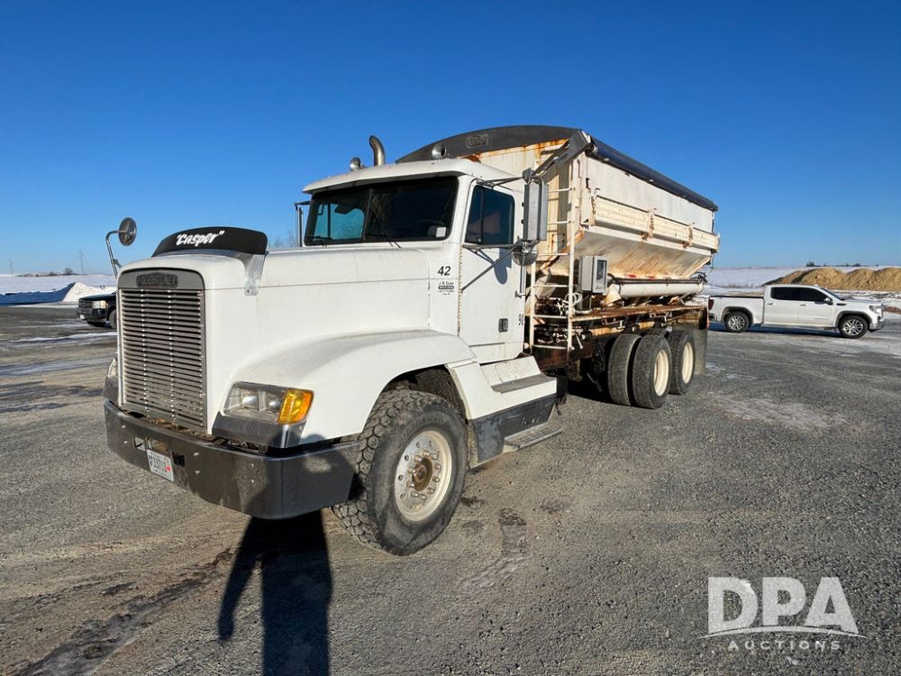 1990 Freightliner Dry Tender Truck (GP12734, Unit 90), Cat diesel engine, Eaton Fuller Roadranger 9 speed transmission, heat, Am/Fm radio, air ride cab, tandem axle, air ride suspension, 18 ton dry tender box, side discharge auger, hydraulic, electric roll tarp, Scale Tec digital scale, 385/65R22.5 front tires, 285/75R24.5 rear tires, shows 975,490 miles.