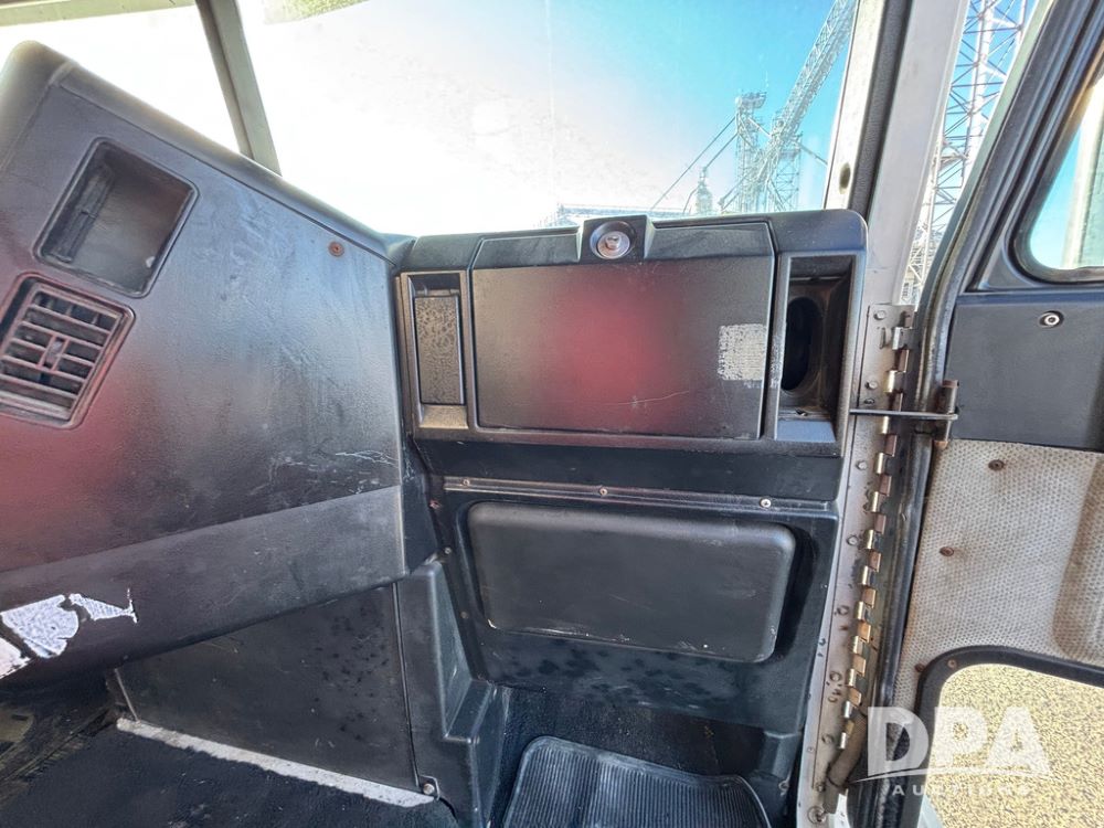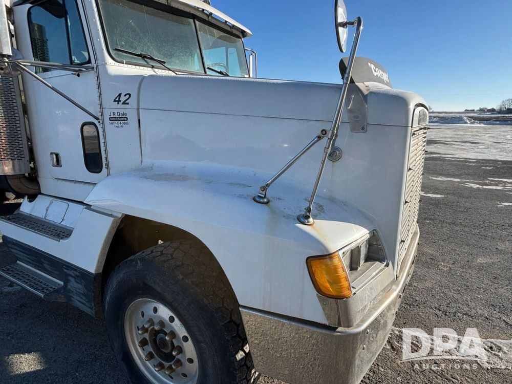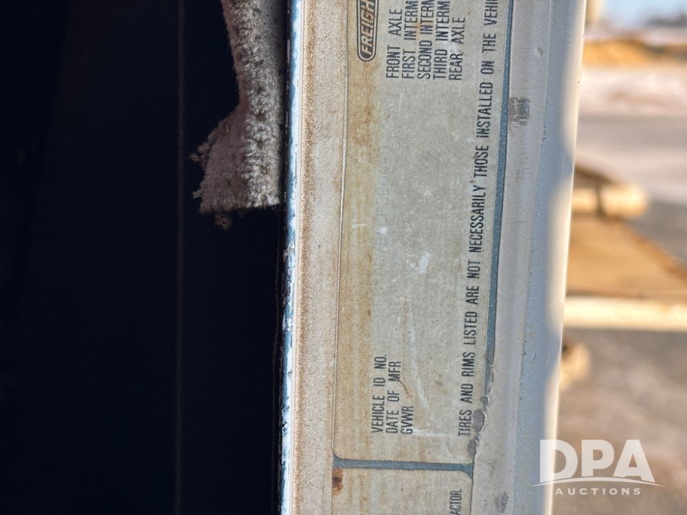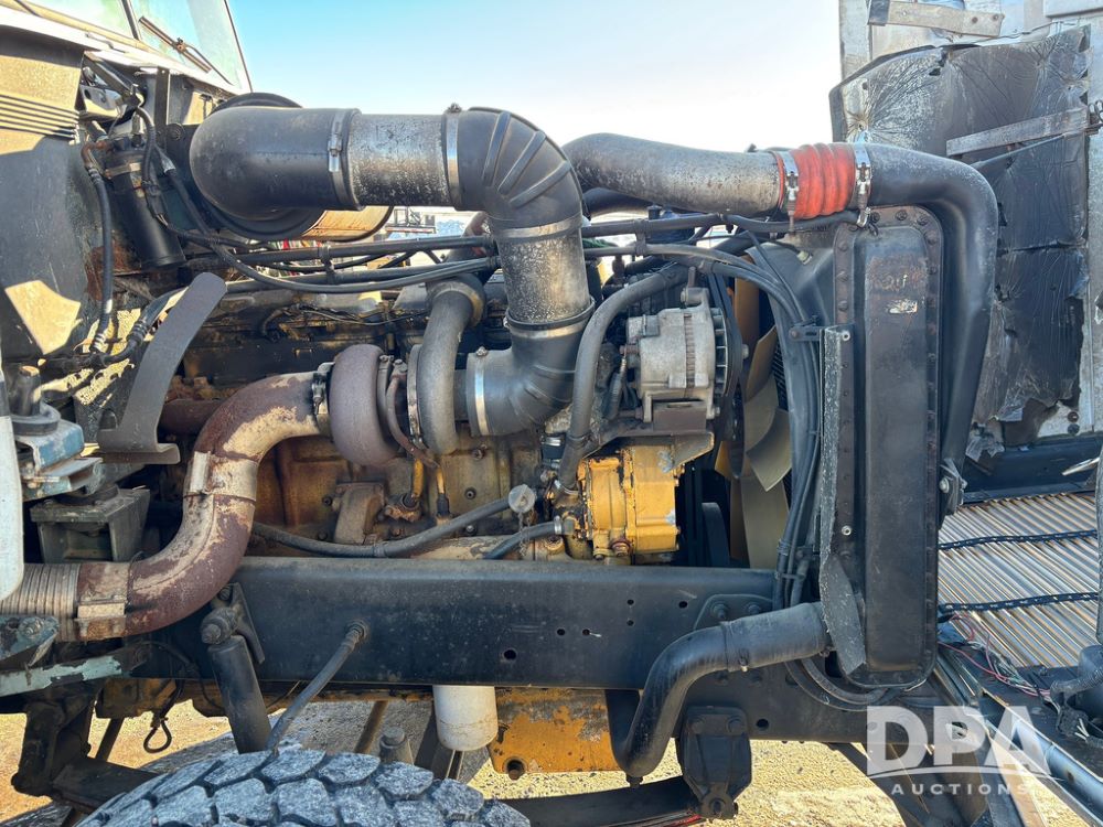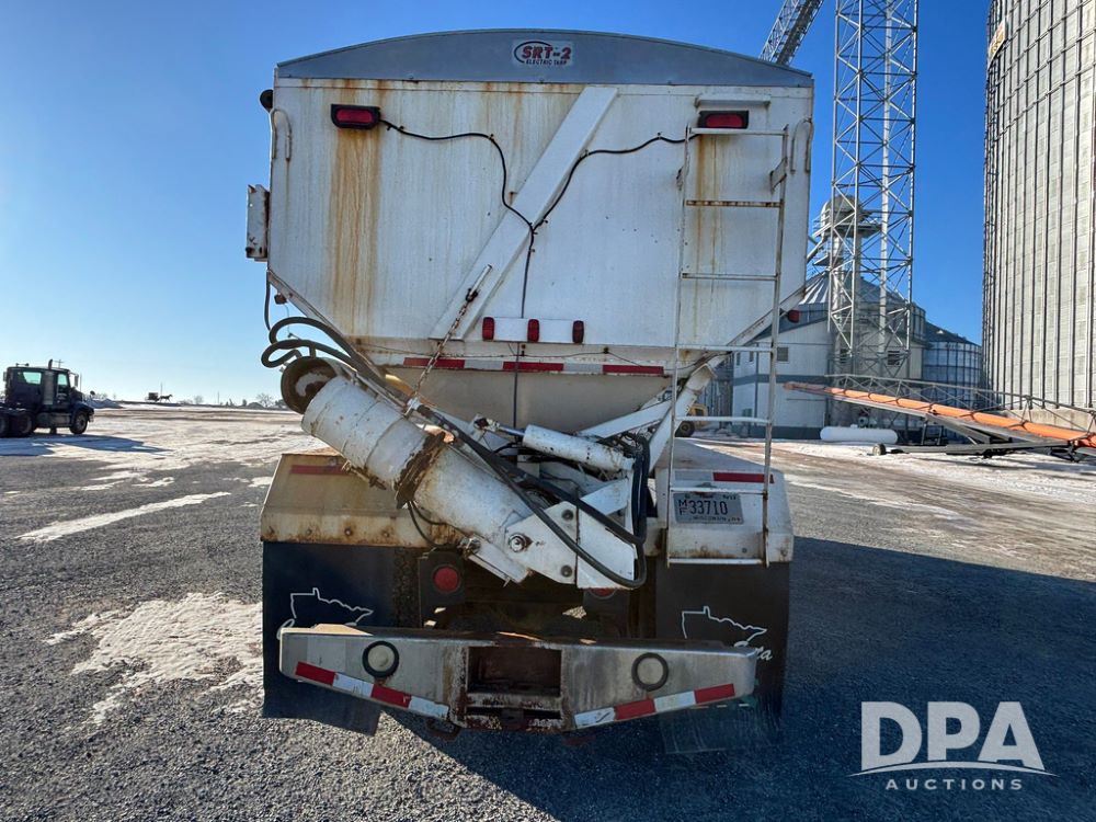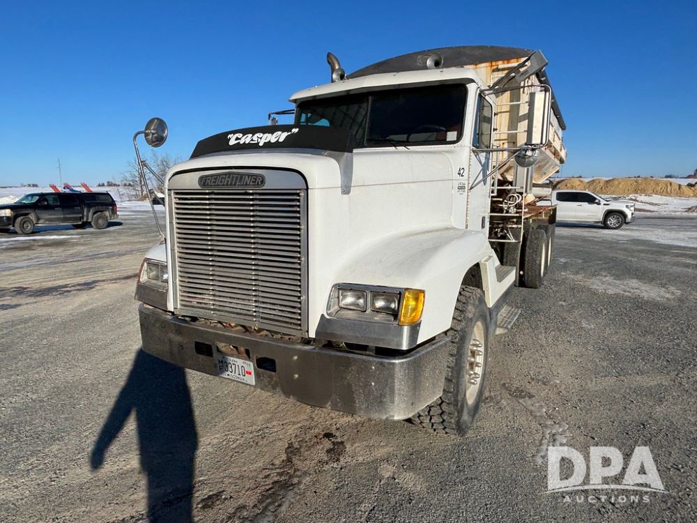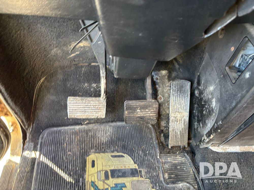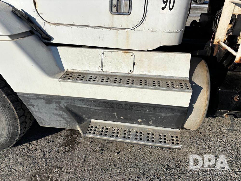 1990 Freightliner Dry Tender Truck (GP12734, Unit 90), Cat diesel engine, Eaton Fuller Roadranger 9 speed transmission, heat, Am/Fm radio, air ride cab, tandem axle, air ride suspension, 18 ton dry tender box, side discharge auger, hydraulic, electric roll tarp, Scale Tec digital scale, 385/65R22.5 front tires, 285/75R24.5 rear tires, shows 975,490 miles.