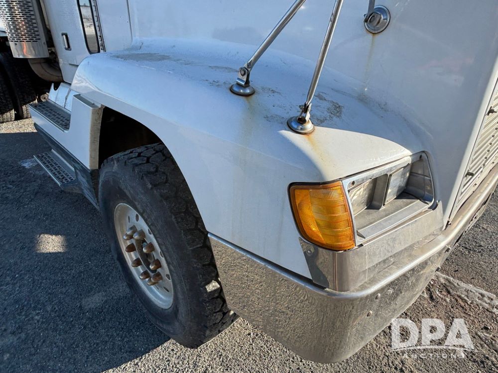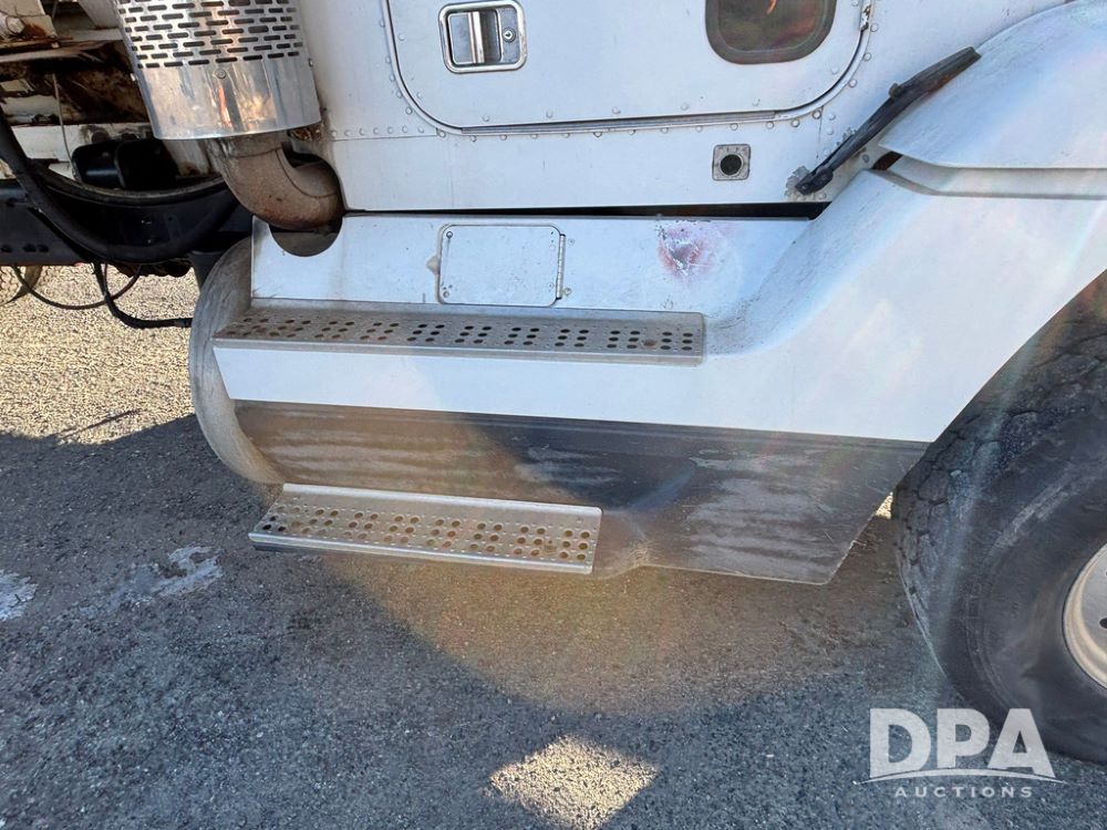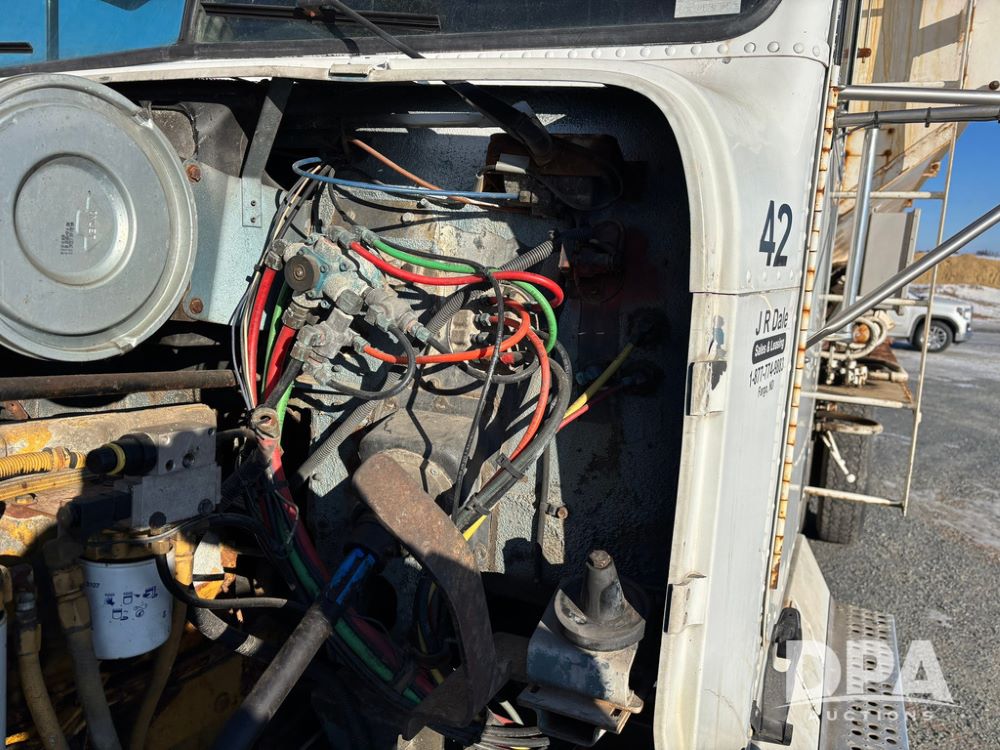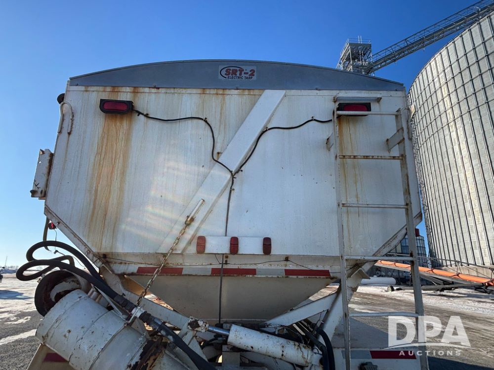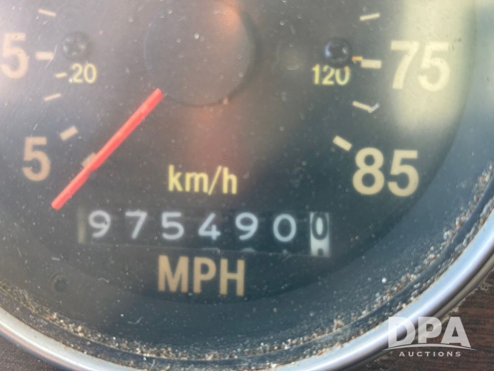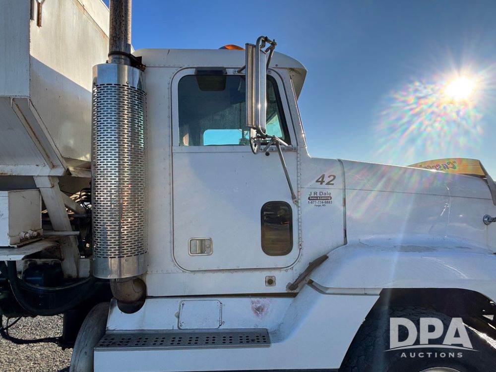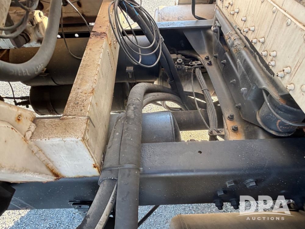 1990 Freightliner Dry Tender Truck (GP12734, Unit 90), Cat diesel engine, Eaton Fuller Roadranger 9 speed transmission, heat, Am/Fm radio, air ride cab, tandem axle, air ride suspension, 18 ton dry tender box, side discharge auger, hydraulic, electric roll tarp, Scale Tec digital scale, 385/65R22.5 front tires, 285/75R24.5 rear tires, shows 975,490 miles.