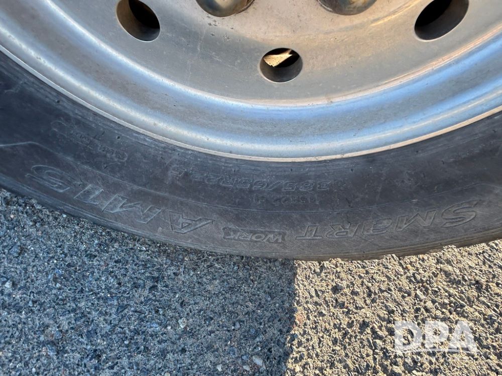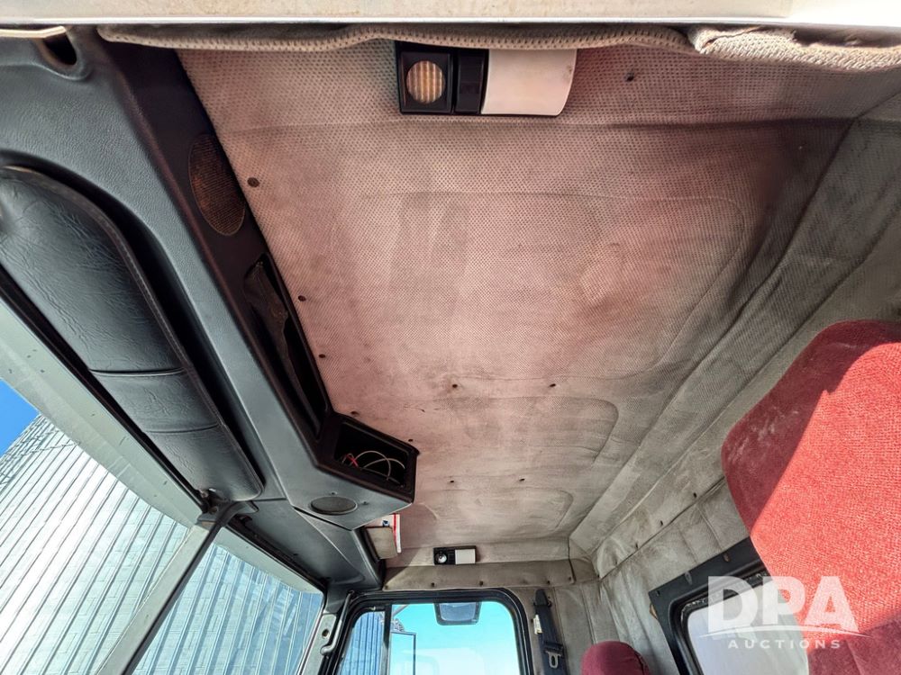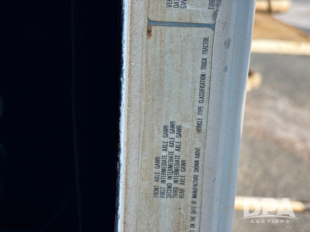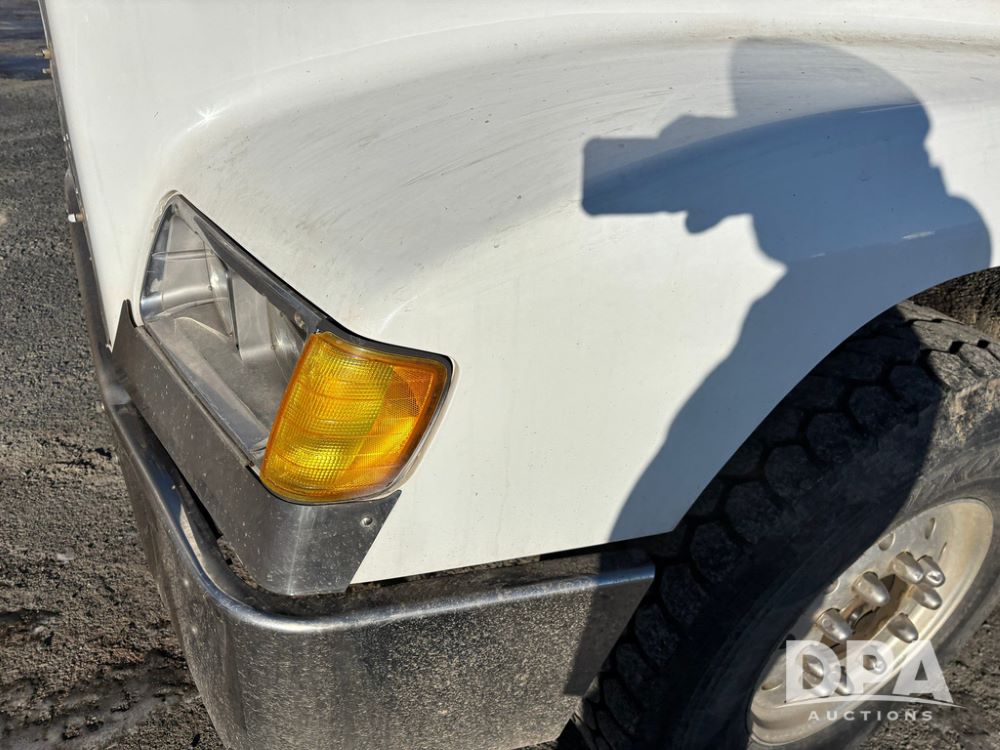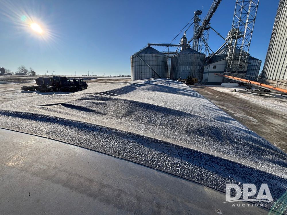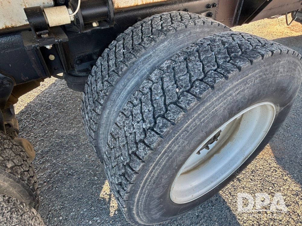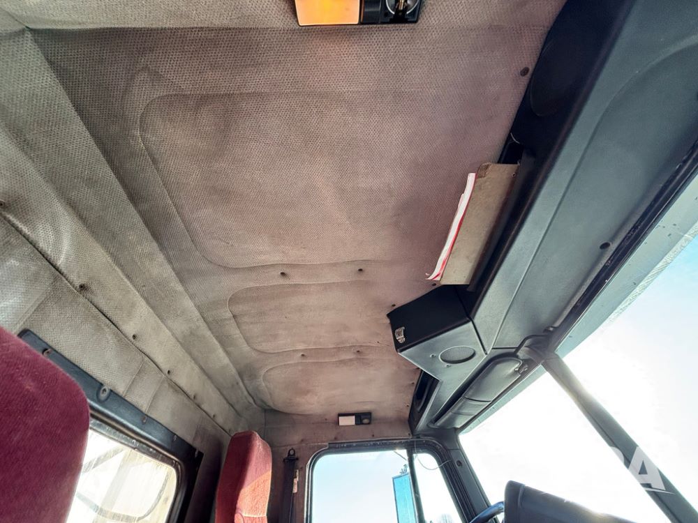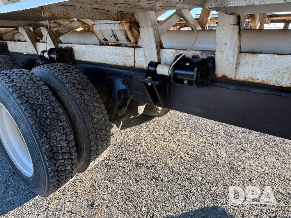1990 Freightliner Dry Tender Truck (GP12734, Unit 90), Cat diesel engine, Eaton Fuller Roadranger 9 speed transmission, heat, Am/Fm radio, air ride cab, tandem axle, air ride suspension, 18 ton dry tender box, side discharge auger, hydraulic, electric roll tarp, Scale Tec digital scale, 385/65R22.5 front tires, 285/75R24.5 rear tires, shows 975,490 miles.