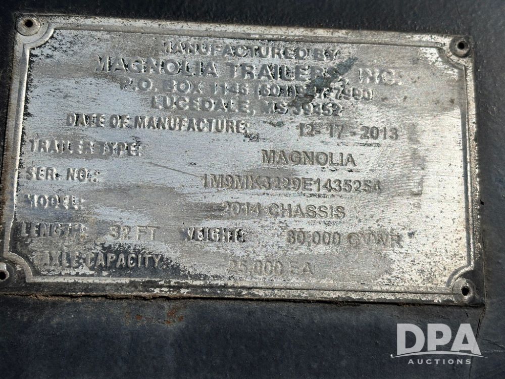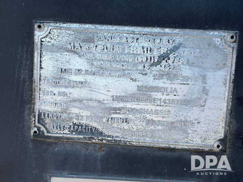 2014 Magnolia Dry Tender Trailer (GP12728, Unit 2), 2014 Magnolia dry tender trailer, 24 ton capacity, 2 compartment, 32 foot trailer, rear discharge auger, vibrators, electric roll tarp, self contained diesel engine (approx. 357 hours), electric start control panel, tandem axle, spring suspension, 255/70R22.5 tires.