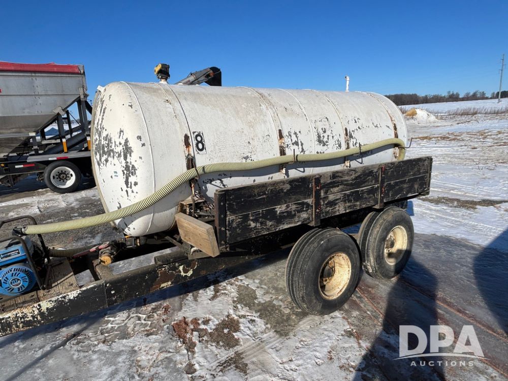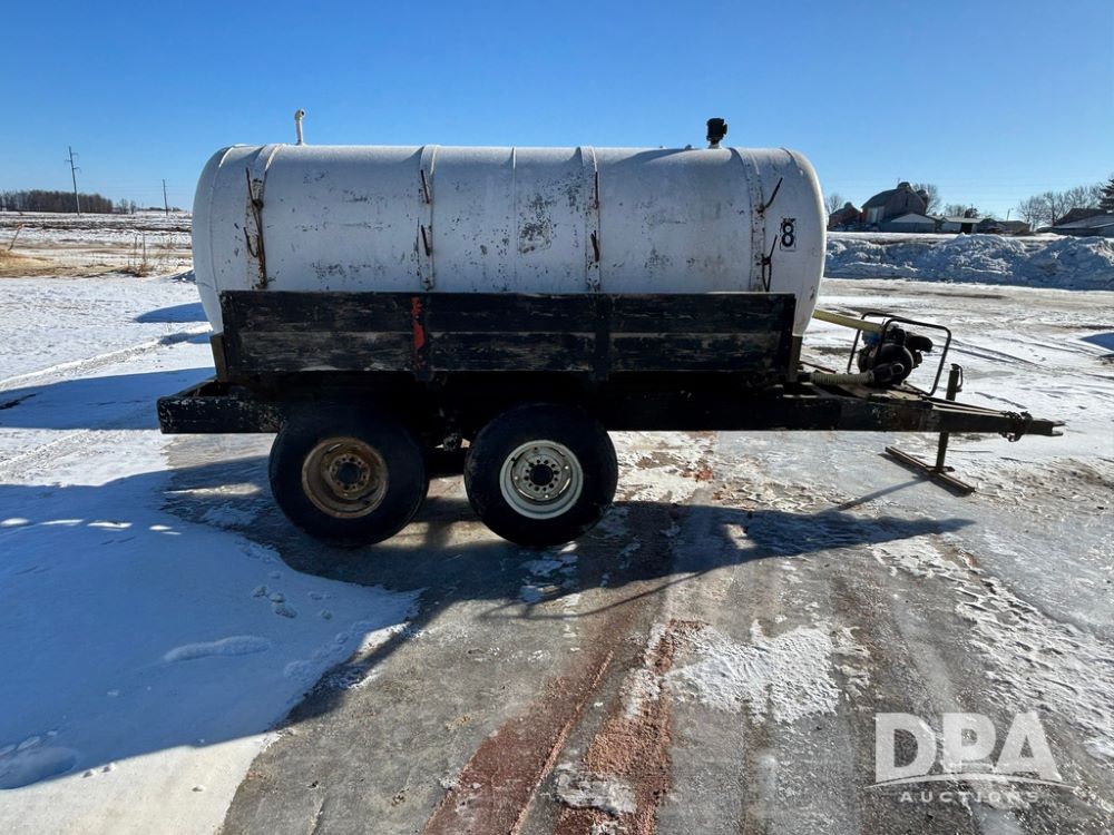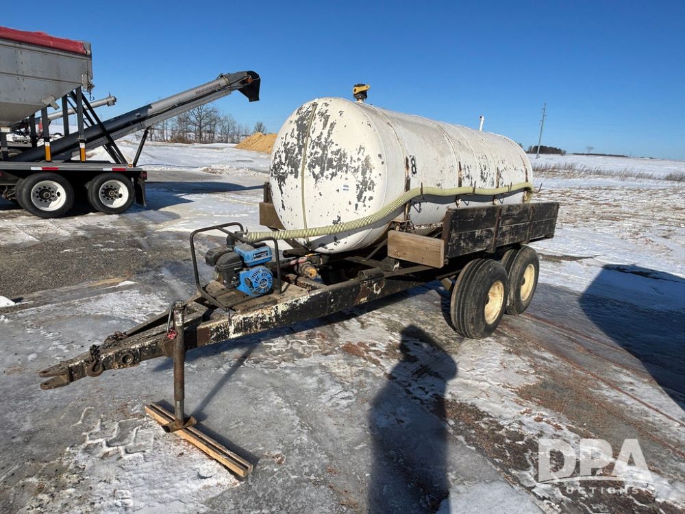 Fiberglass Liquid Nurse Trailer (GP12729, Unit 8), fiberglass liquid tank, tandem axle gear. 212cc gas motor, pump, 11L-15 flotation tires,