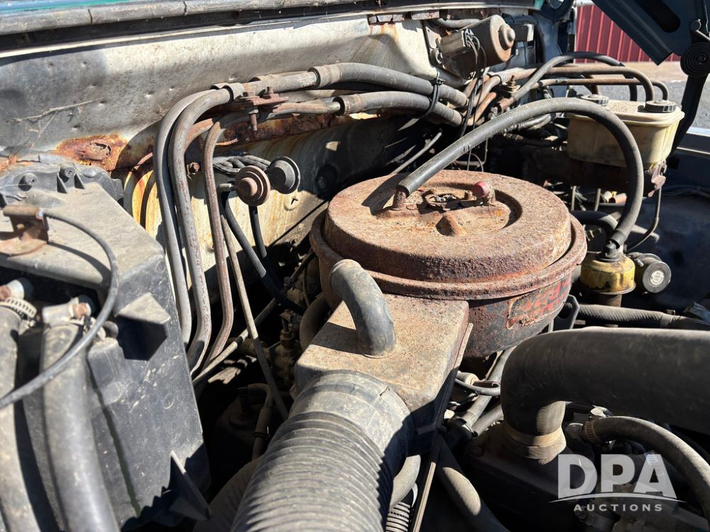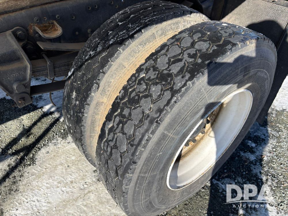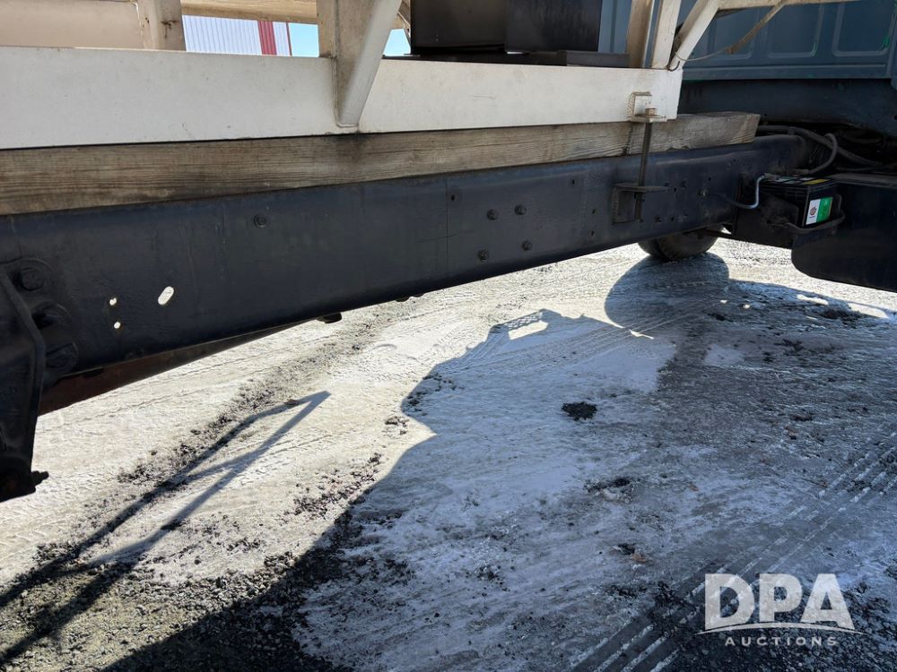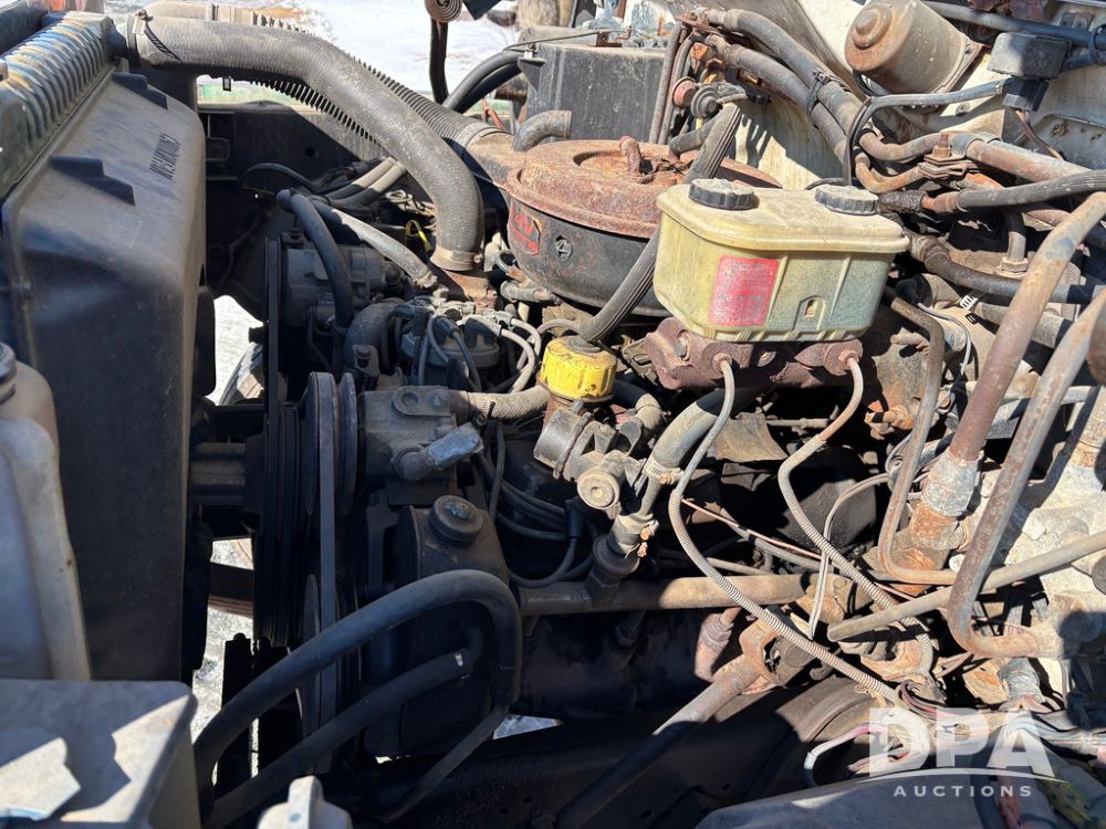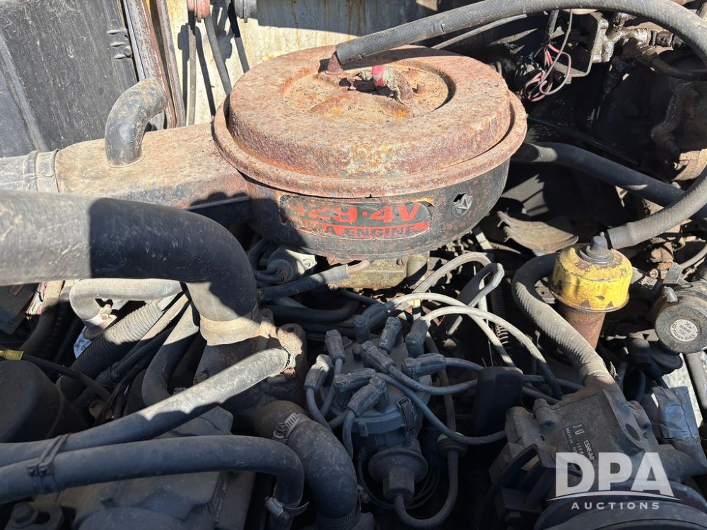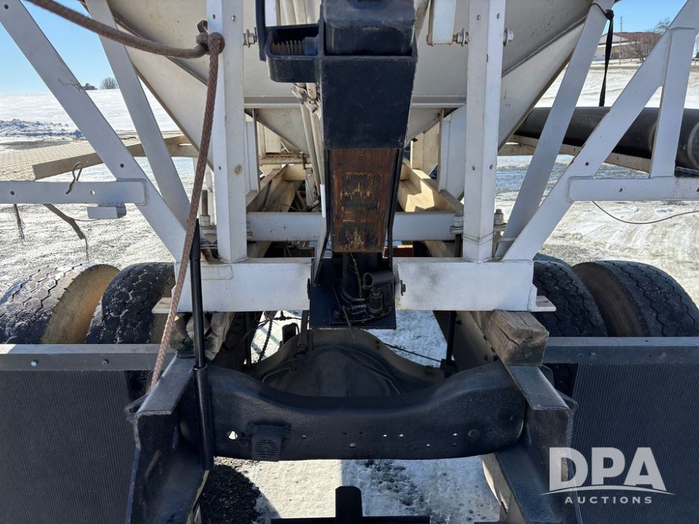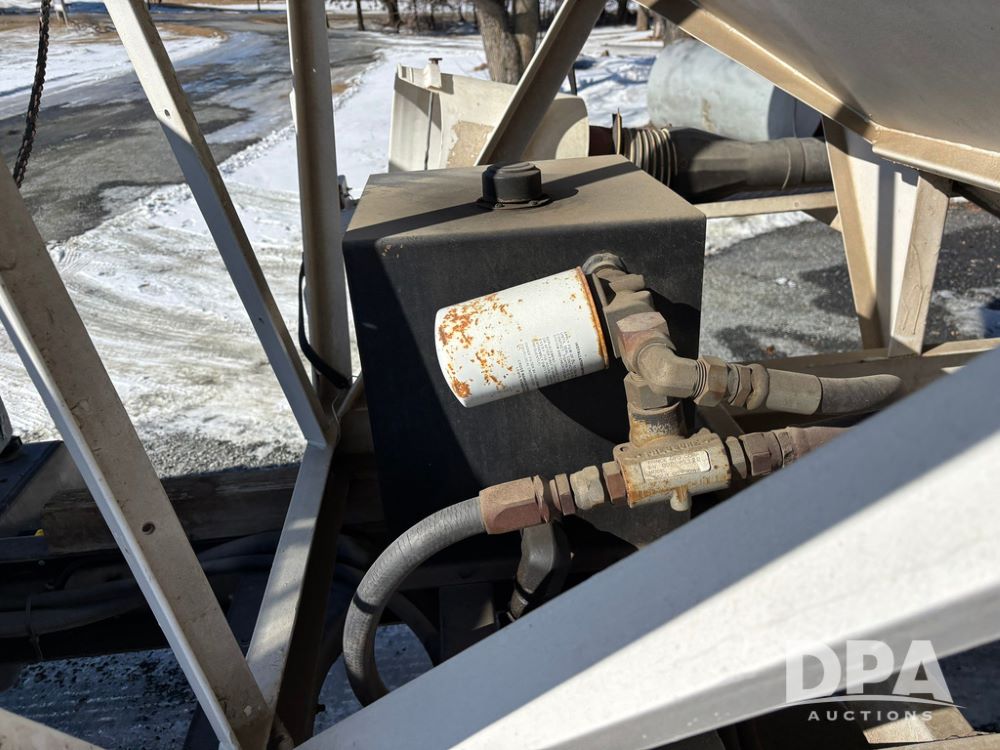 1986 Ford F-800 Dry Tender Truck (GP12746), 429-4V gas engine, 5x2 transmission, heat, Am/Fm radio, single axle, spring suspension, dry tender box, rear discharge auger, hydraulic, tarp, 10.00-20 front tires, 11R22.5 rear tires, shows 155,392 miles.