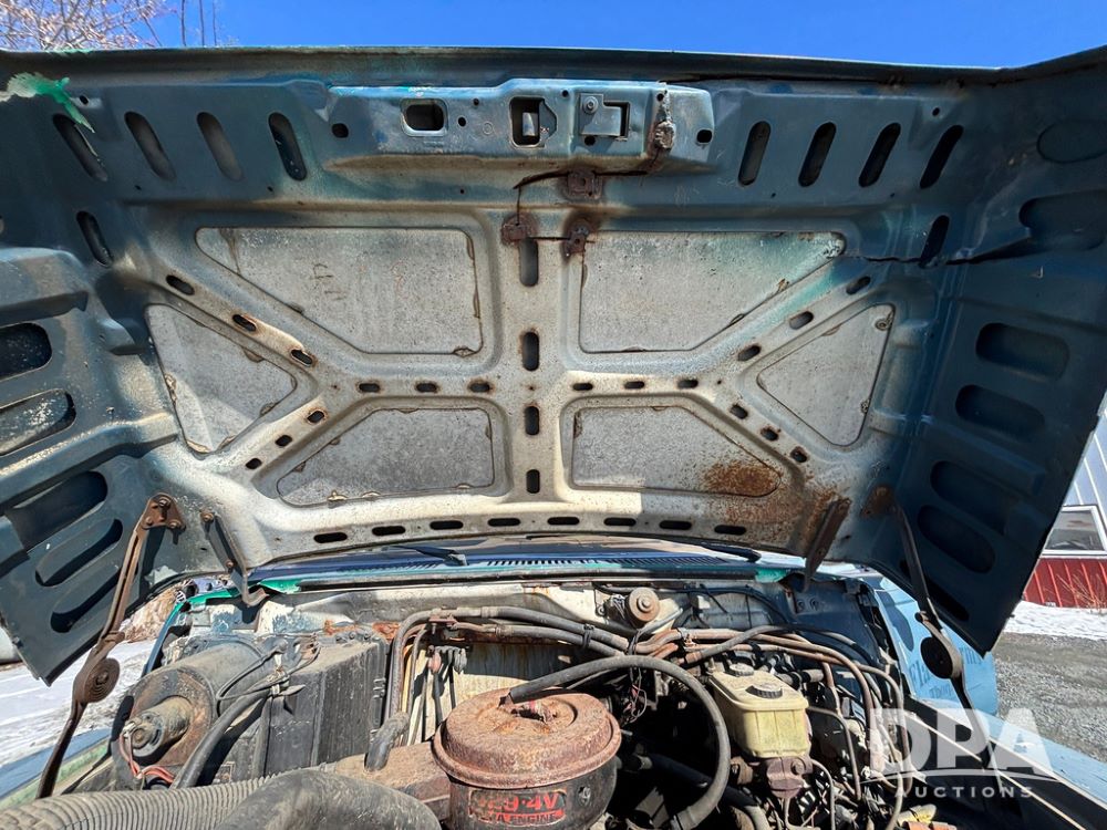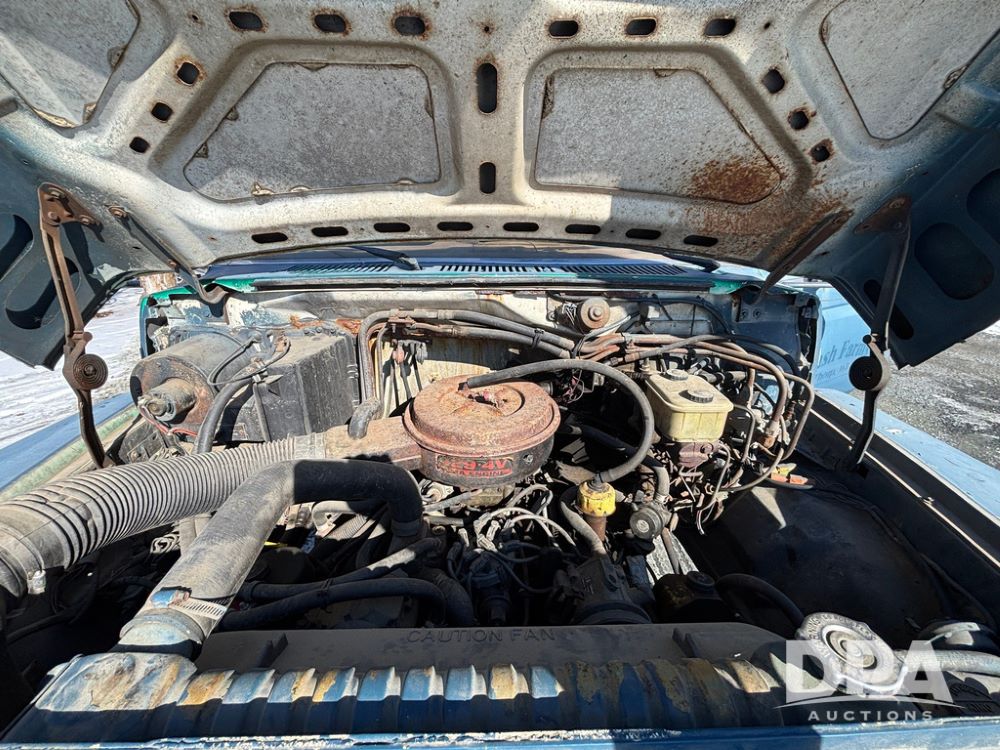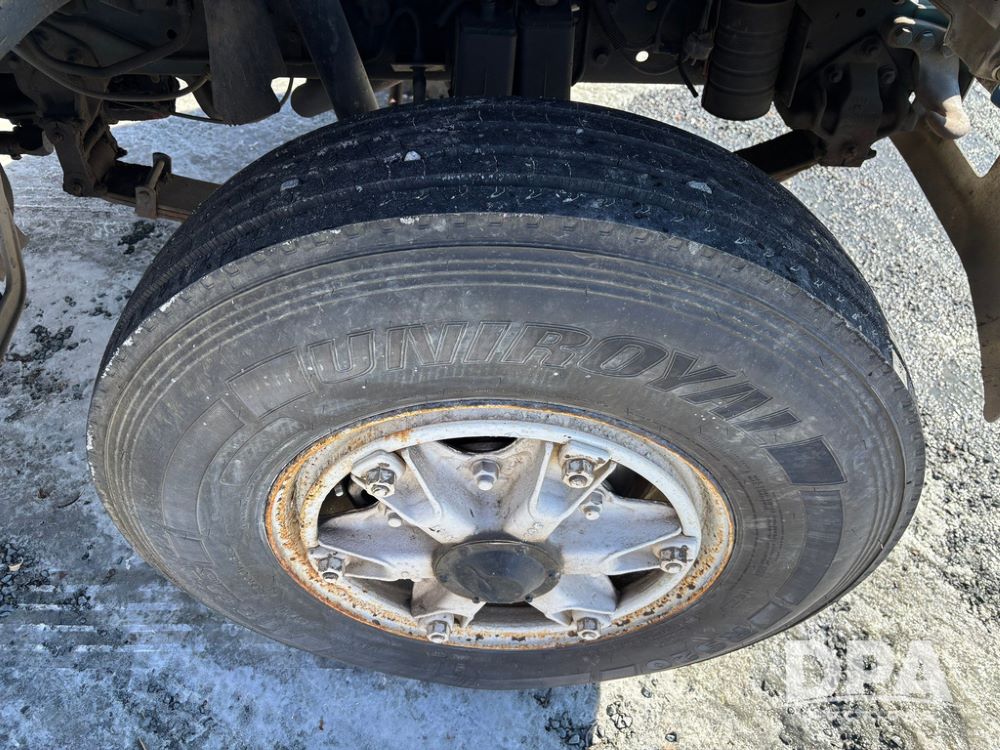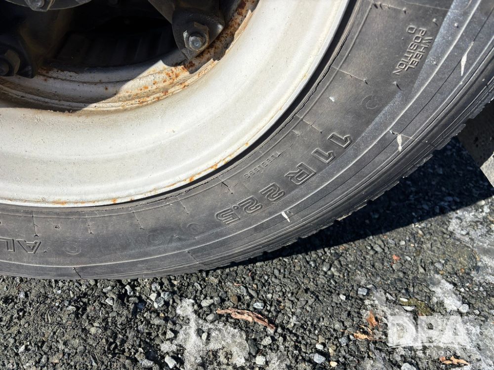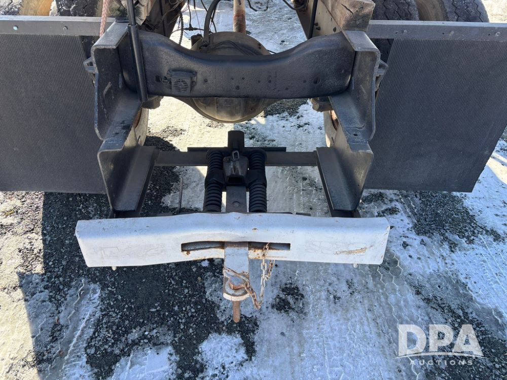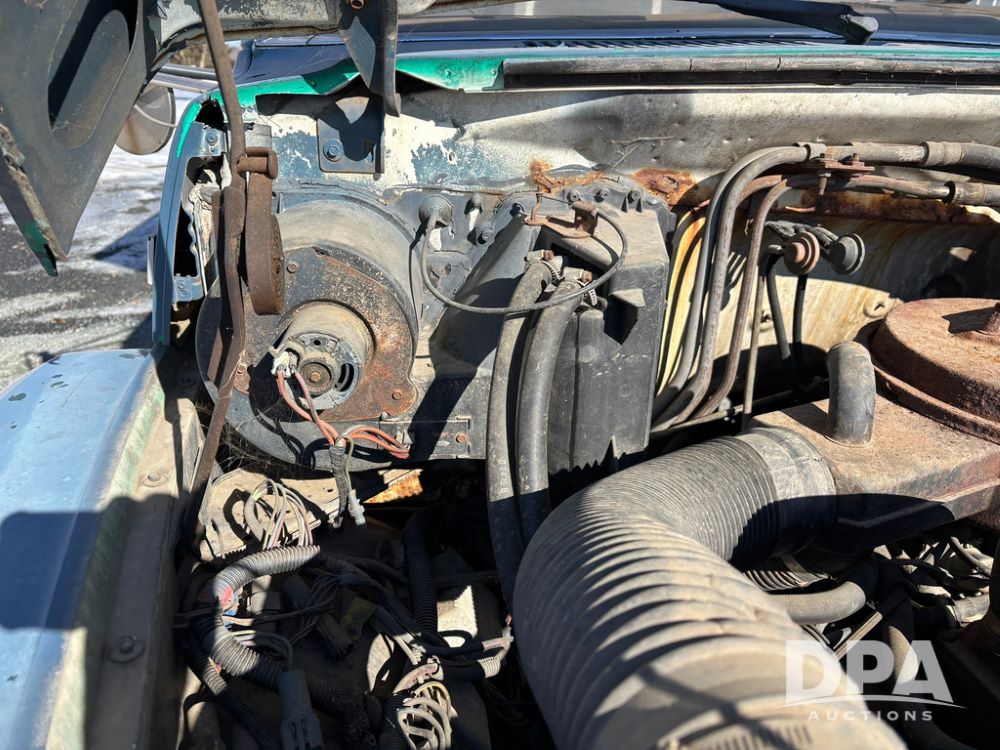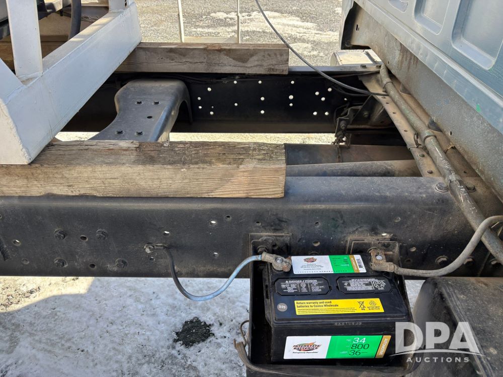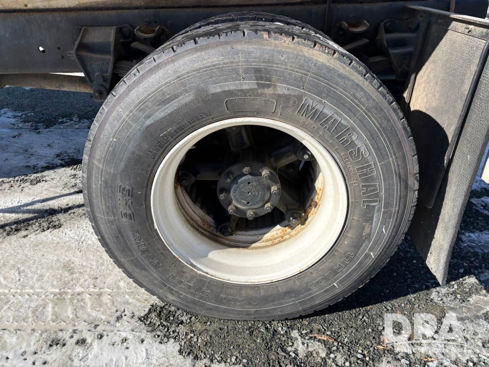 1986 Ford F-800 Dry Tender Truck (GP12746), 429-4V gas engine, 5x2 transmission, heat, Am/Fm radio, single axle, spring suspension, dry tender box, rear discharge auger, hydraulic, tarp, 10.00-20 front tires, 11R22.5 rear tires, shows 155,392 miles.