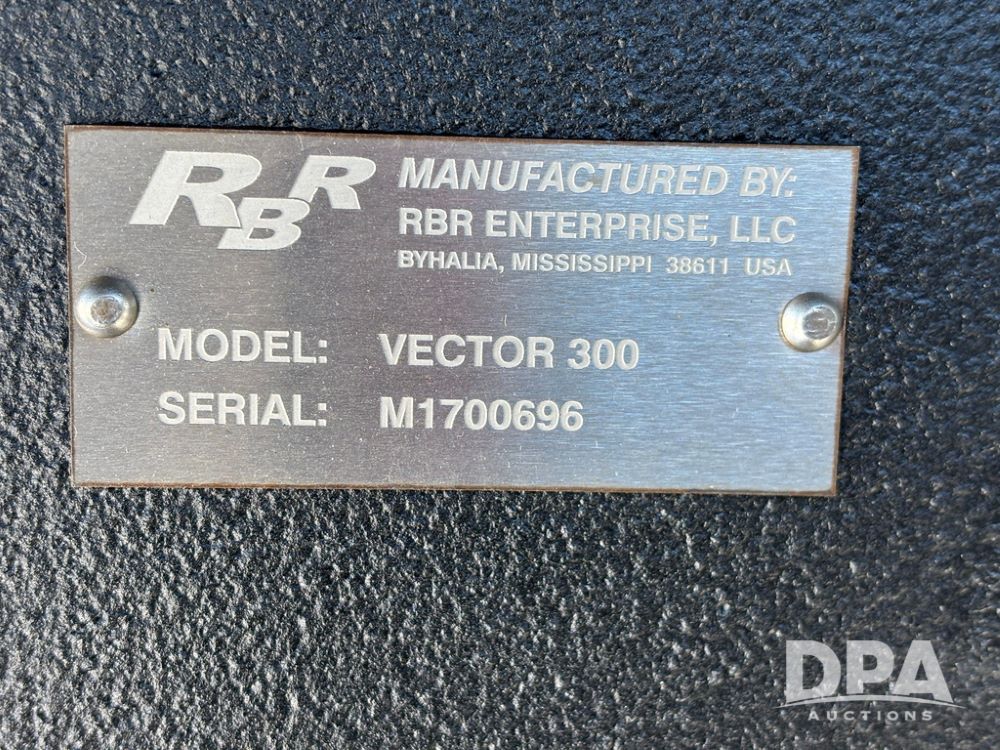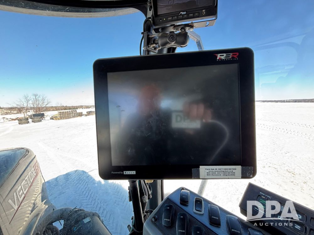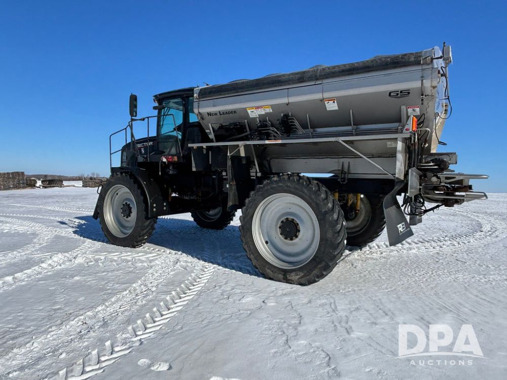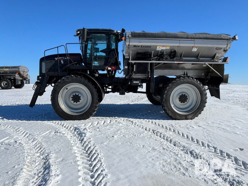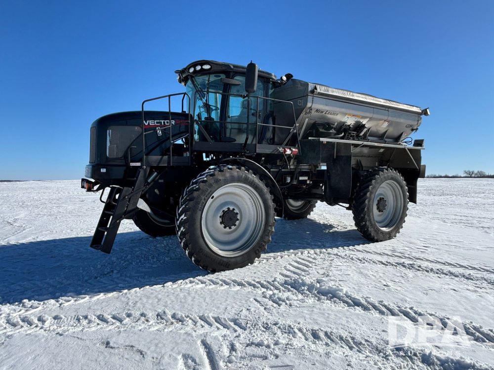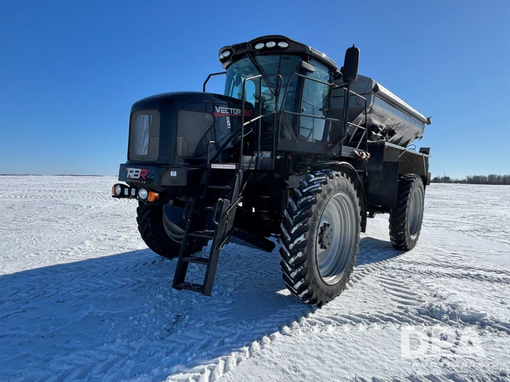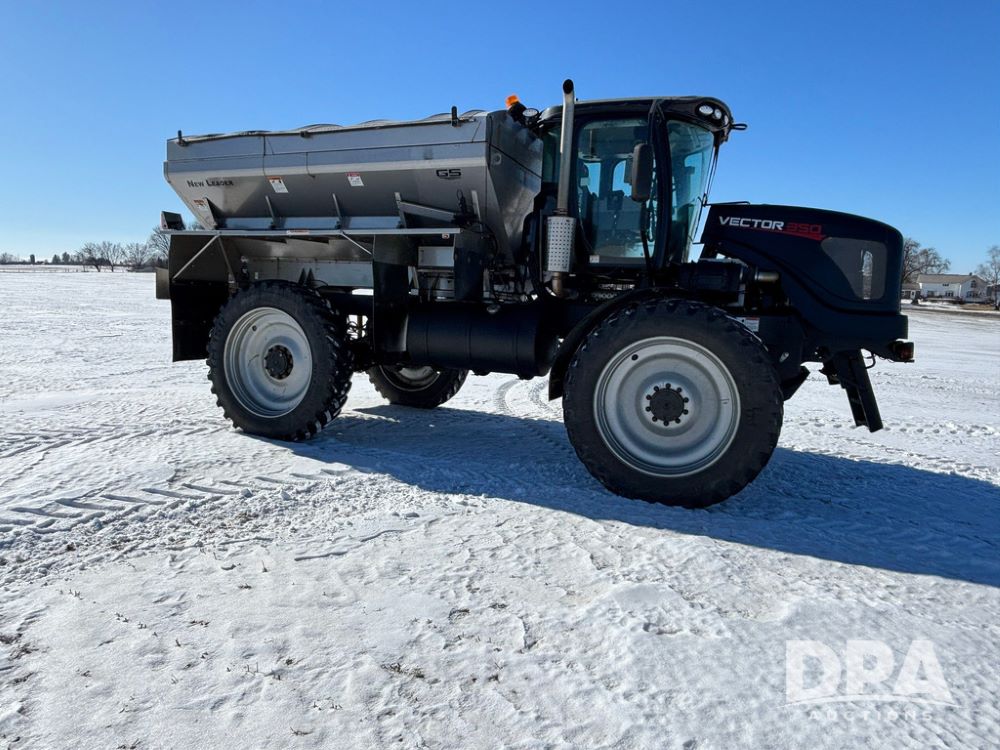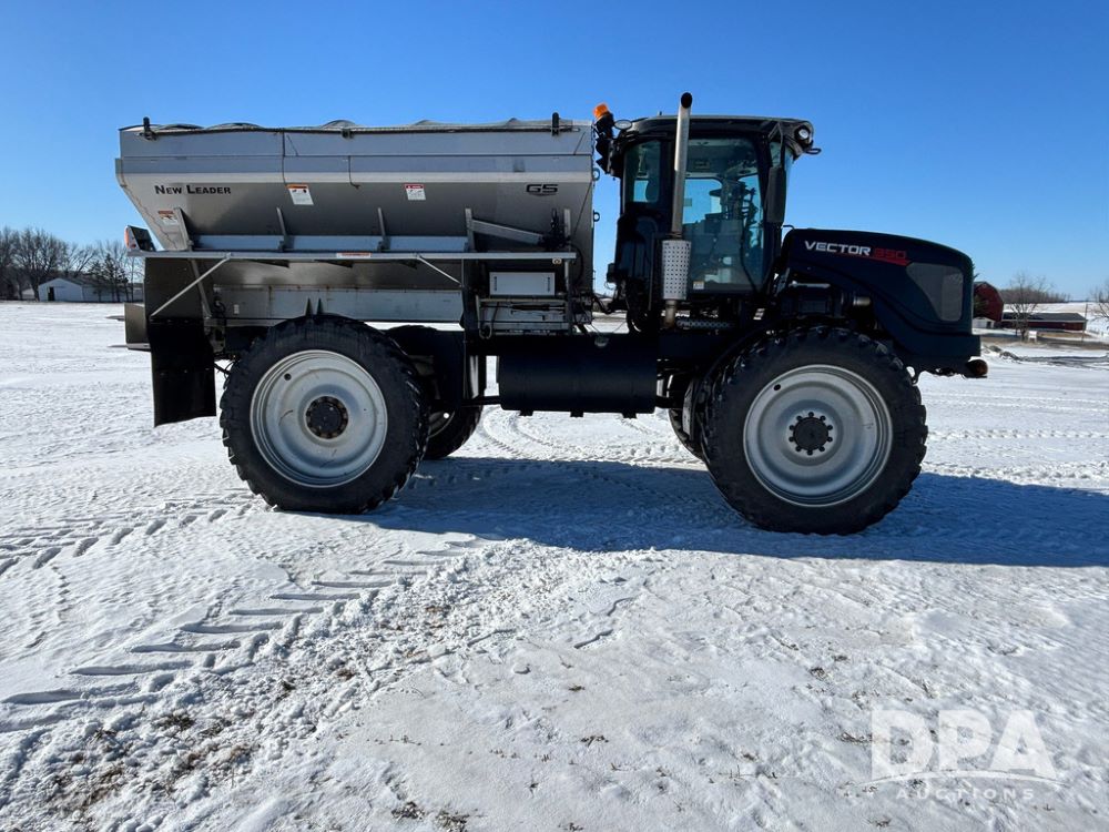 2017 RBR Vector 350 Dry Machine (GP12741, Unit 2), Cummins diesel engine, Allison automatic transmission, heat, air conditioning, Am/Fm radio, buddy seat, New Leader L5000 G5 - 14' stainless steel dry spreader box (S/N 587442), dual spinners, hydraulic, electric roll tarp, New Leader MutltApplier stainless steel insert (S/N 587444), 380/90R46 row crop tires, fenders, Cab Cam backup camera, Raven GPS, Raven Viper 4 monitor, shows 2,216 hours.