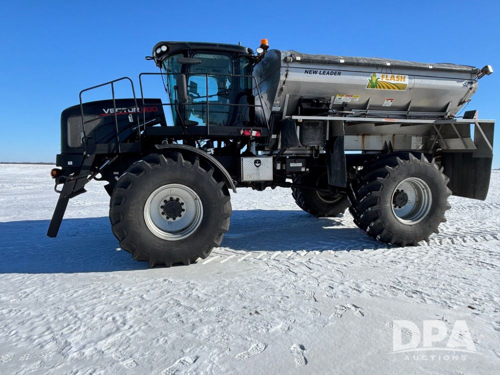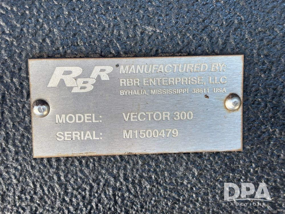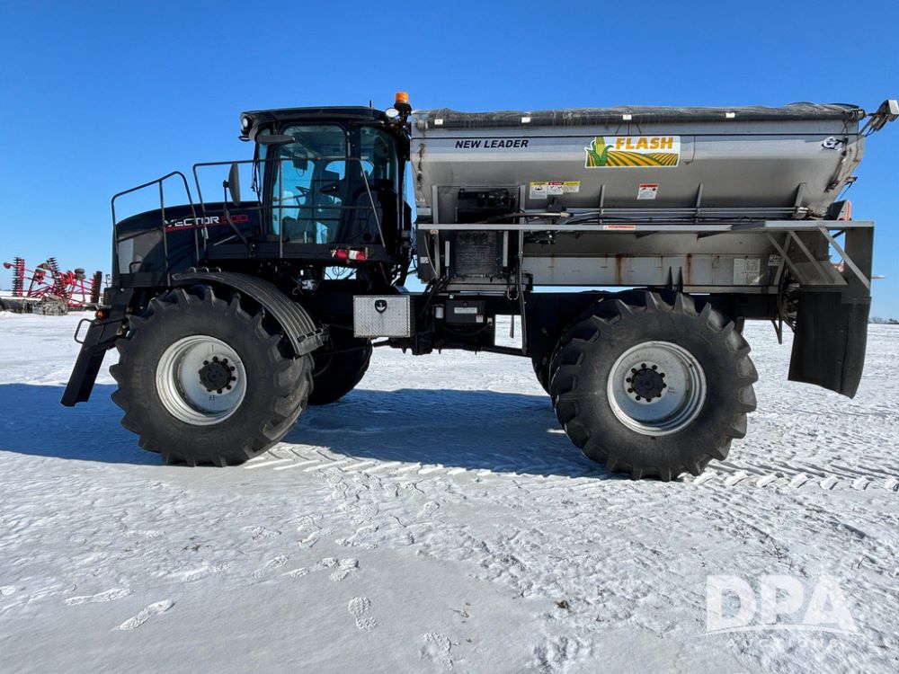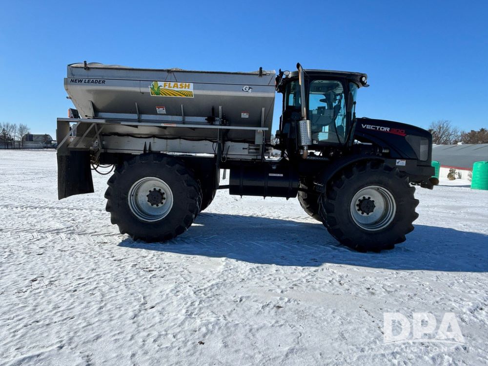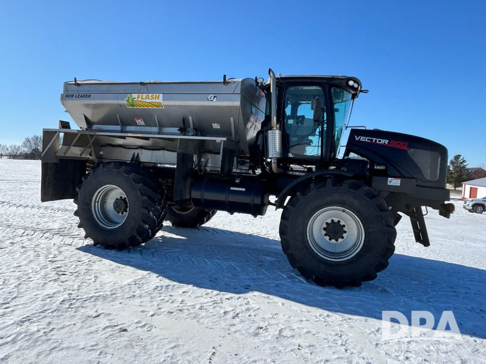 2015 RBR Vector 300 Dry Machine (GP12740, Unit 1), Cummins diesel engine, Allison automatic transmission, heat, air conditioning, Am/Fm radio, buddy seat, New Leader L4000 G4 - 14' stainless steel dry spreader box (S/N 139566), dual spinners, hydraulic, electric roll tarp, Mitas AC70H - 800/65R32 flotation tires, fenders, backup camera, Raven GPS, Raven Viper 4 monitor, shows 4,512 hours.