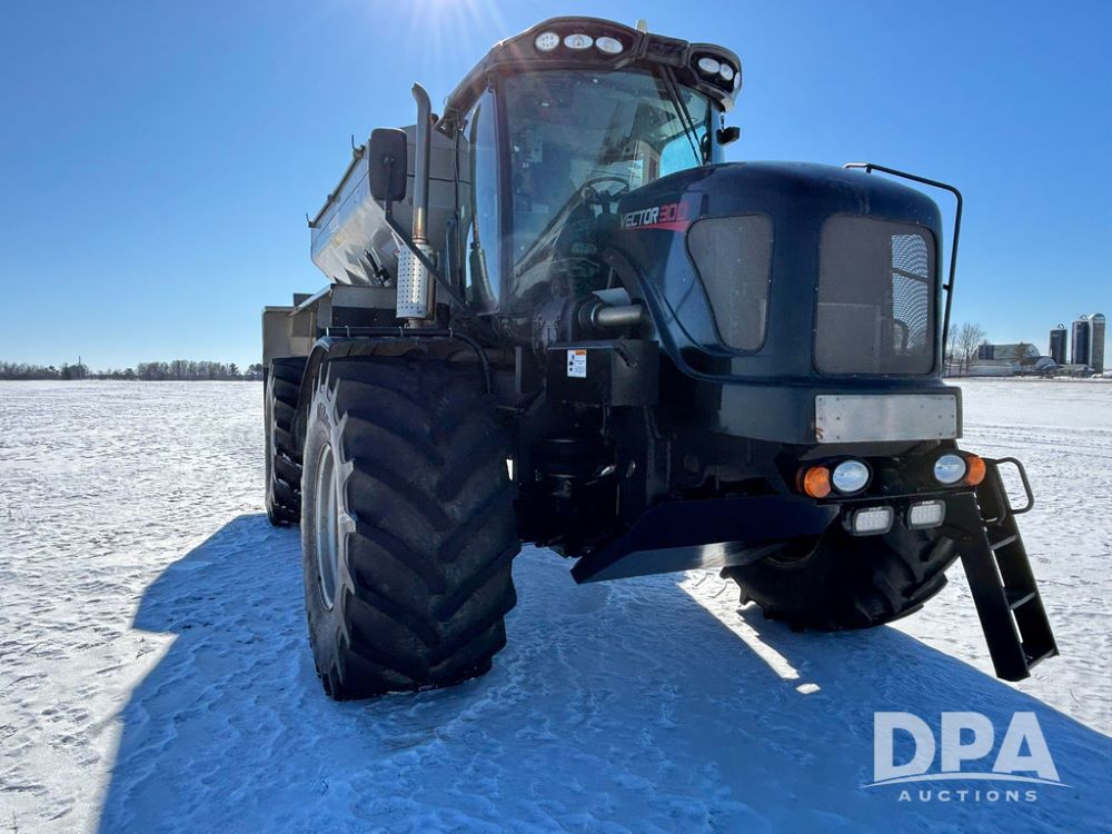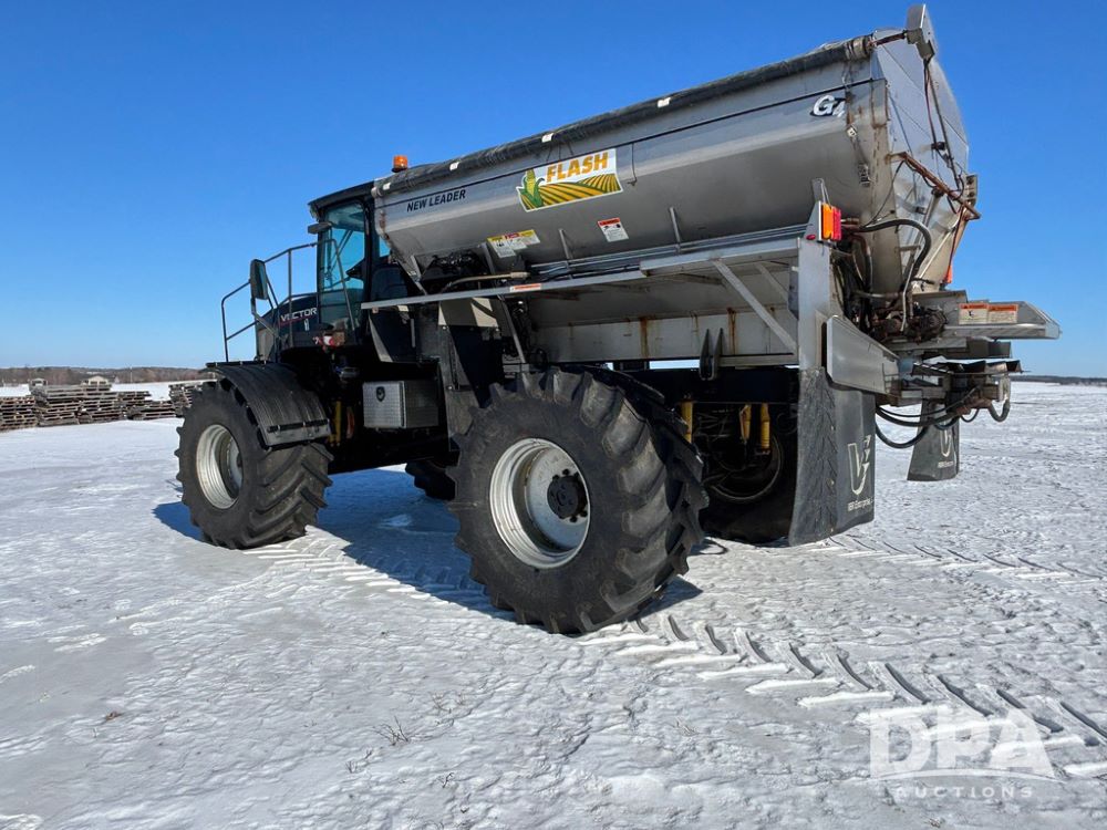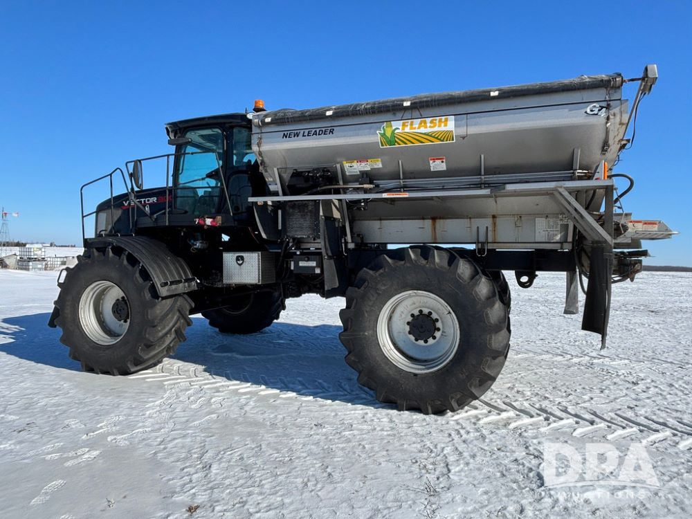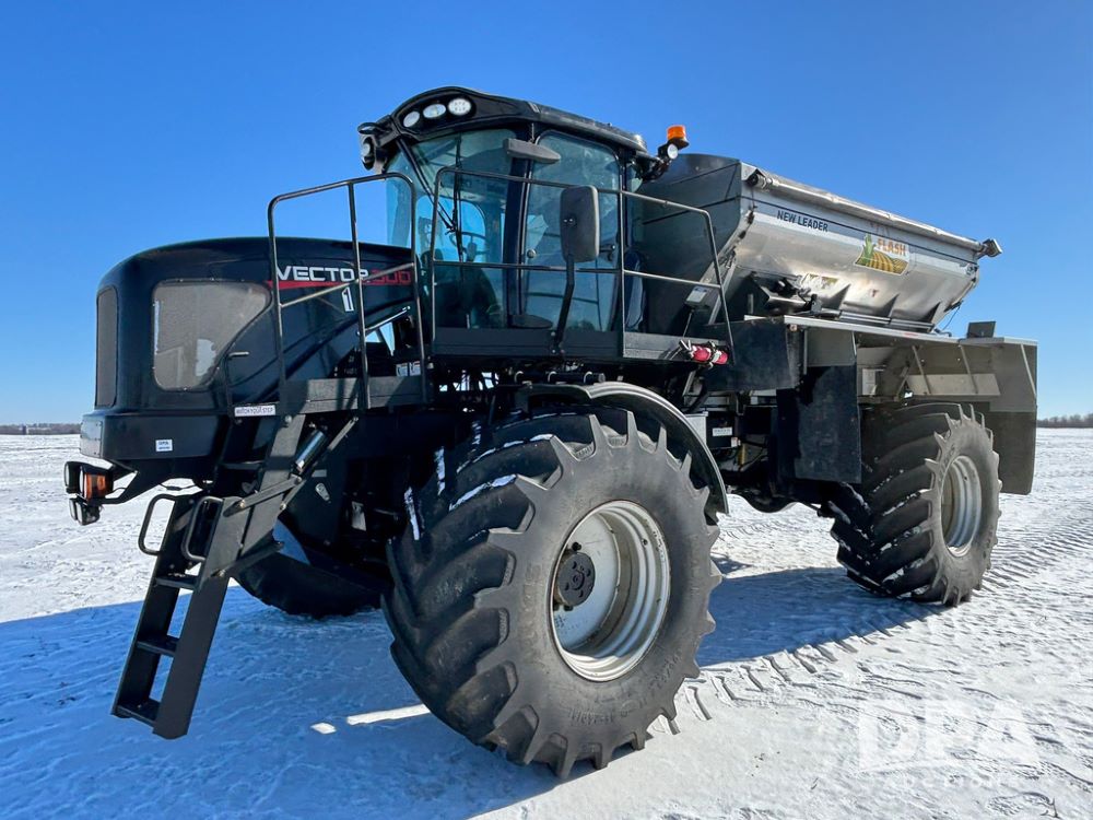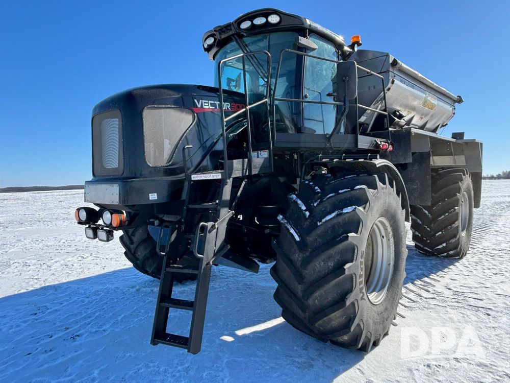 2015 RBR Vector 300 Dry Machine (GP12740, Unit 1), Cummins diesel engine, Allison automatic transmission, heat, air conditioning, Am/Fm radio, buddy seat, New Leader L4000 G4 - 14' stainless steel dry spreader box (S/N 139566), dual spinners, hydraulic, electric roll tarp, Mitas AC70H - 800/65R32 flotation tires, fenders, backup camera, Raven GPS, Raven Viper 4 monitor, shows 4,512 hours.