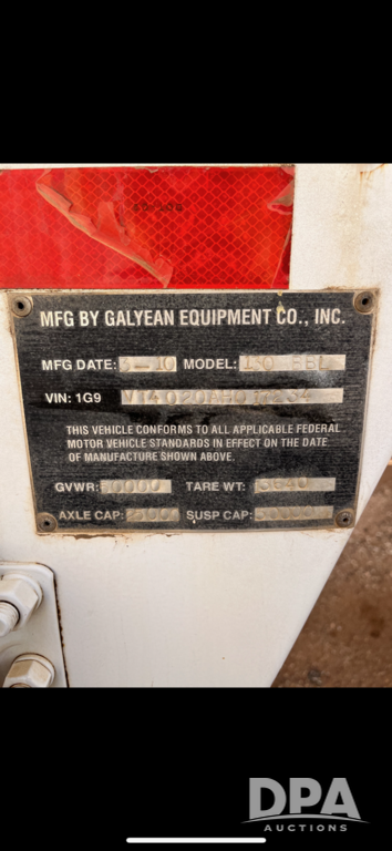 2010 Galyean Trailer (DR13162 Unit 17234), model 130 BBL dry flowable trailer, 3 compartment, 22.5 tires.