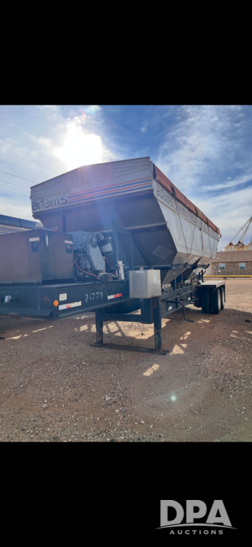 2007 Adams Dry Trailer (DR13163 Unit 21779), 24 ton stainless steel hydraulic dry tender trailer, self contained hydraulics w/diesel engine, rear discharge auger, roll over tarp, tandem axle, 255/70R22.5 tires.