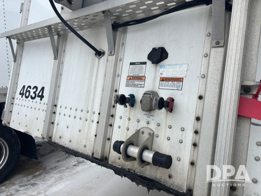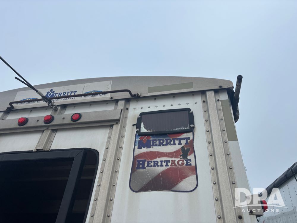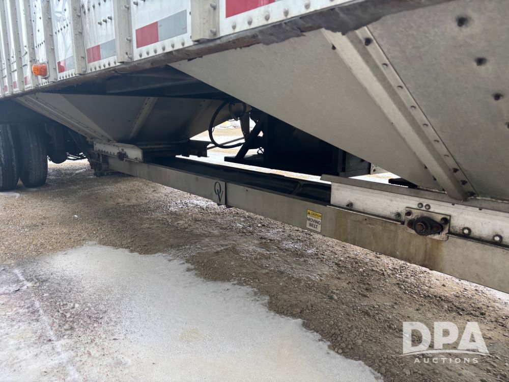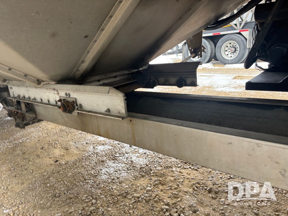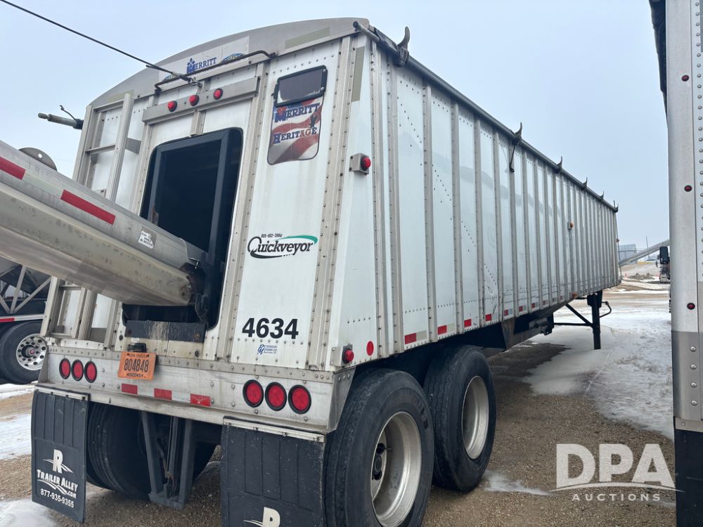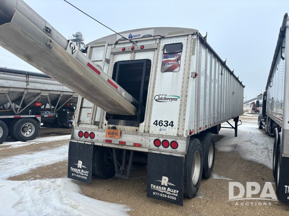 2017 Merritt Dry Trailer (DR12896 Unit 4634), 40' aluminum dry tender trailer, self contained hydraulics w/Honda gas engine and electric start, rear discharge conveyor, electric roll over tarp, side sight glass windows, tandem axle, 22.5 tires, outside aluminum wheels.