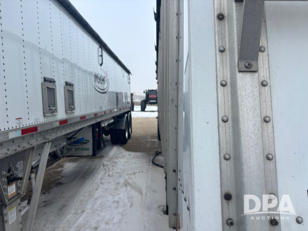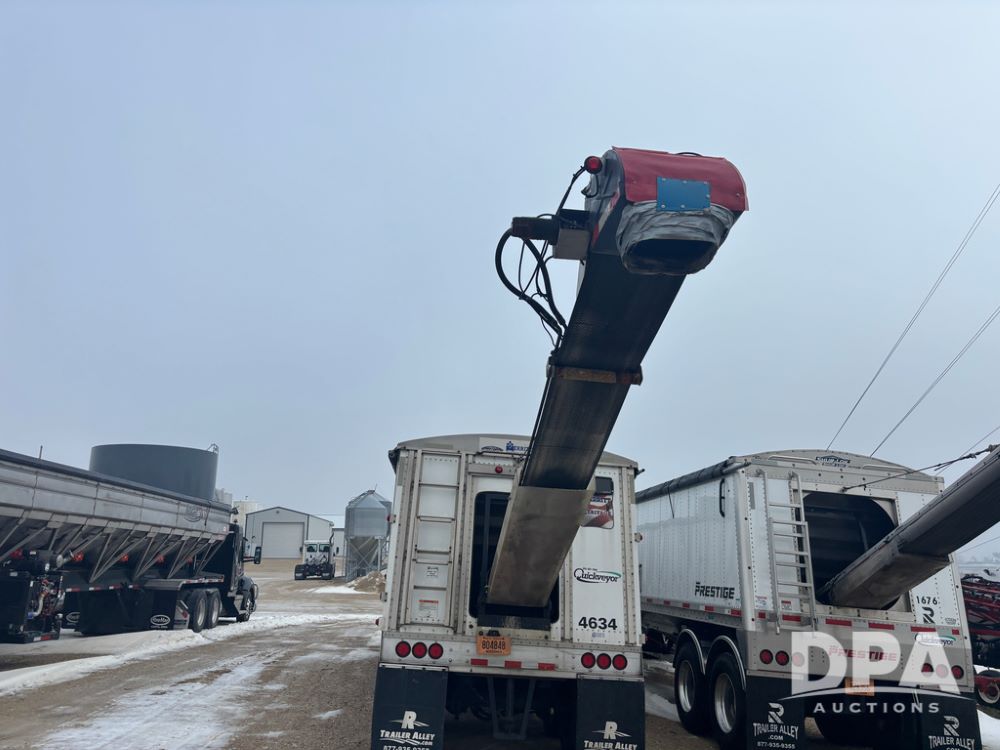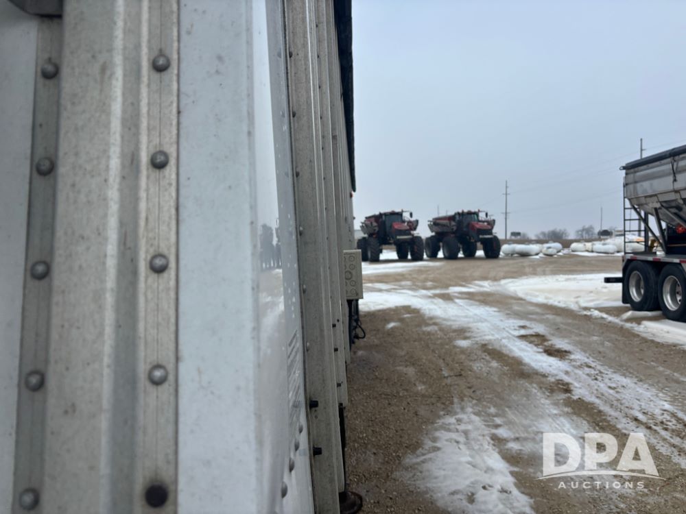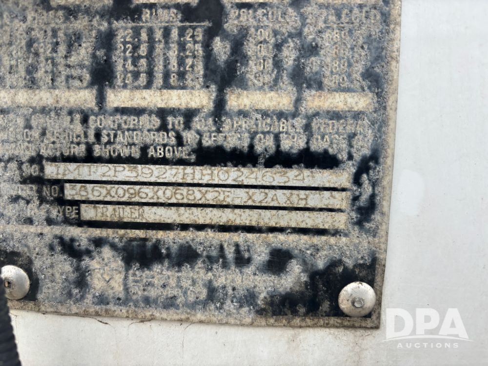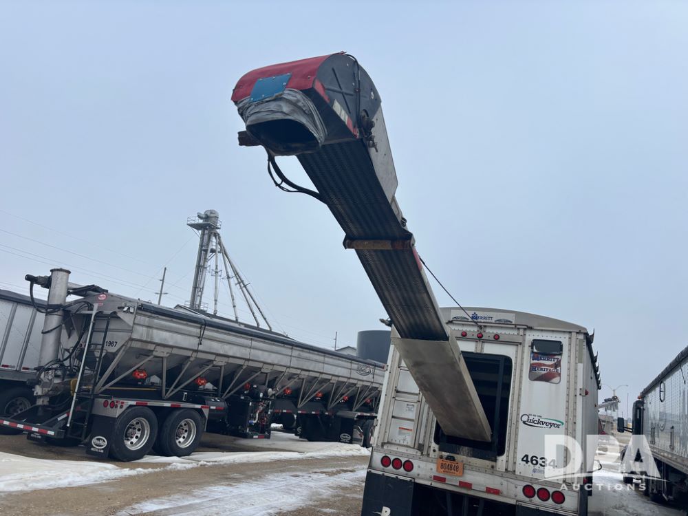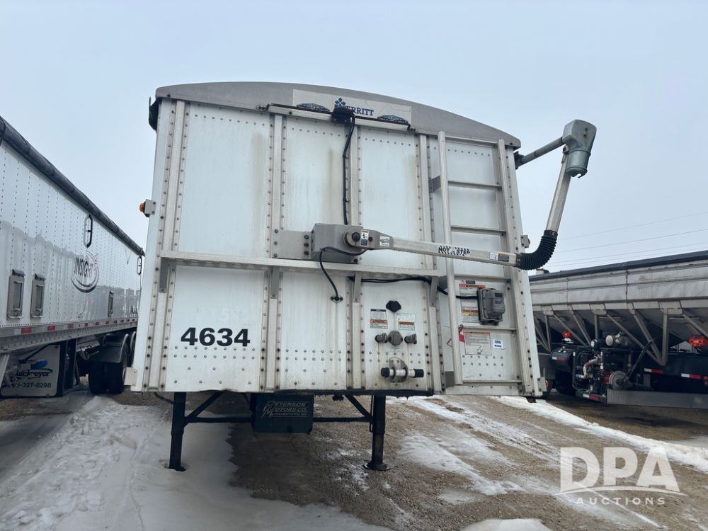 2017 Merritt Dry Trailer (DR12896 Unit 4634), 40' aluminum dry tender trailer, self contained hydraulics w/Honda gas engine and electric start, rear discharge conveyor, electric roll over tarp, side sight glass windows, tandem axle, 22.5 tires, outside aluminum wheels.