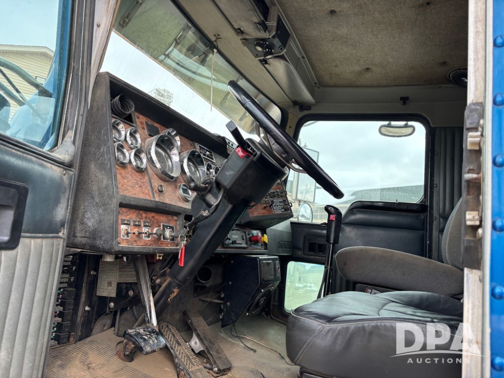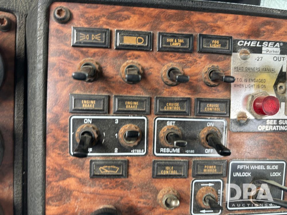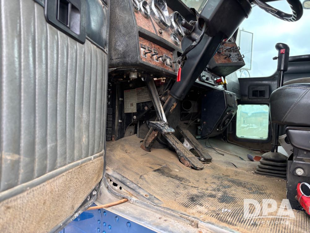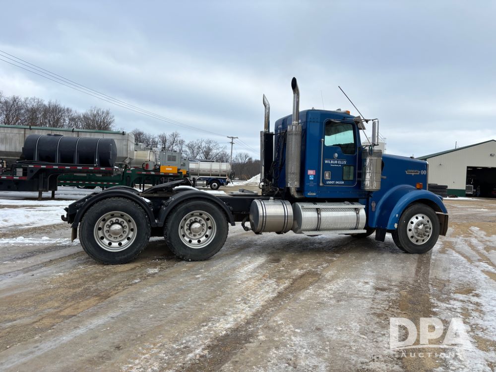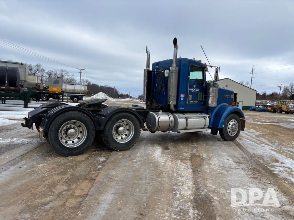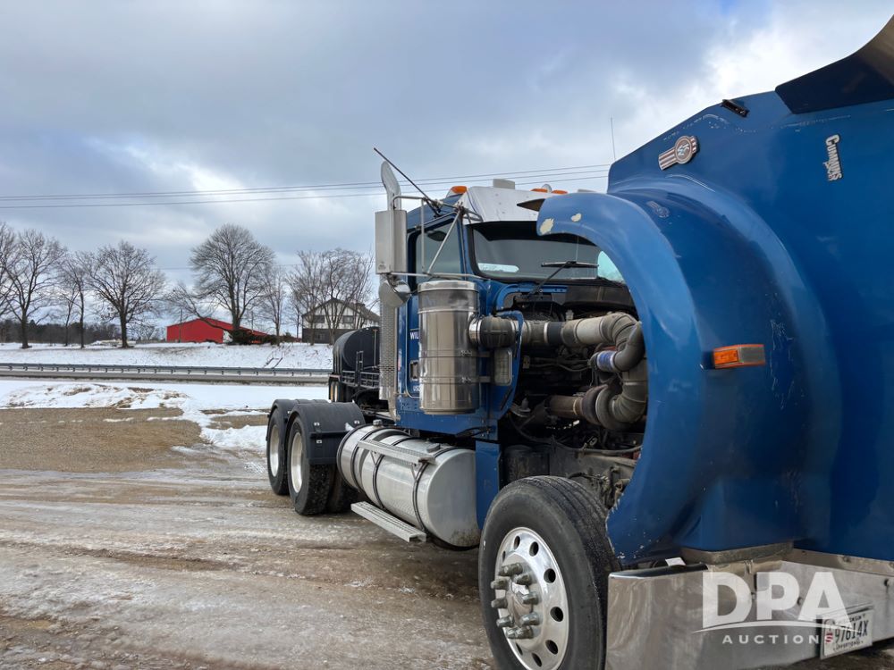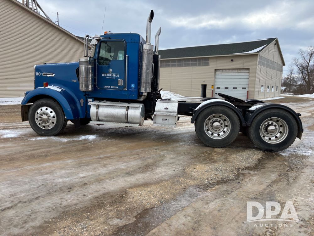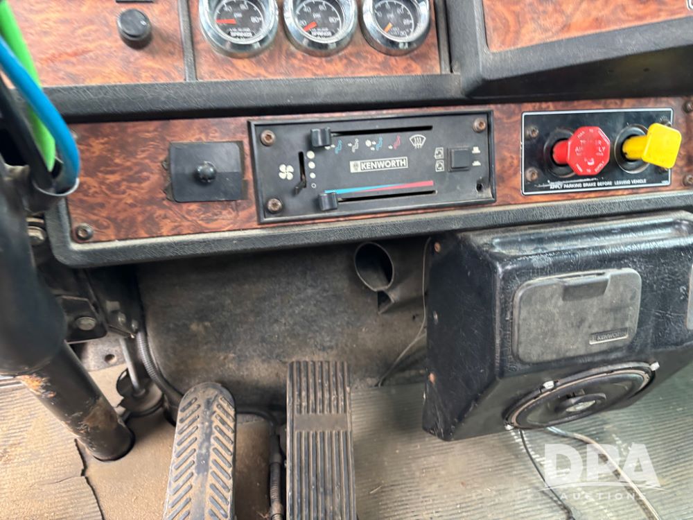 2000 Kenworth W900 Truck (DR13180), Cummins N14 diesel engine, 13 speed transmission (has issues), tandem axle full screw, 210'' WB, day cab, hydraulic wet kit, air slide 5th wheel plate, dual chrome stacks, stainless steel drop visor, dual chrome air breathers, dual aluminum fuel tanks, Minimizer double hump fenders, rear pintle hitch, engine brake, cruise control, 24.5 tires, aluminum wheels.