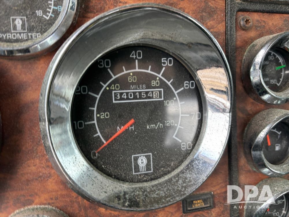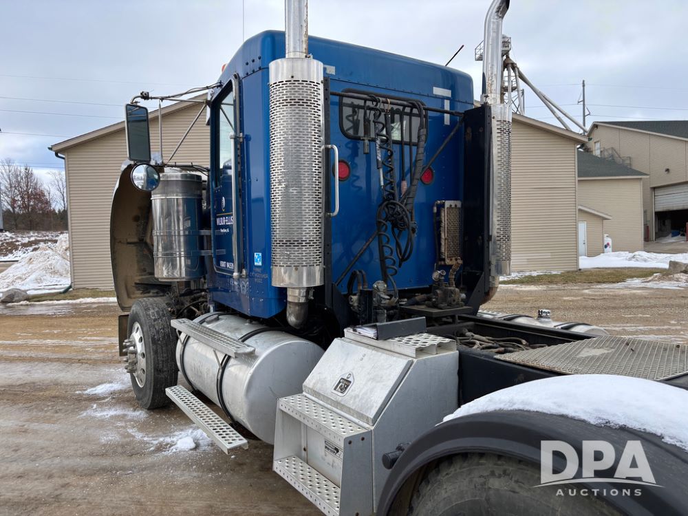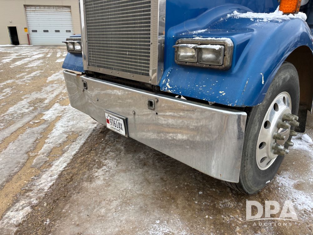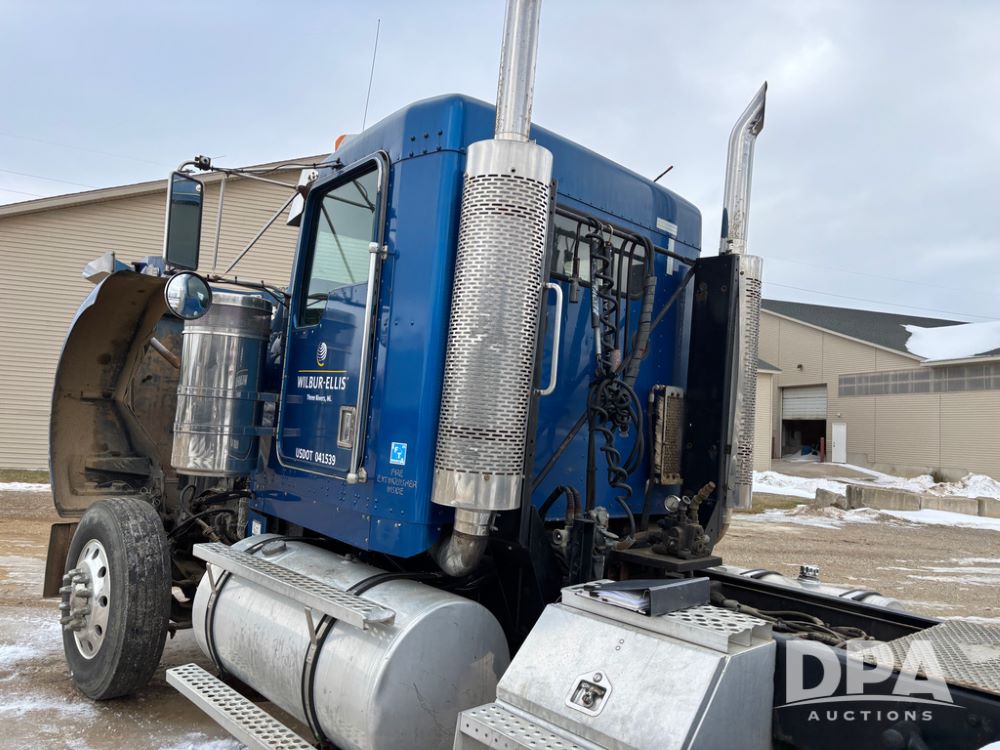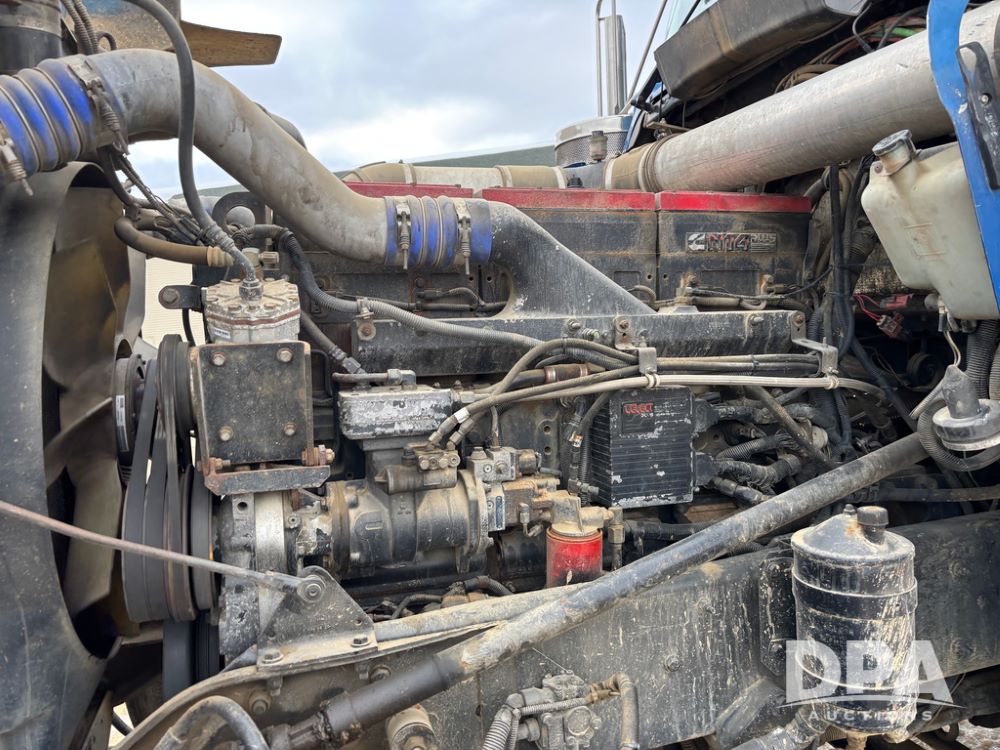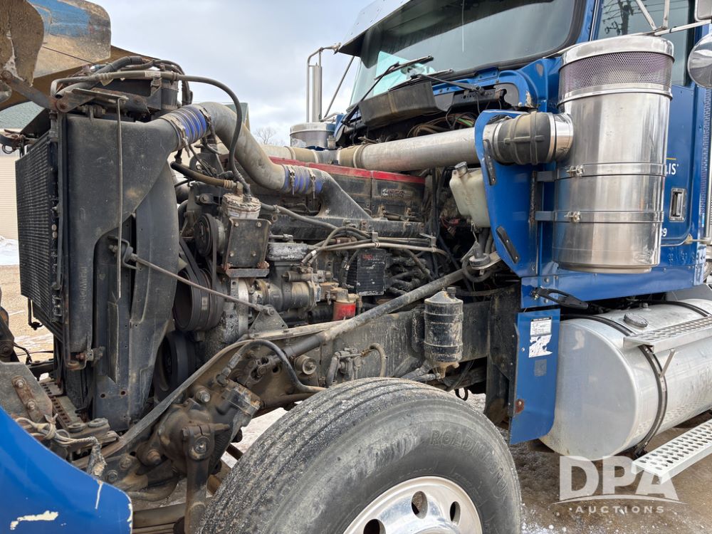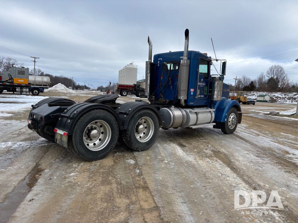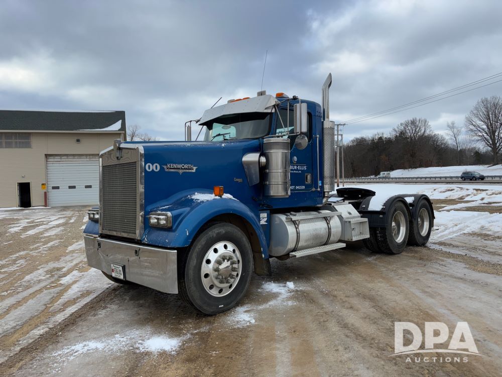 2000 Kenworth W900 Truck (DR13180), Cummins N14 diesel engine, 13 speed transmission (has issues), tandem axle full screw, 210'' WB, day cab, hydraulic wet kit, air slide 5th wheel plate, dual chrome stacks, stainless steel drop visor, dual chrome air breathers, dual aluminum fuel tanks, Minimizer double hump fenders, rear pintle hitch, engine brake, cruise control, 24.5 tires, aluminum wheels.