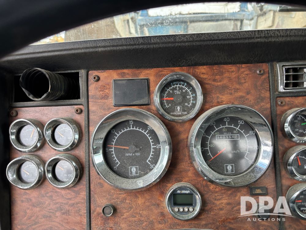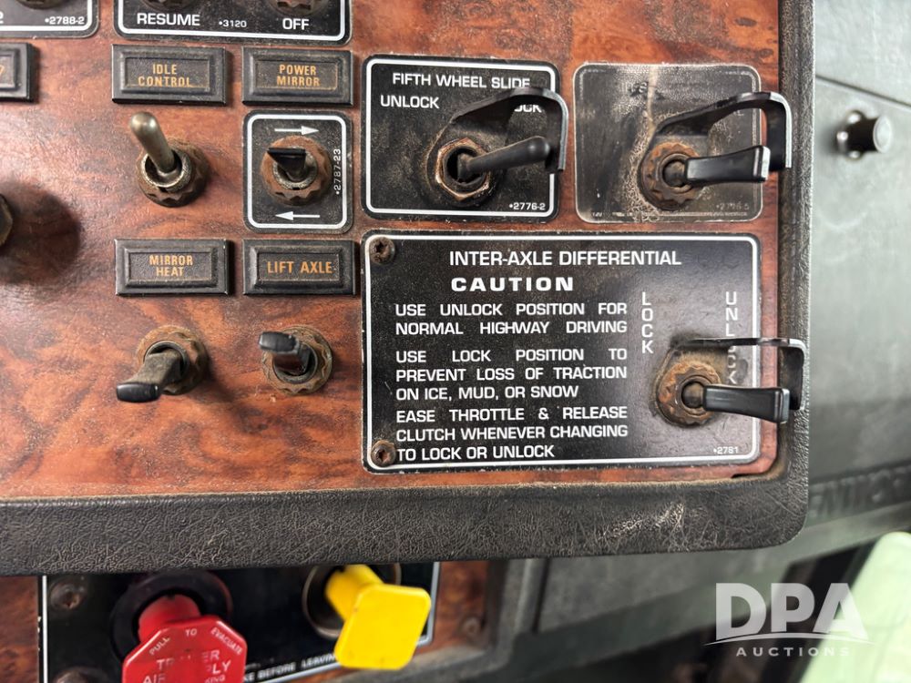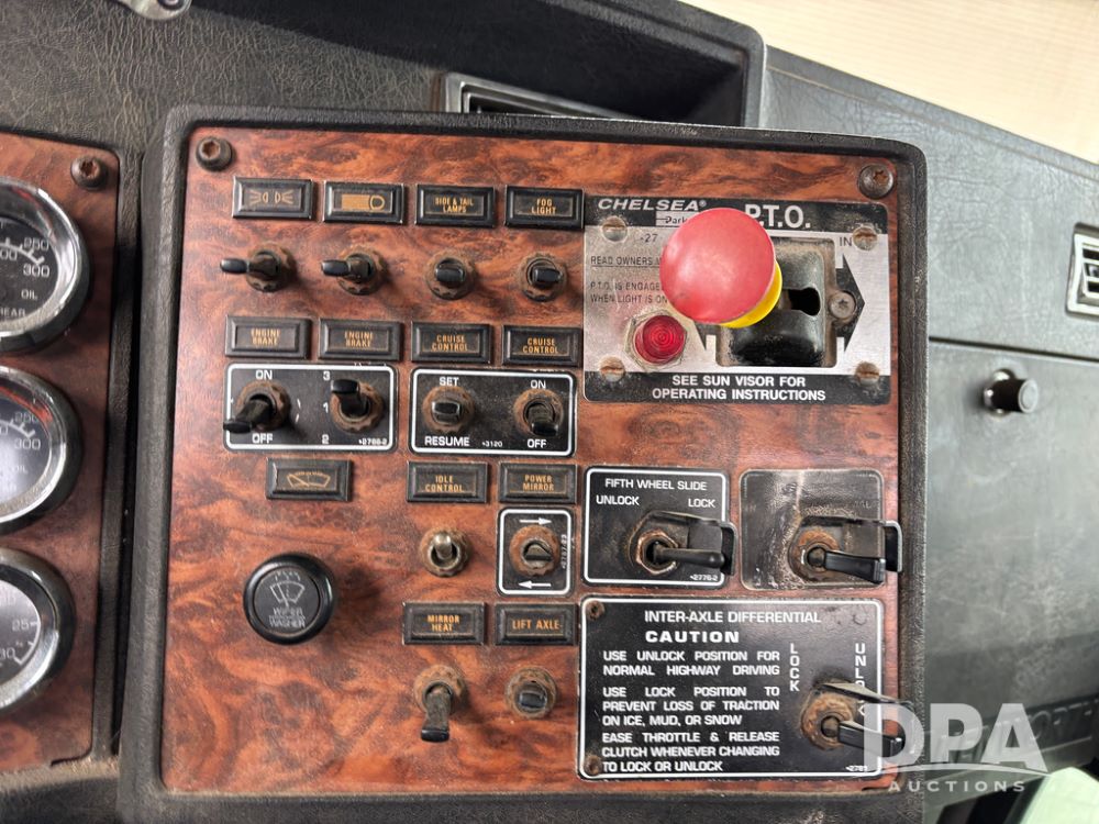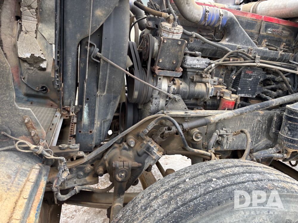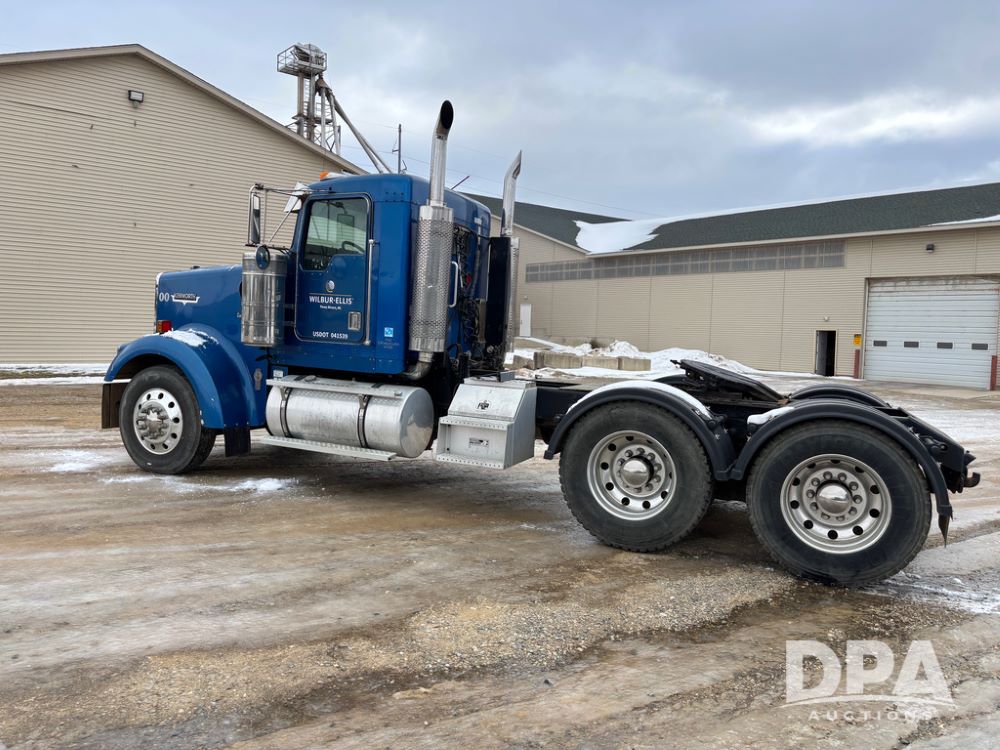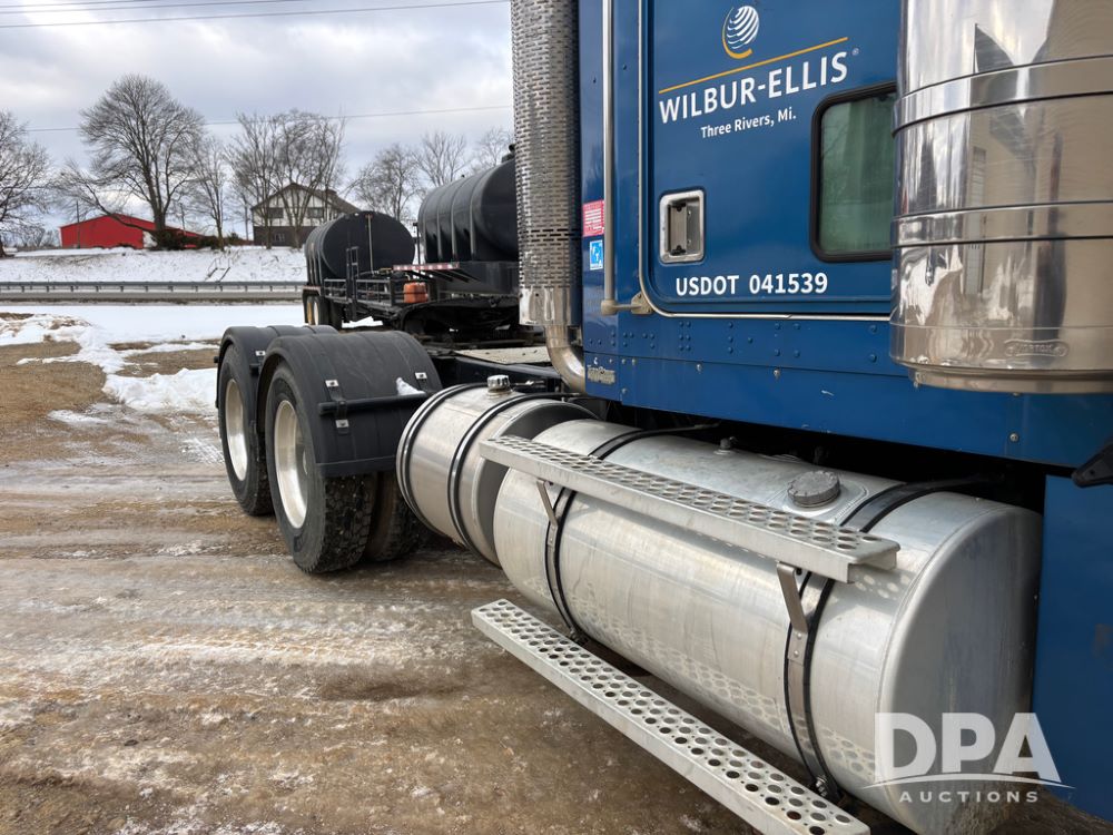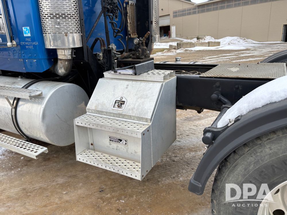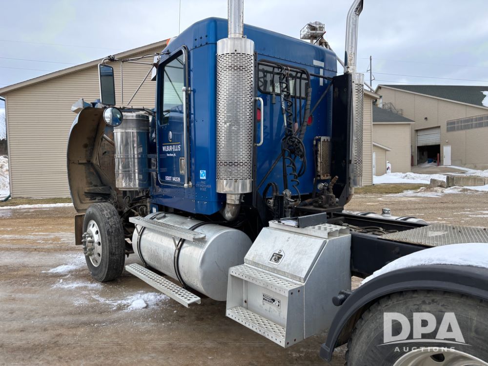 2000 Kenworth W900 Truck (DR13180), Cummins N14 diesel engine, 13 speed transmission (has issues), tandem axle full screw, 210'' WB, day cab, hydraulic wet kit, air slide 5th wheel plate, dual chrome stacks, stainless steel drop visor, dual chrome air breathers, dual aluminum fuel tanks, Minimizer double hump fenders, rear pintle hitch, engine brake, cruise control, 24.5 tires, aluminum wheels.