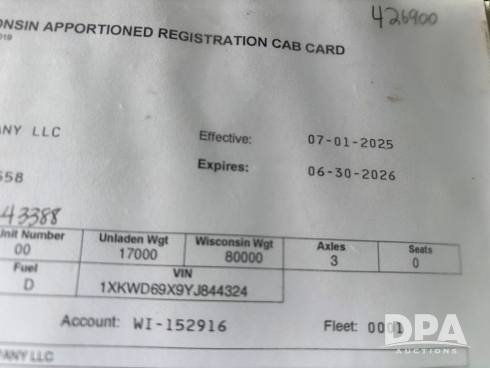 Serial Number: 1XKWD69X9YJ844324