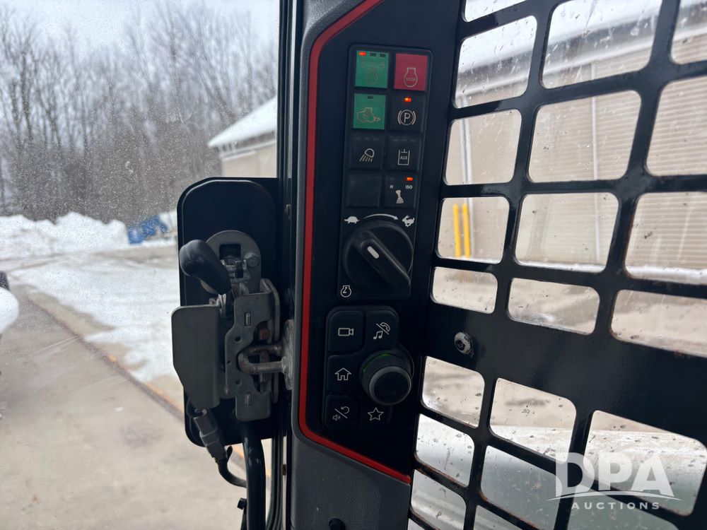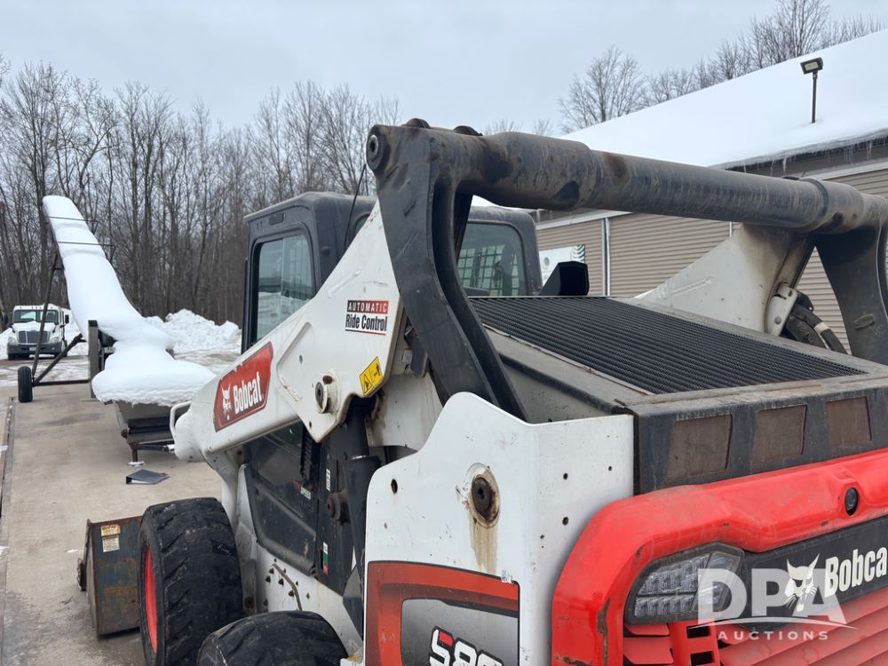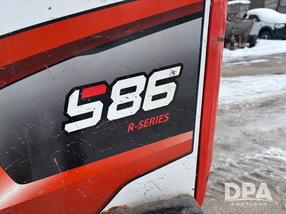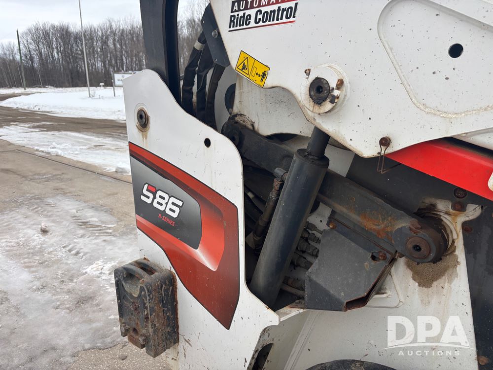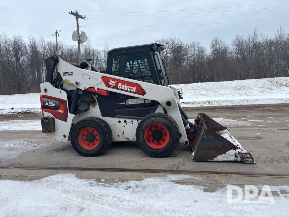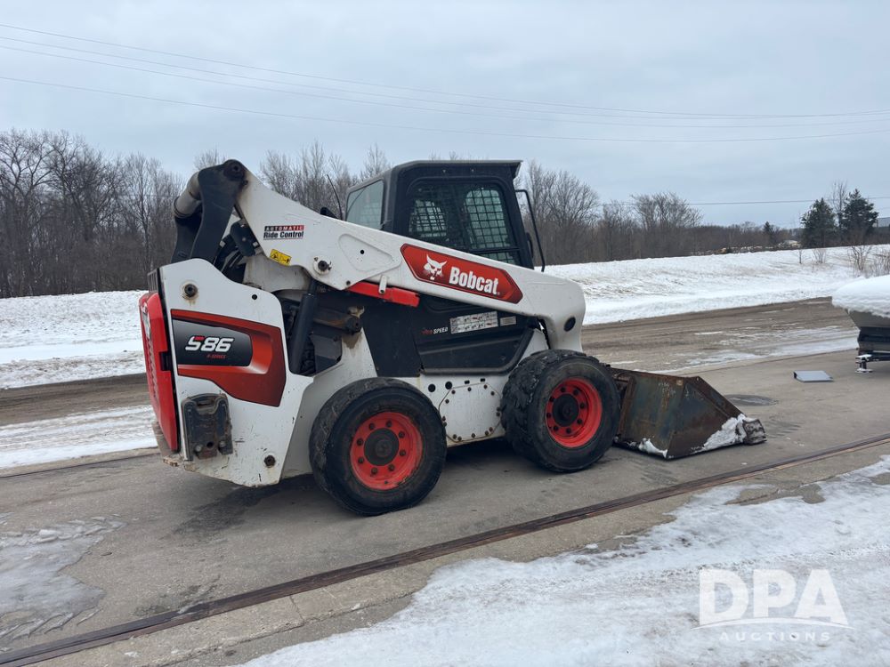 2023 Bobcat S86 Skid Loader (DR13181), diesel engine, hydrostatic drive 2 speed, enclosed cab, automatic ride control, rear suitcase weights, 84'' front bucket, auxiliary hydraulic and electrical outlets, AM/FM radio, 12-16.5 tires, only 884 hours.
