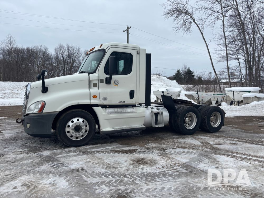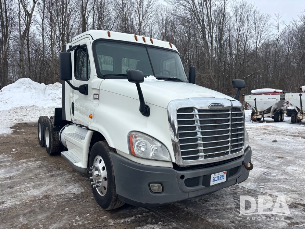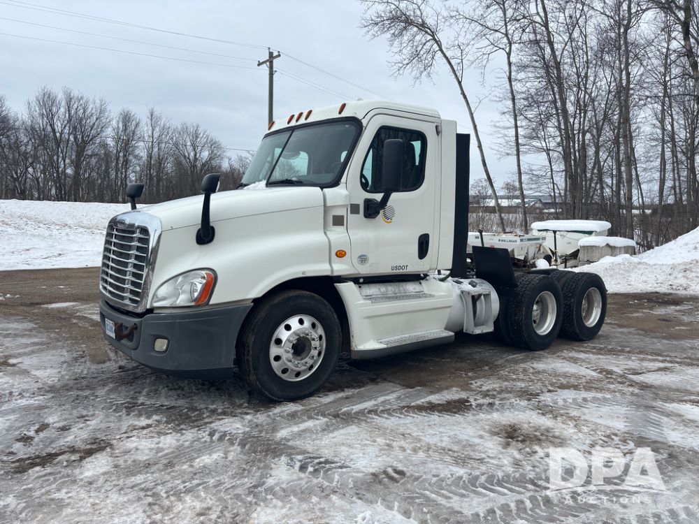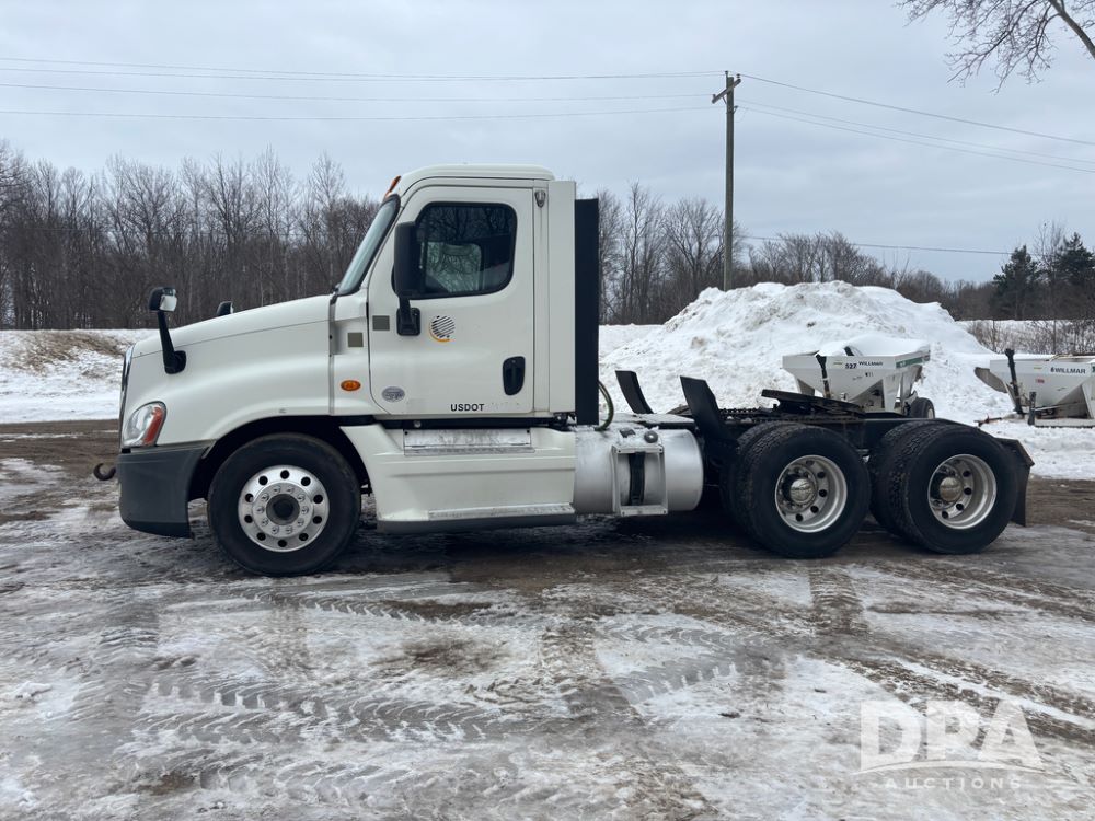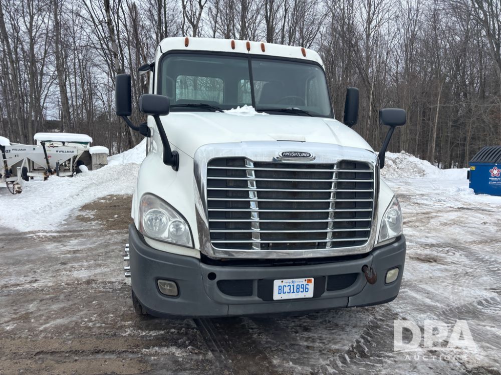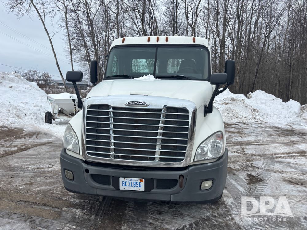 2014 Freightliner Cascadia Truck (DR13182), Cummins diesel engine, Smart shift transmission, tandem axle full screw, air ride suspension, 180'' WB, air slide 5th wheel plate, dual aluminum fuel tanks, air dump valve, cruise control, engine brake, power windows, locks and mirrors, 22.5 tires, all aluminum wheels, odometer reads 559,215 miles.