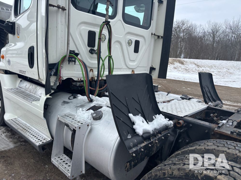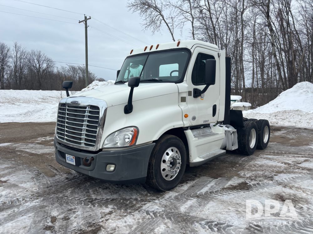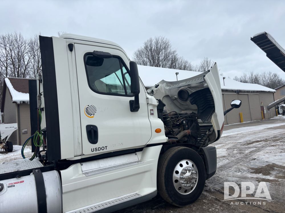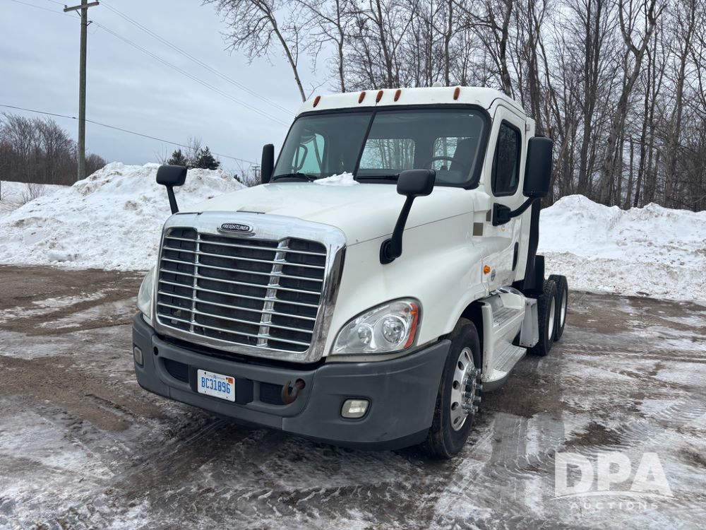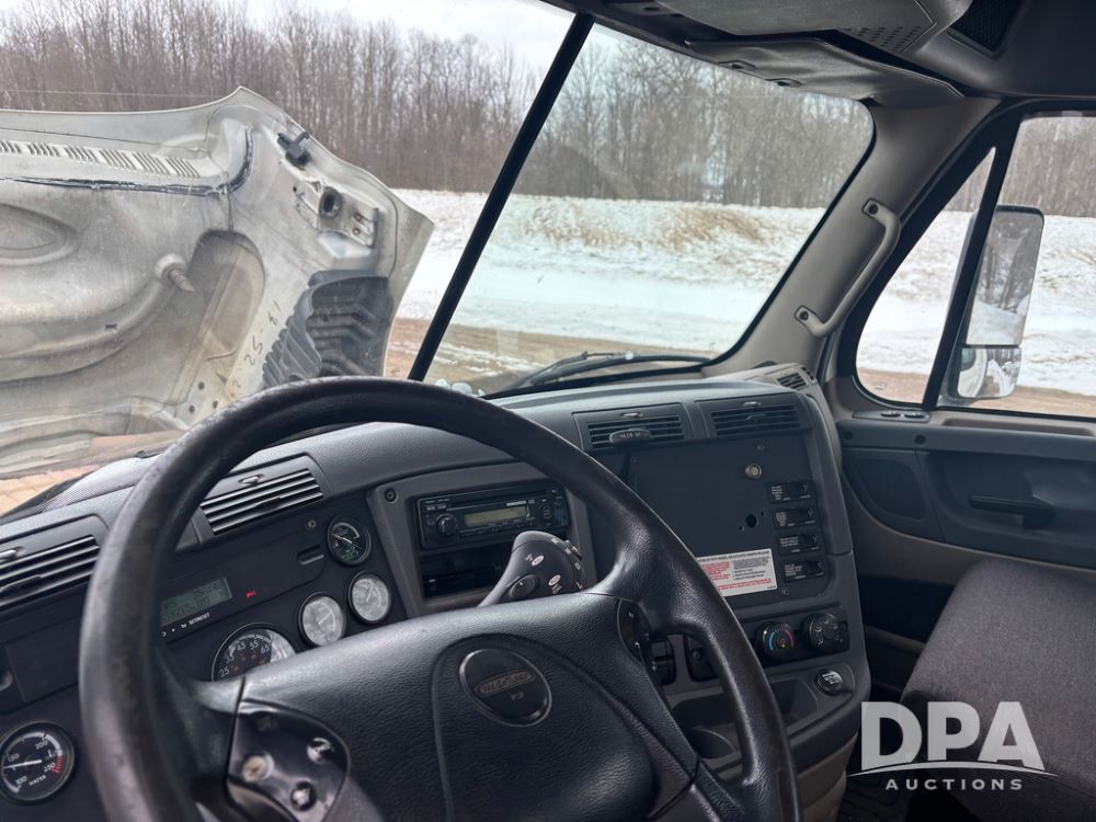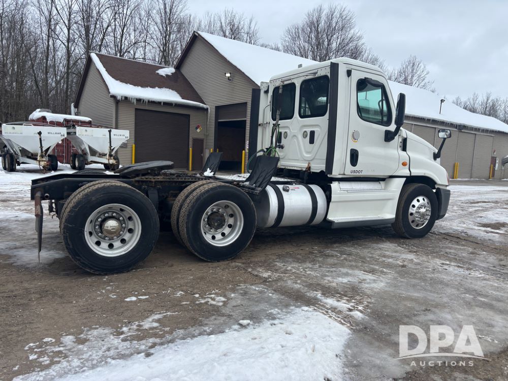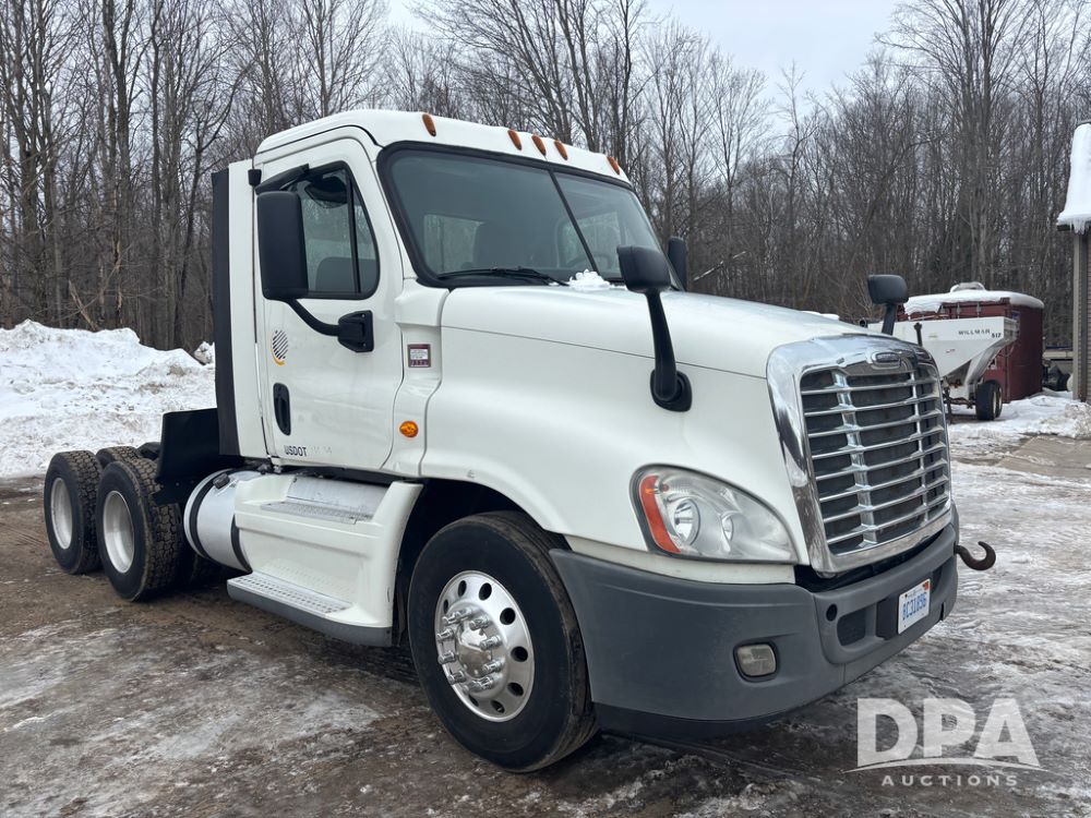 2014 Freightliner Cascadia Truck (DR13182), Cummins diesel engine, Smart shift transmission, tandem axle full screw, air ride suspension, 180'' WB, air slide 5th wheel plate, dual aluminum fuel tanks, air dump valve, cruise control, engine brake, power windows, locks and mirrors, 22.5 tires, all aluminum wheels, odometer reads 559,215 miles.