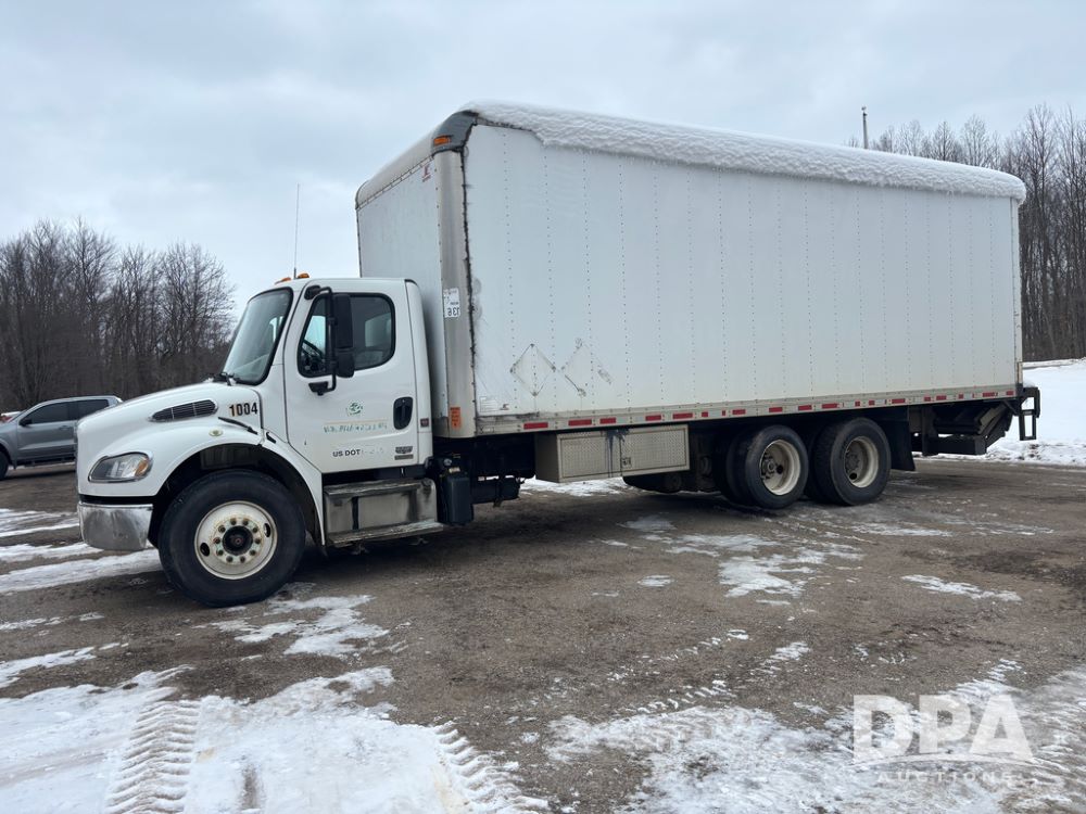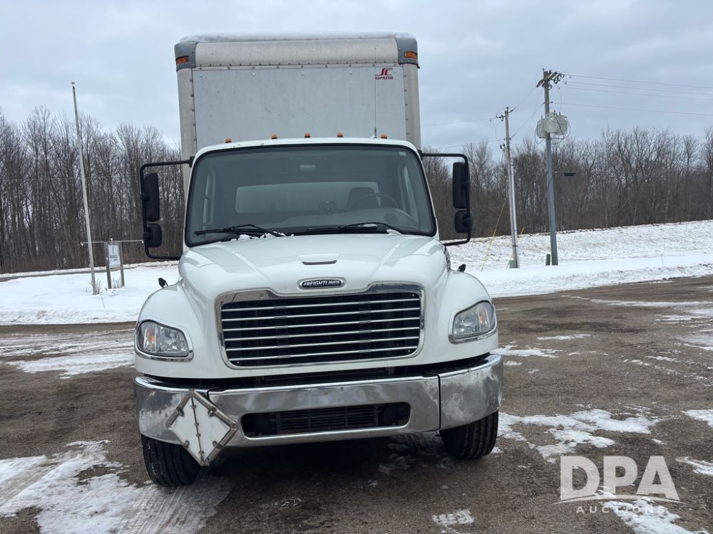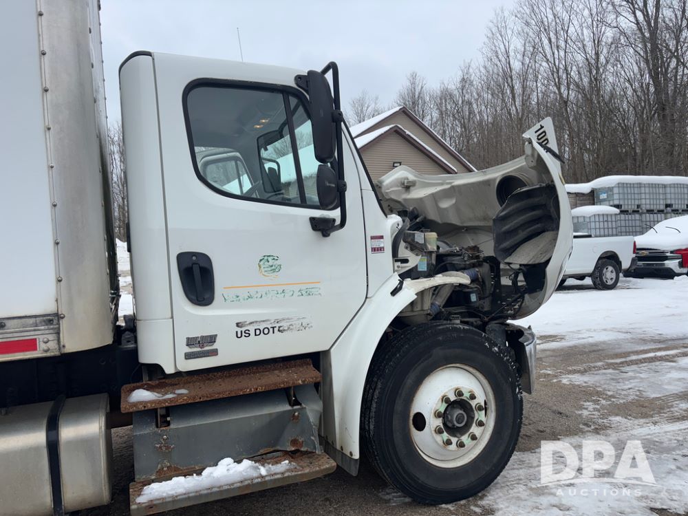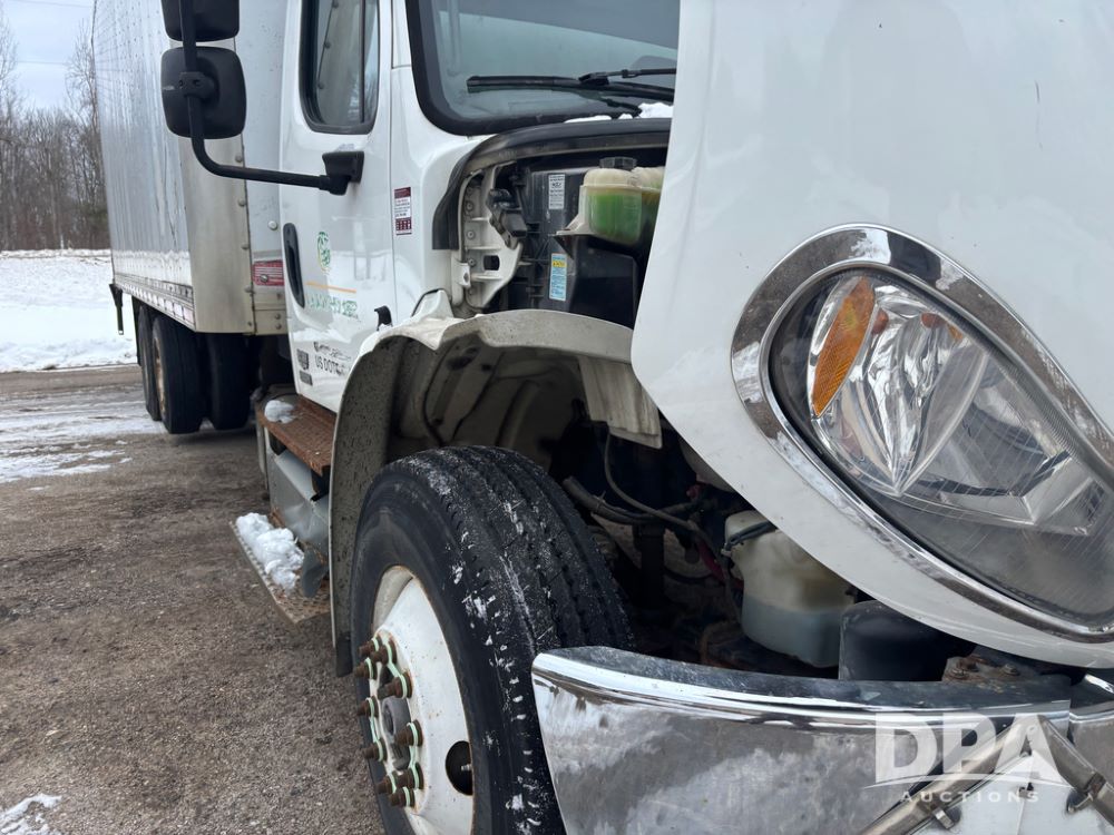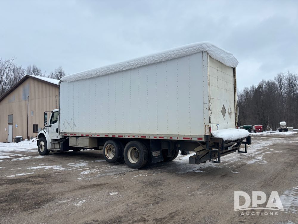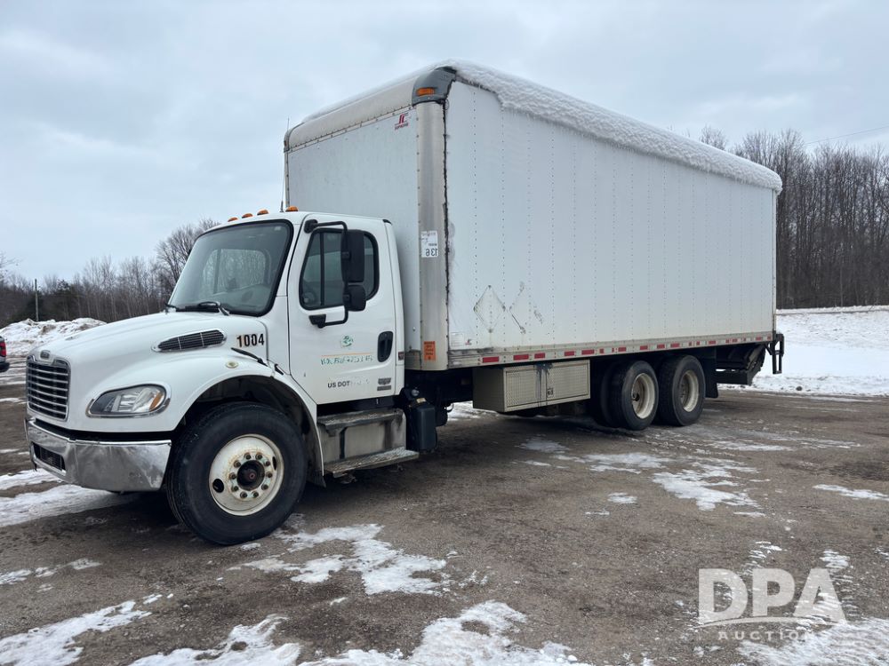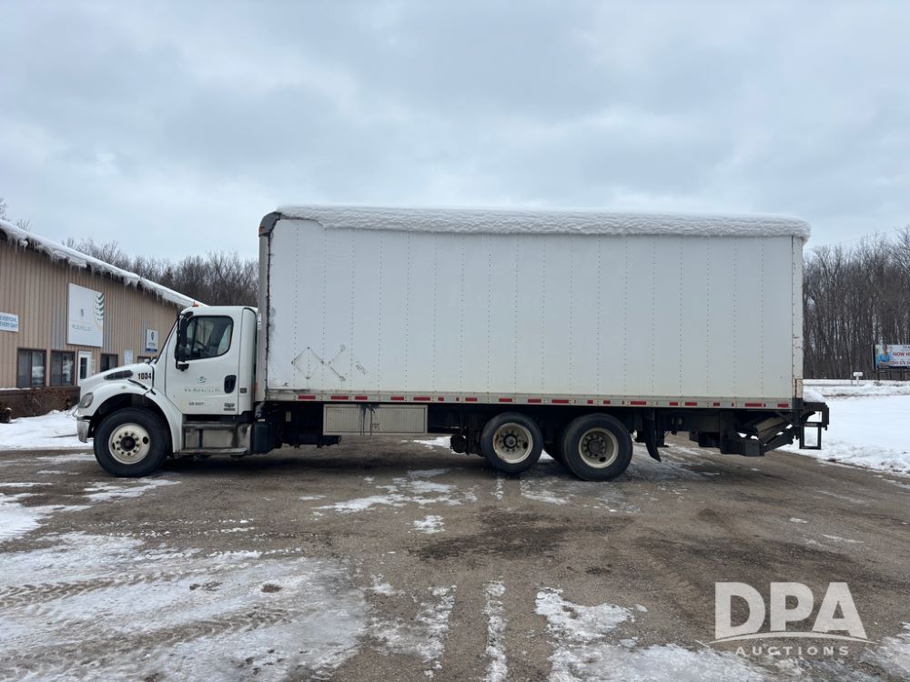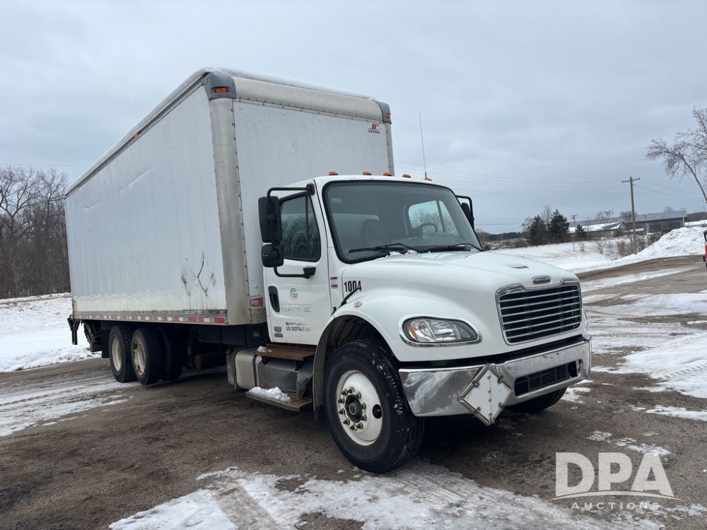 2011 Freightliner Business Class Van Truck (DR13183 Unit 1044), Cummins diesel engine, 6 speed transmission, single axle w/air lift tag axle, air brakes, Supreme 26' van box, rear roll up door (needs work), Thieman rear lift tail gate, frame mounted storage box, rear manual outriggers, heated mirrors, cab heat/air conditioning, cruise control, odometer reads 391,886 miles.