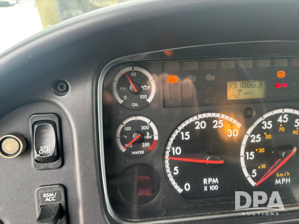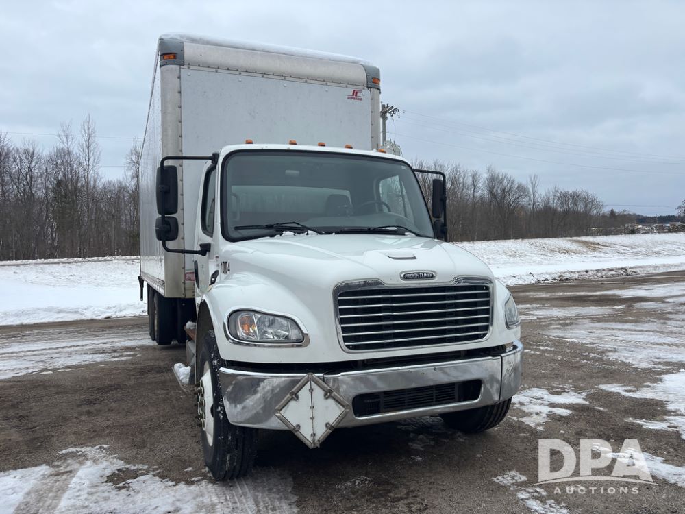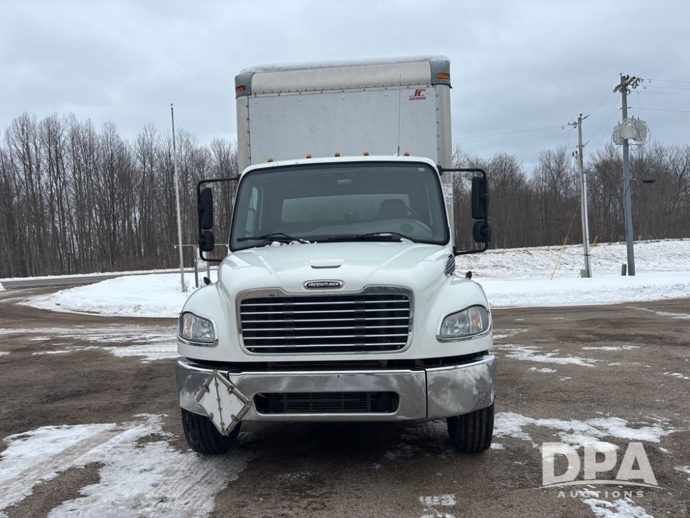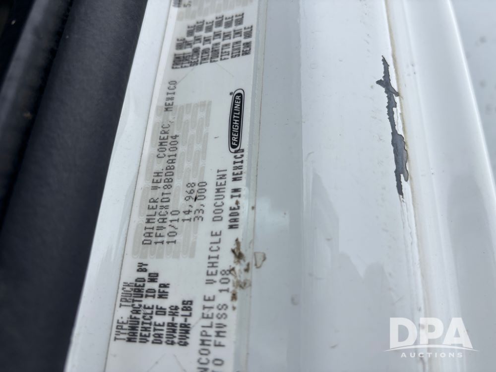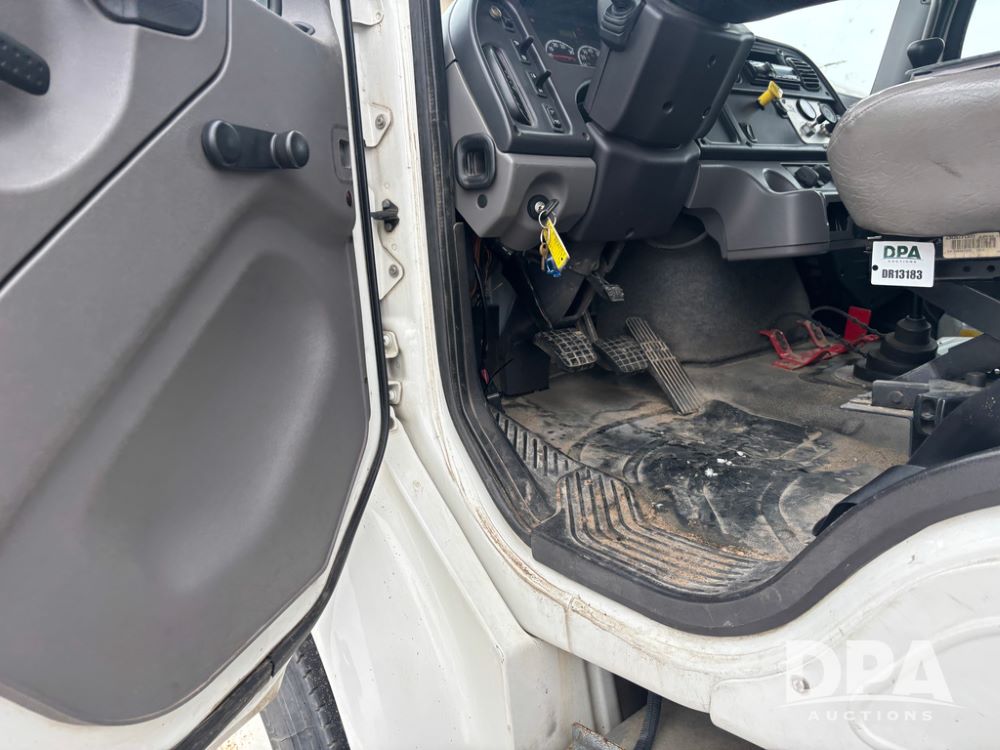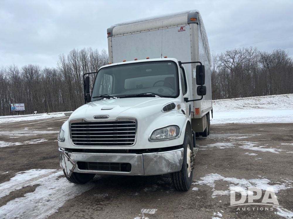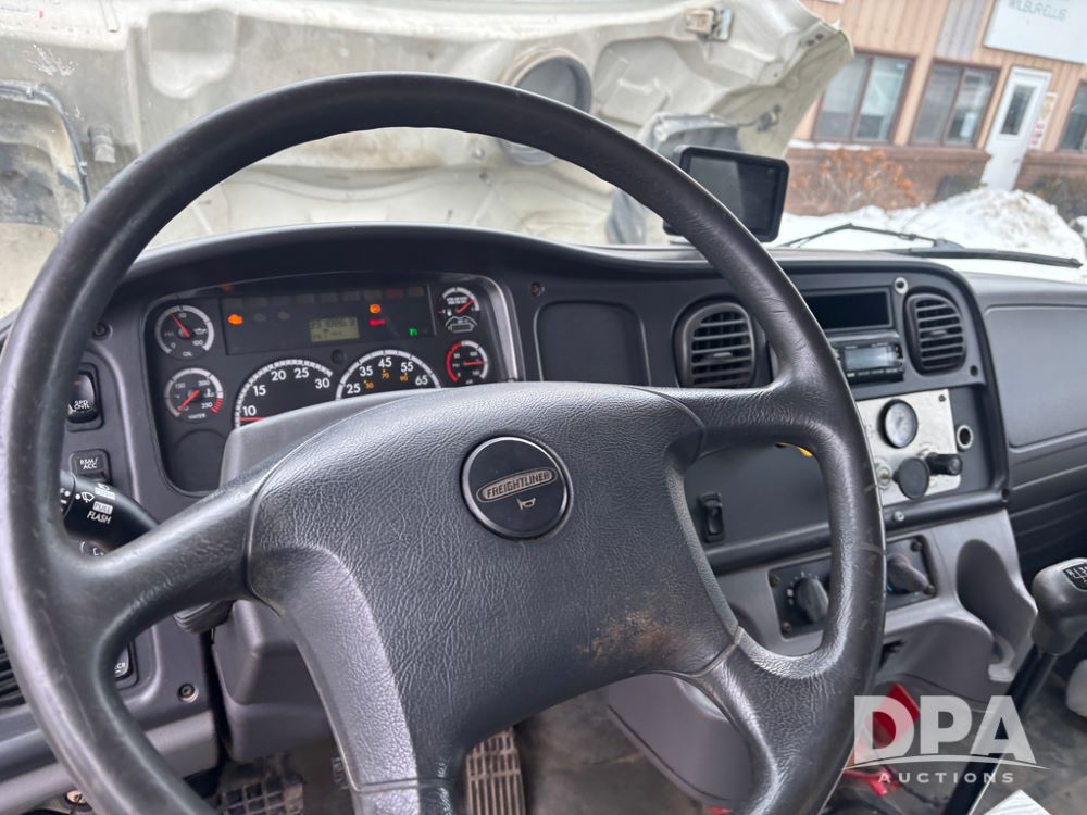 2011 Freightliner Business Class Van Truck (DR13183 Unit 1044), Cummins diesel engine, 6 speed transmission, single axle w/air lift tag axle, air brakes, Supreme 26' van box, rear roll up door (needs work), Thieman rear lift tail gate, frame mounted storage box, rear manual outriggers, heated mirrors, cab heat/air conditioning, cruise control, odometer reads 391,886 miles.
