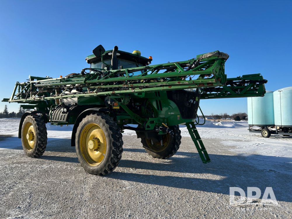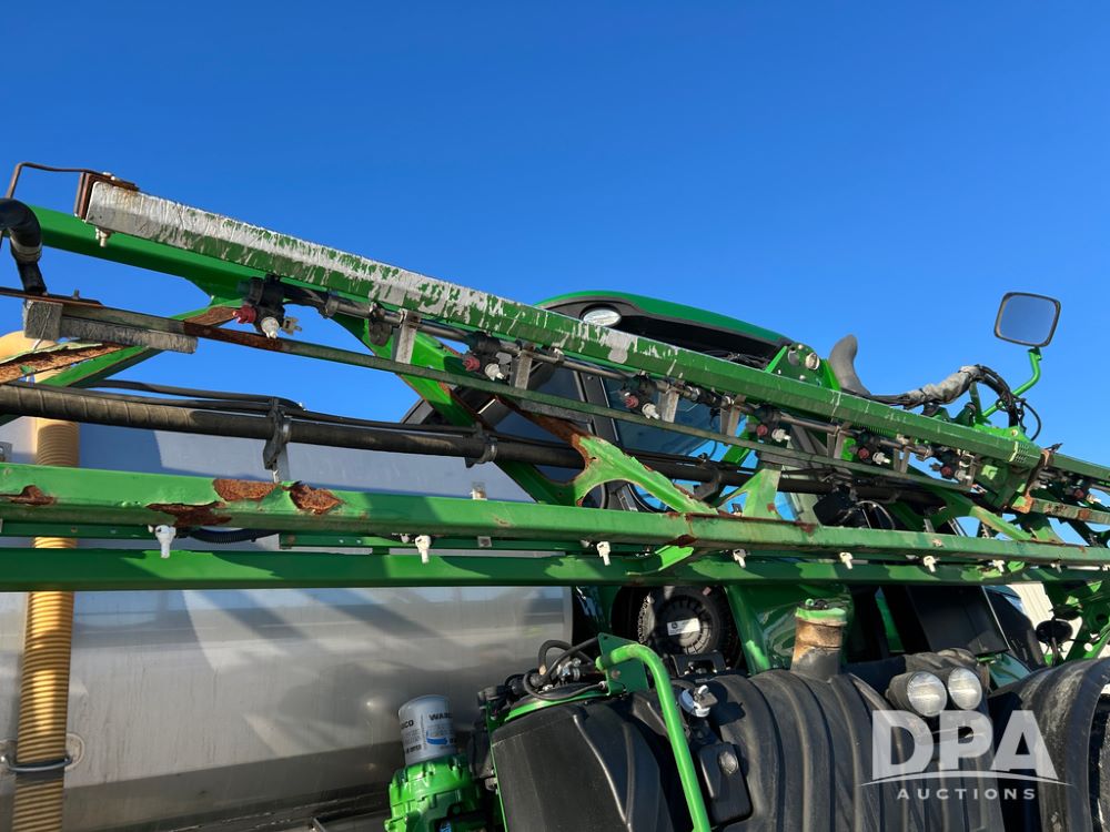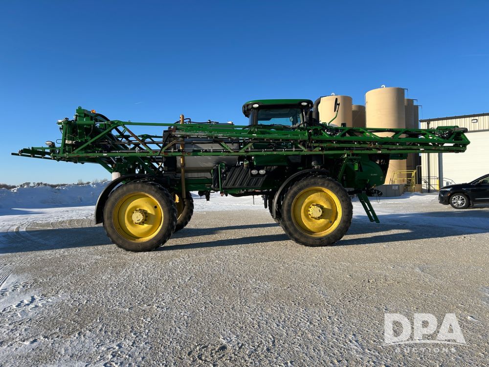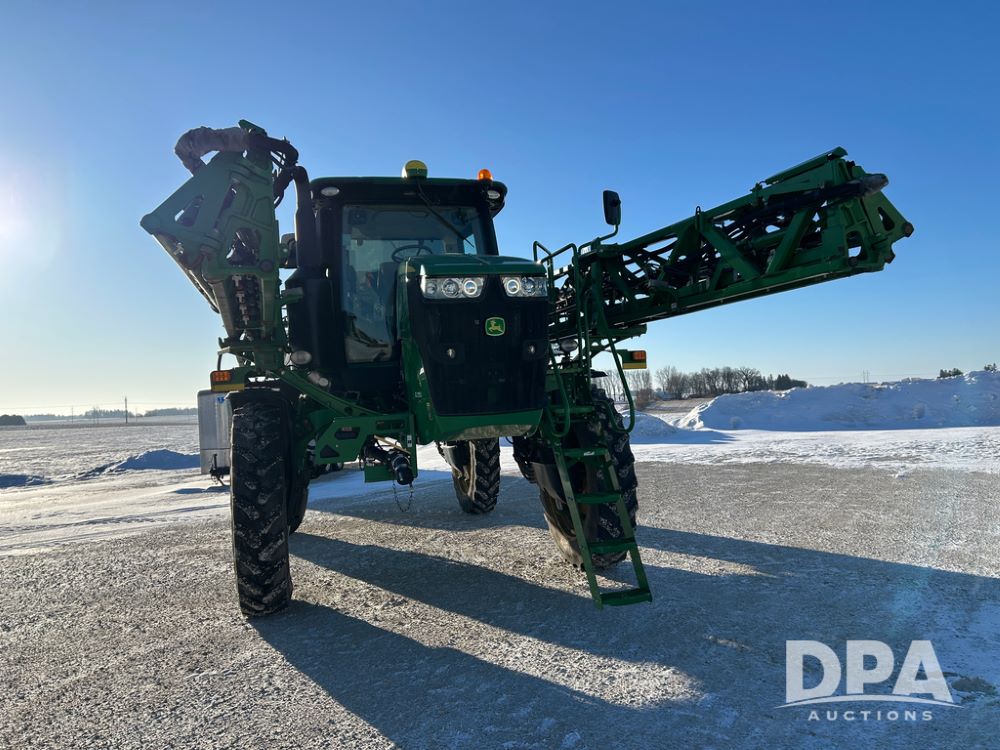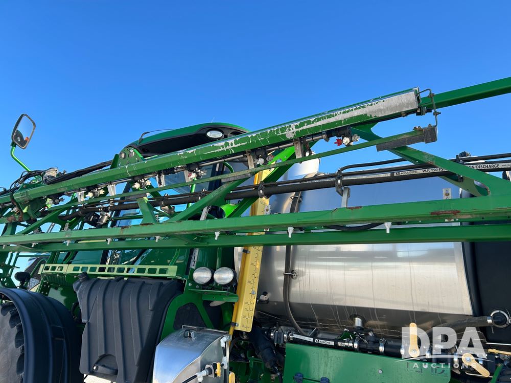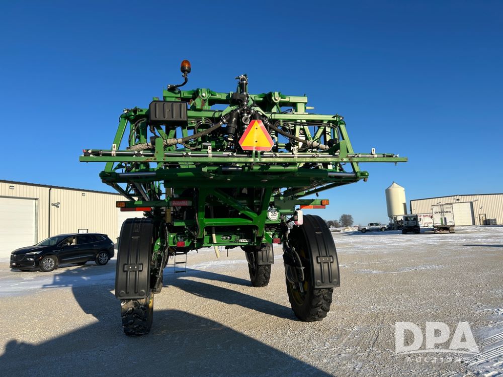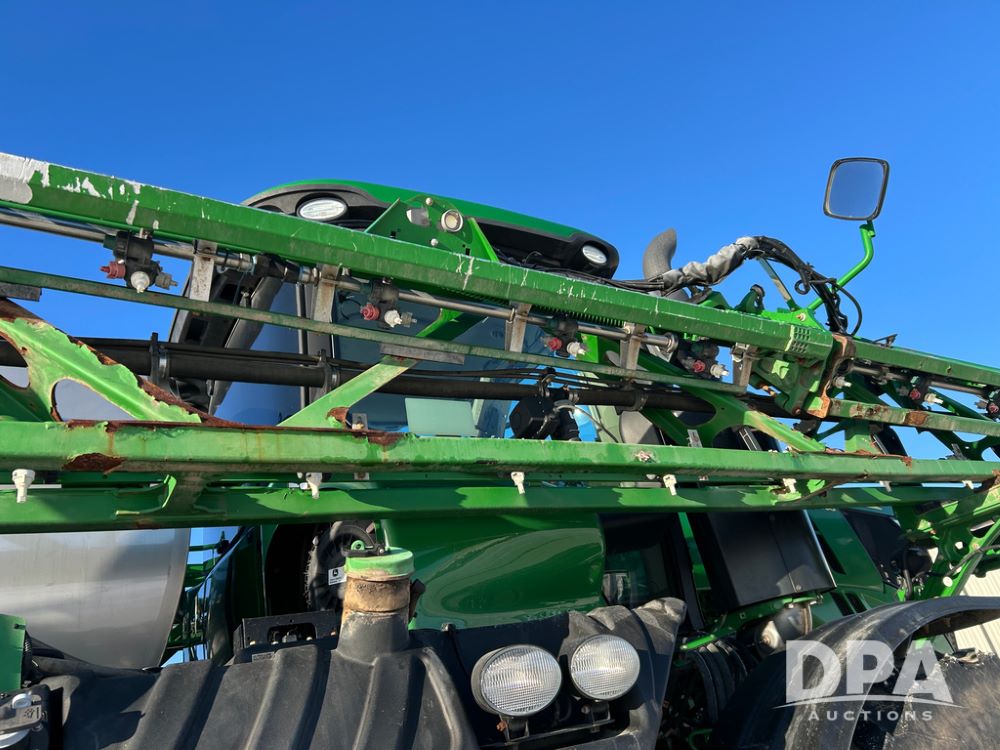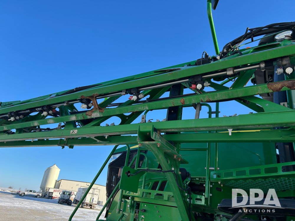 2018 John Deere R4038 Sprayer (CP1550 Unit 106235), John Deere diesel engine, hydrostatic drive, 1,000 gallon stainless steel liquid system, 120' boom, 5 way nozzle bodies, stainless steel chemical inductor, John Deere control, StarFire 6000 receiver, front load, AM/FM CD radio, cab heat/air conditioning, 380/90R46 row crop tires, full set fenders, shows 2,621 hours.