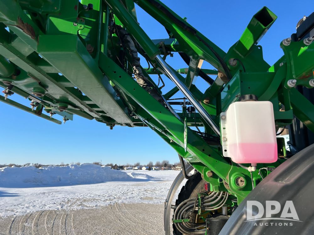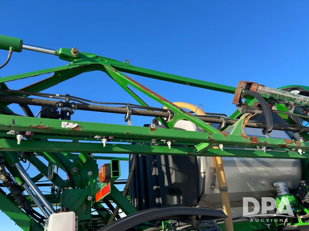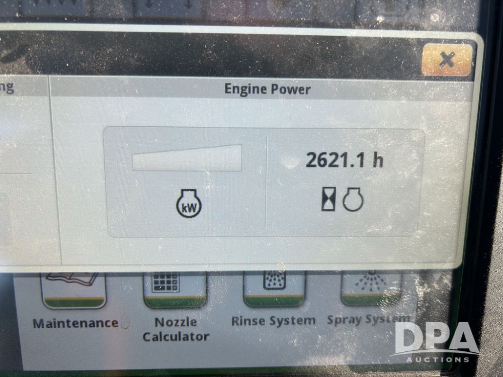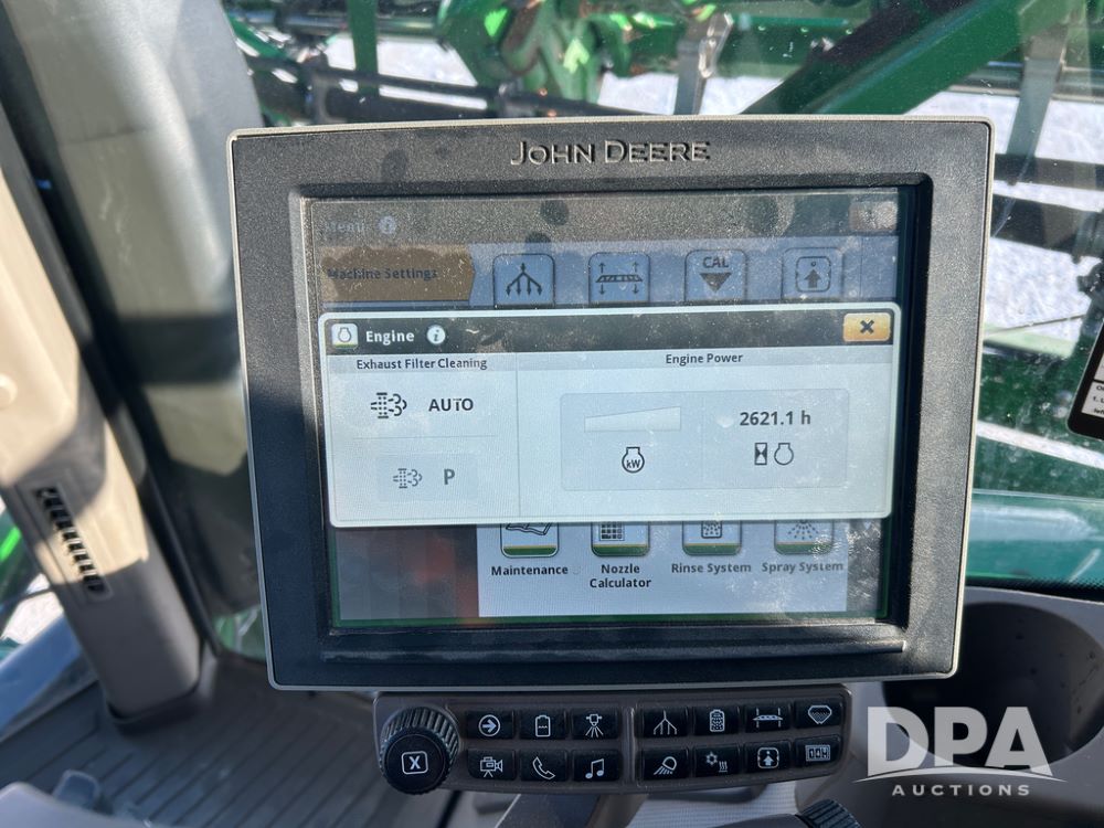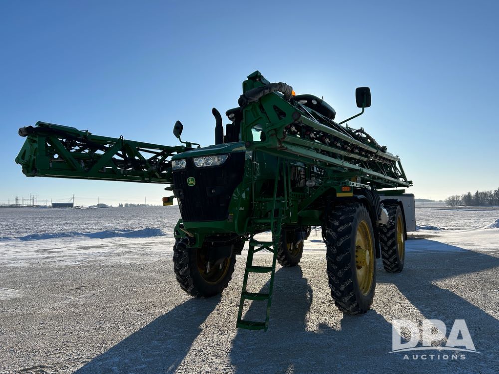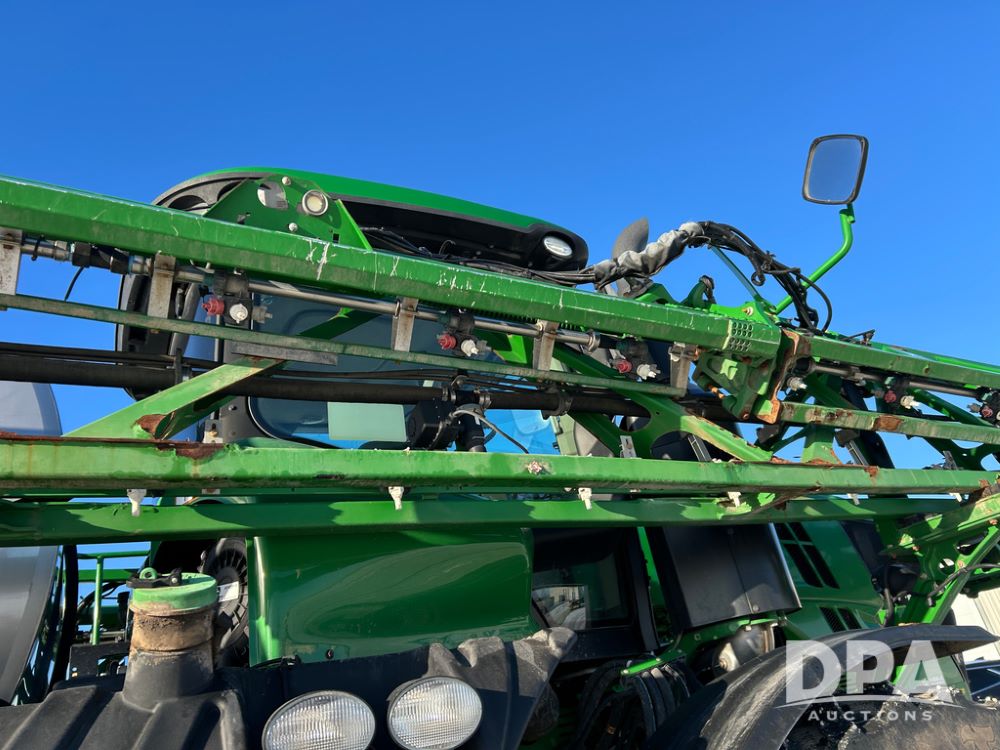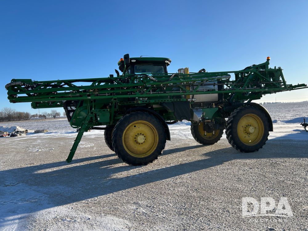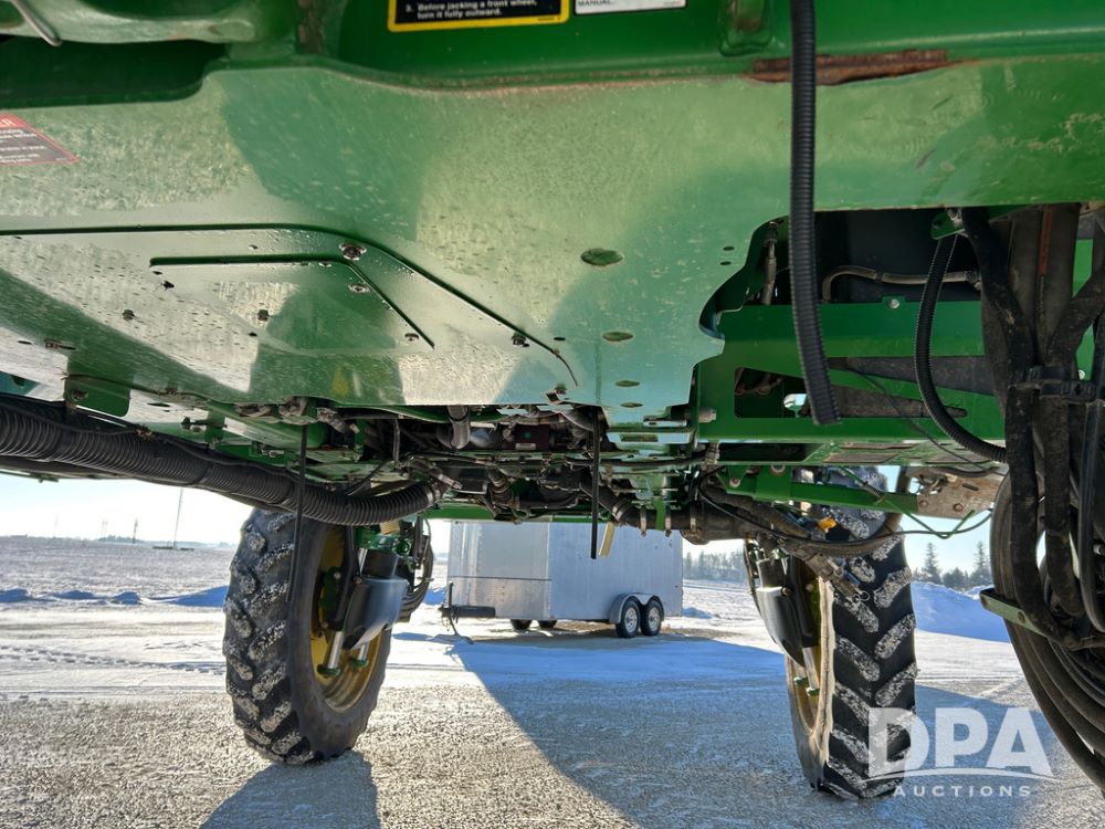 2018 John Deere R4038 Sprayer (CP1550 Unit 106235), John Deere diesel engine, hydrostatic drive, 1,000 gallon stainless steel liquid system, 120' boom, 5 way nozzle bodies, stainless steel chemical inductor, John Deere control, StarFire 6000 receiver, front load, AM/FM CD radio, cab heat/air conditioning, 380/90R46 row crop tires, full set fenders, shows 2,621 hours.
