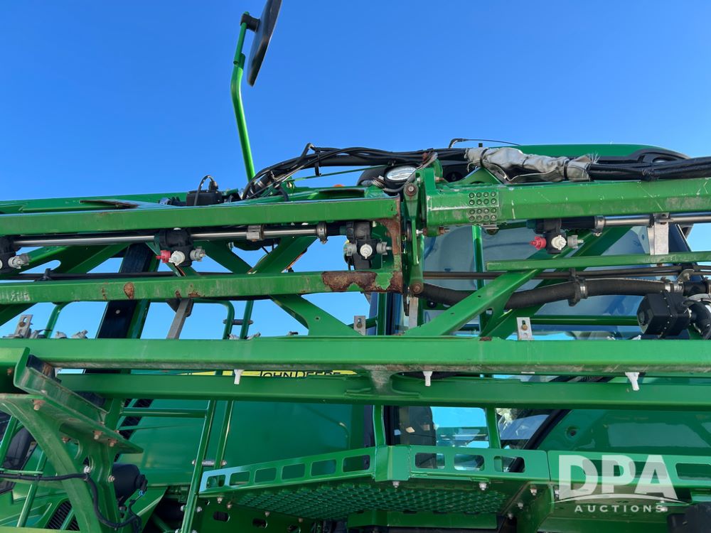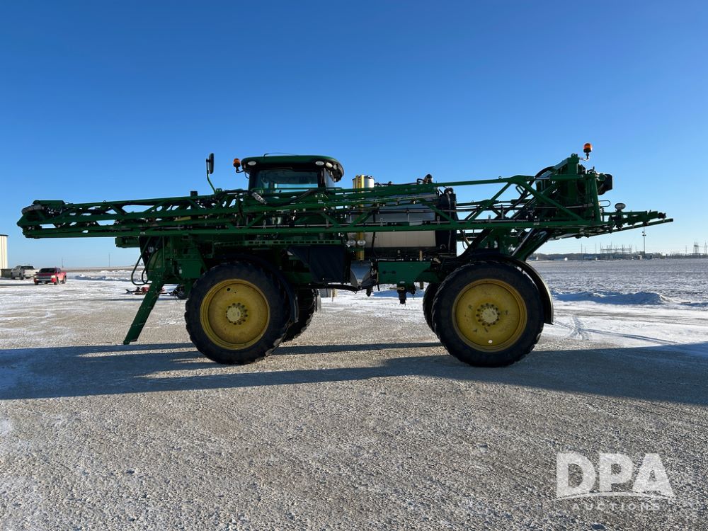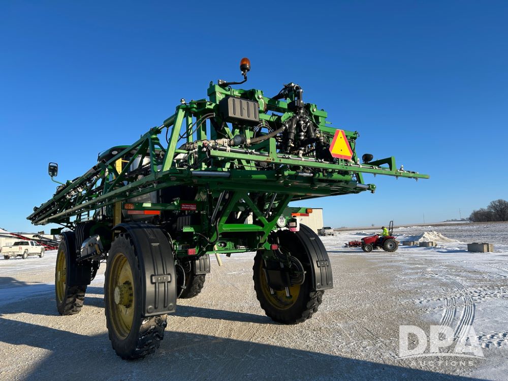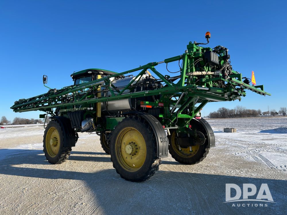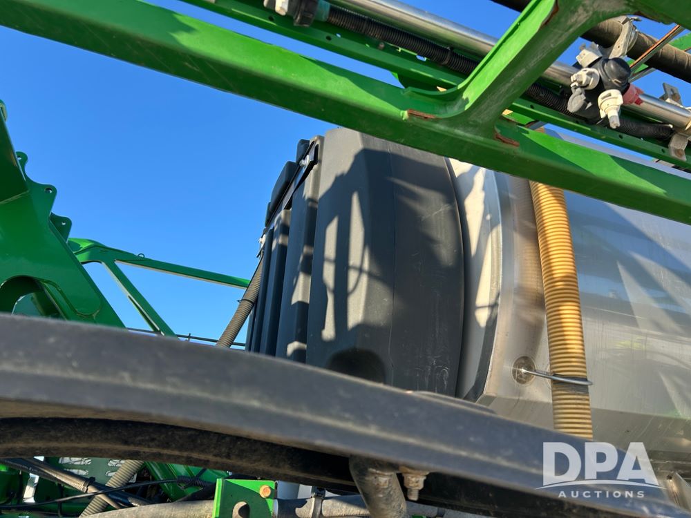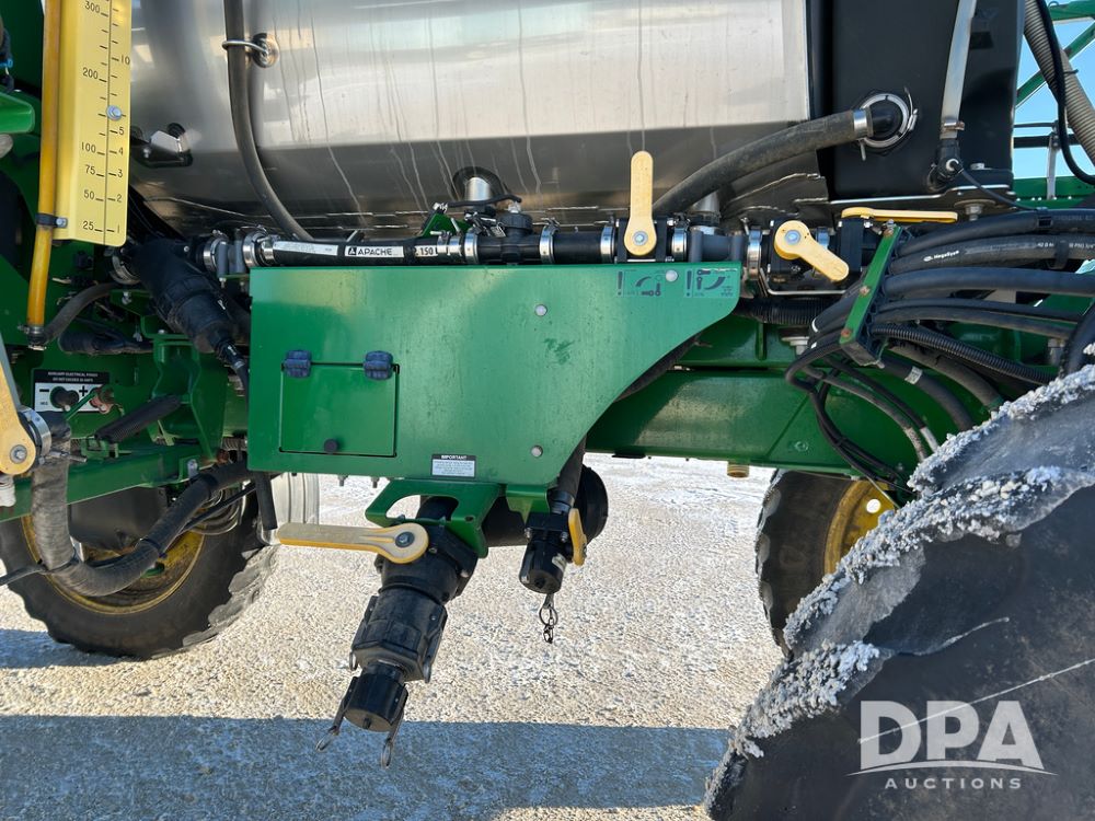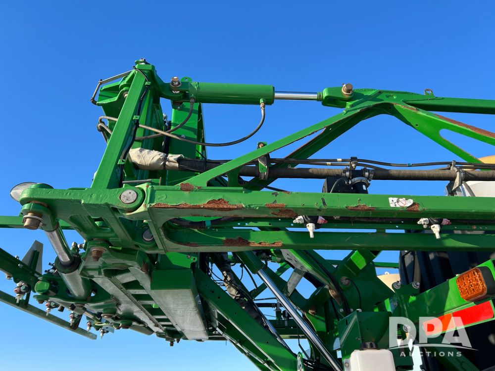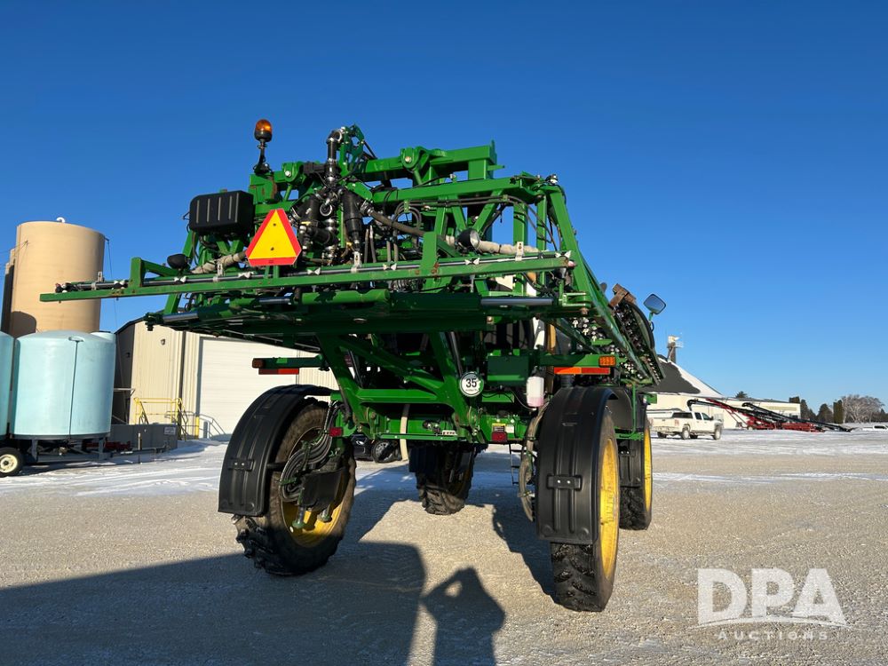 2018 John Deere R4038 Sprayer (CP1550 Unit 106235), John Deere diesel engine, hydrostatic drive, 1,000 gallon stainless steel liquid system, 120' boom, 5 way nozzle bodies, stainless steel chemical inductor, John Deere control, StarFire 6000 receiver, front load, AM/FM CD radio, cab heat/air conditioning, 380/90R46 row crop tires, full set fenders, shows 2,621 hours.