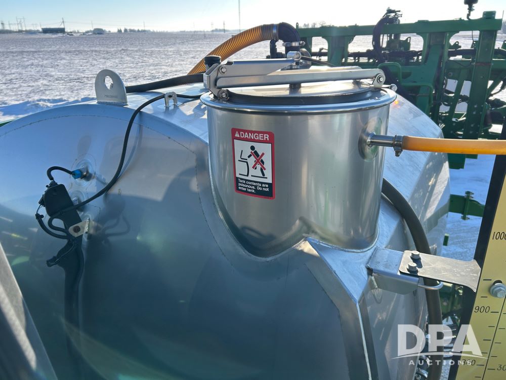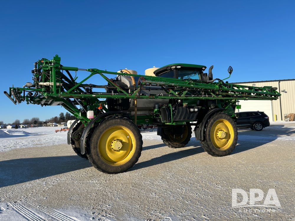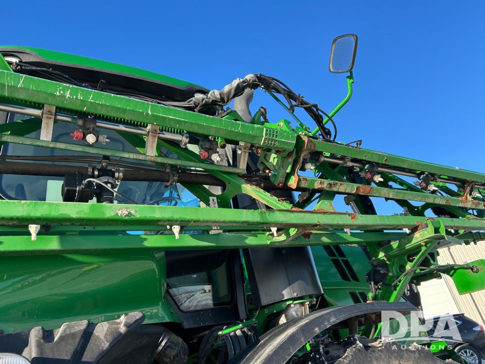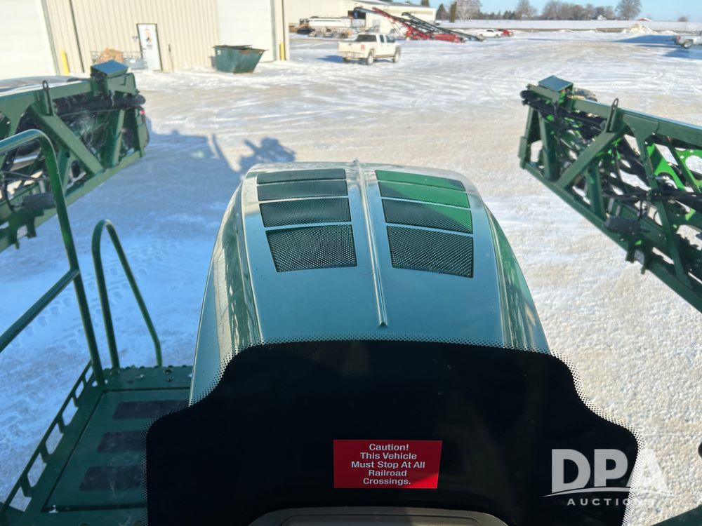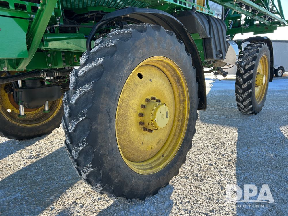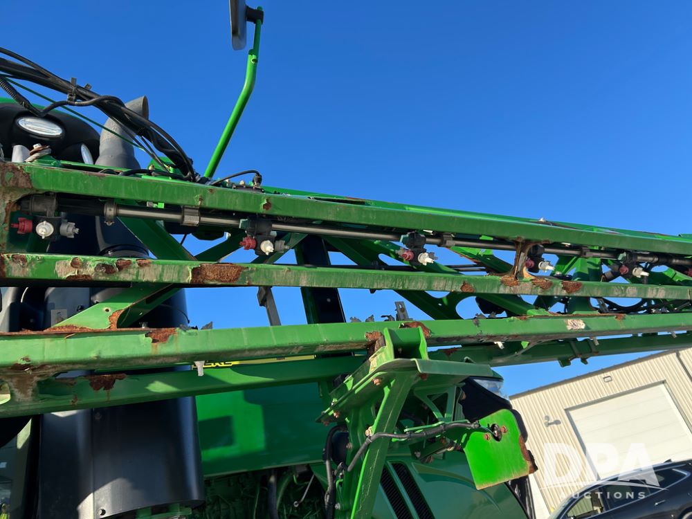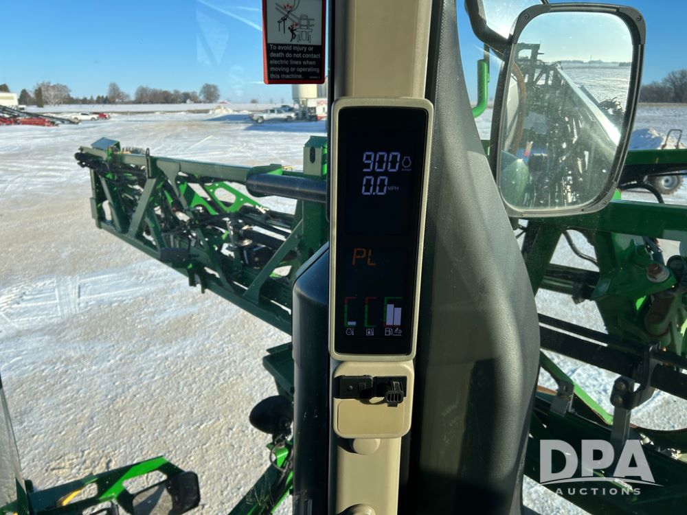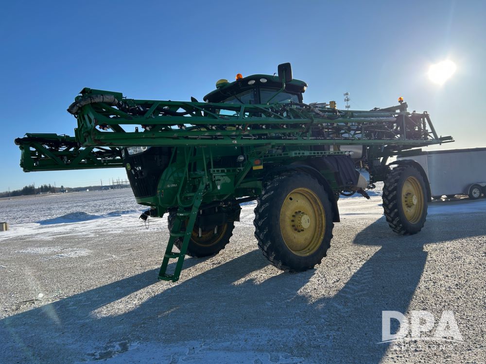 2018 John Deere R4038 Sprayer (CP1550 Unit 106235), John Deere diesel engine, hydrostatic drive, 1,000 gallon stainless steel liquid system, 120' boom, 5 way nozzle bodies, stainless steel chemical inductor, John Deere control, StarFire 6000 receiver, front load, AM/FM CD radio, cab heat/air conditioning, 380/90R46 row crop tires, full set fenders, shows 2,621 hours.