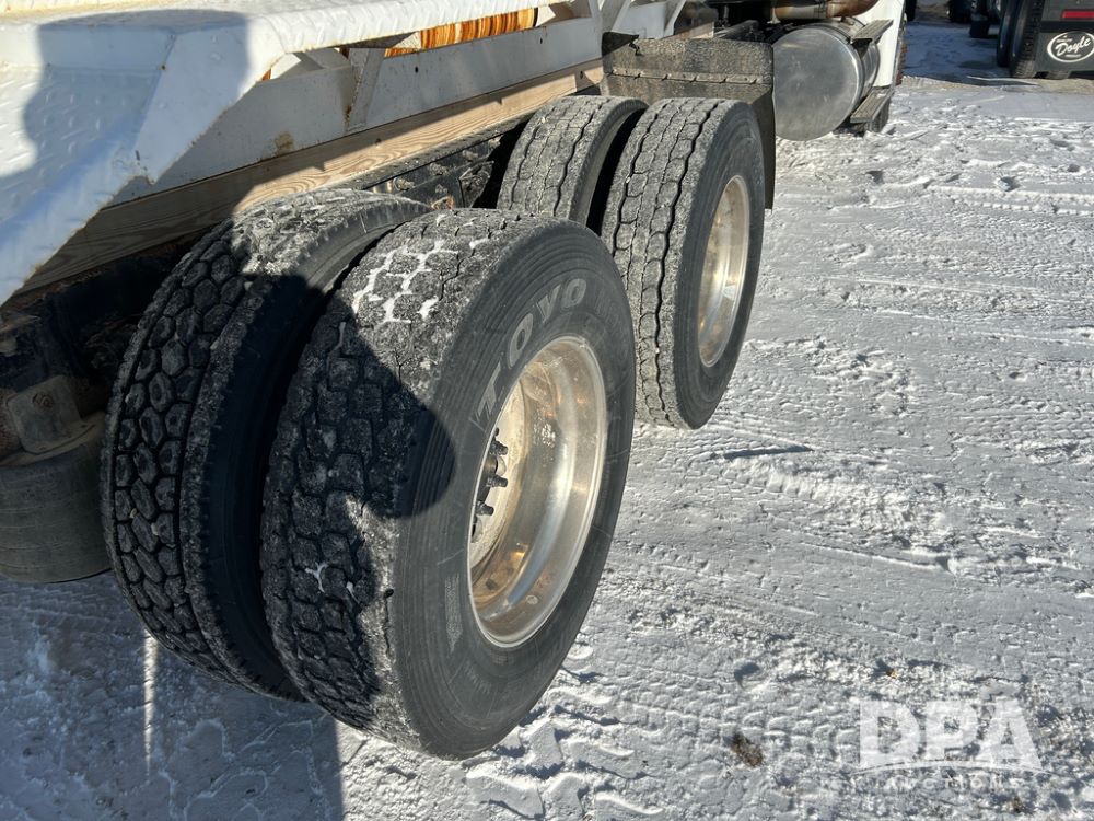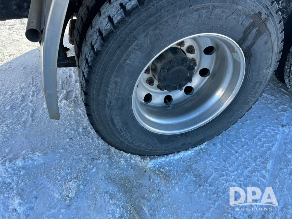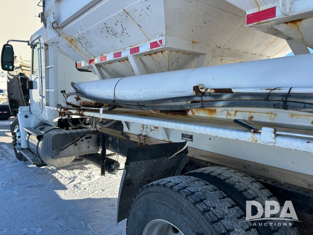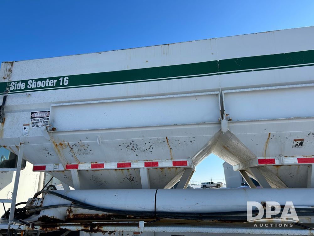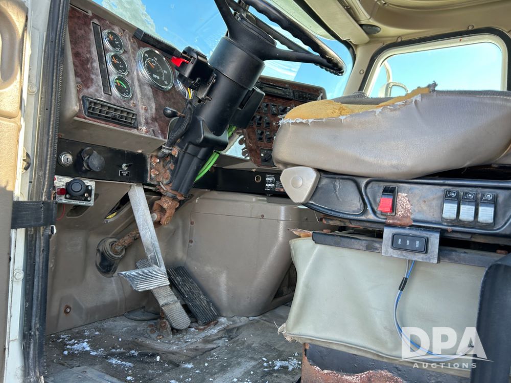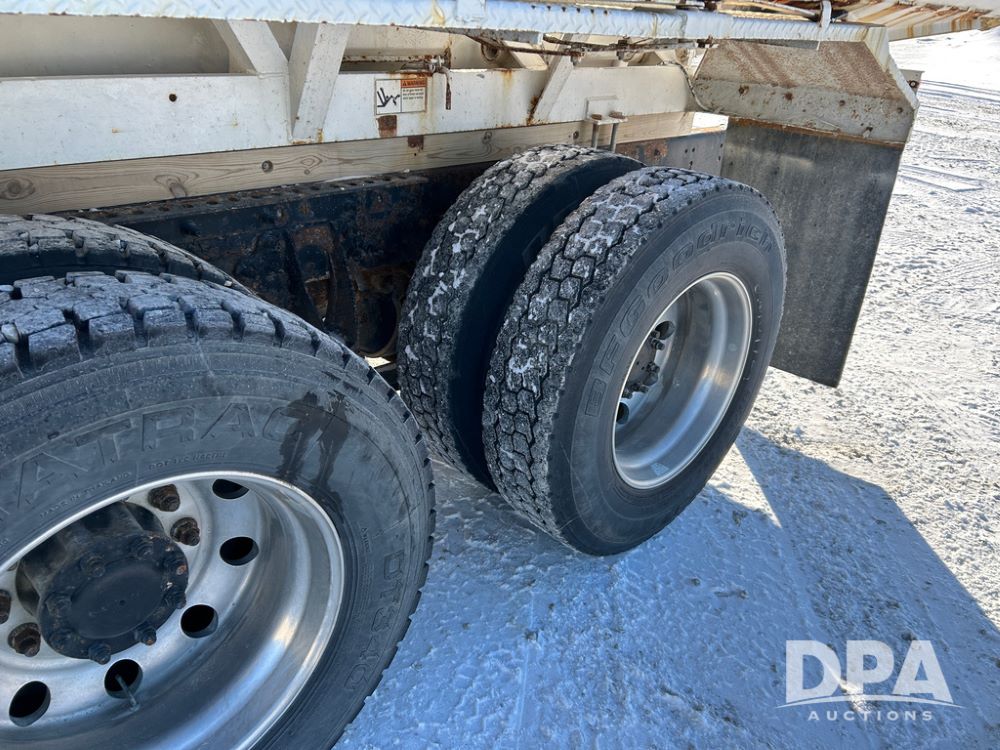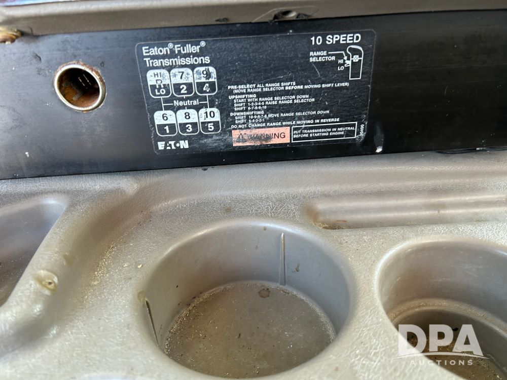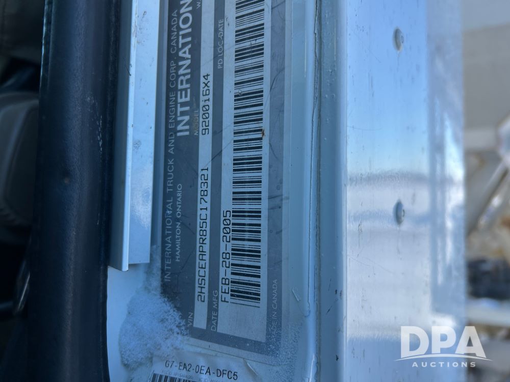 2007 International 9200i Dry Truck (CP1554 Unit 29128), Cummins diesel engine, 10 speed transmission, tandem axle full screw, air ride suspension, Willmar 1600 stainless steel hydraulic dry tender box, side discharge auger, electric roll tarp, engine brake, cruise control, dual polished aluminum fuel tanks, 22.5 tires, aluminum wheels.