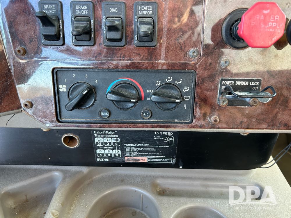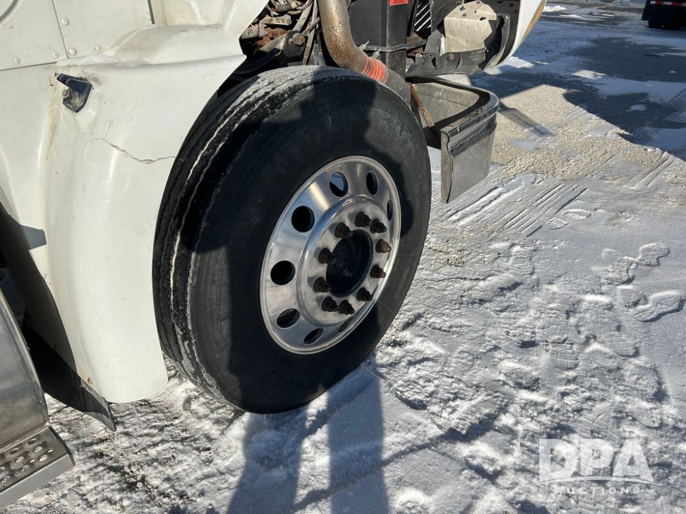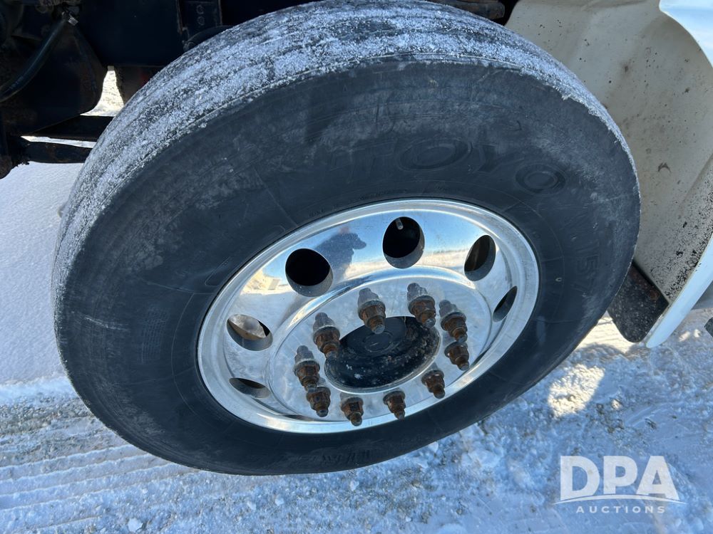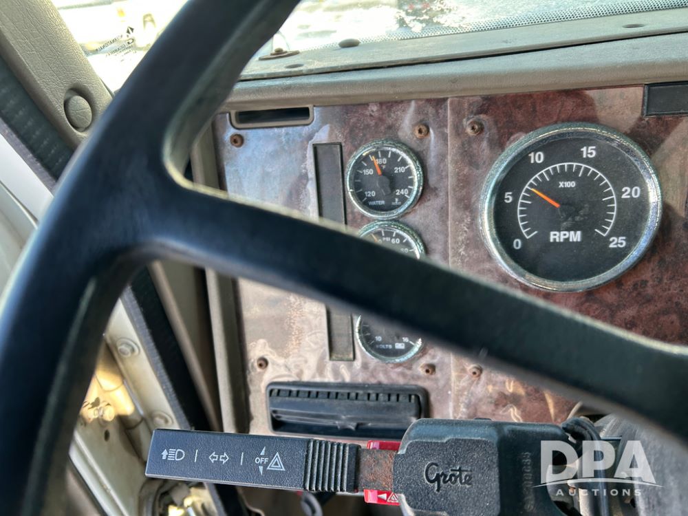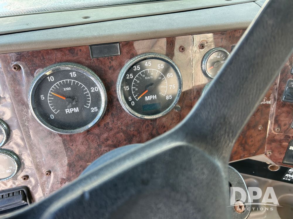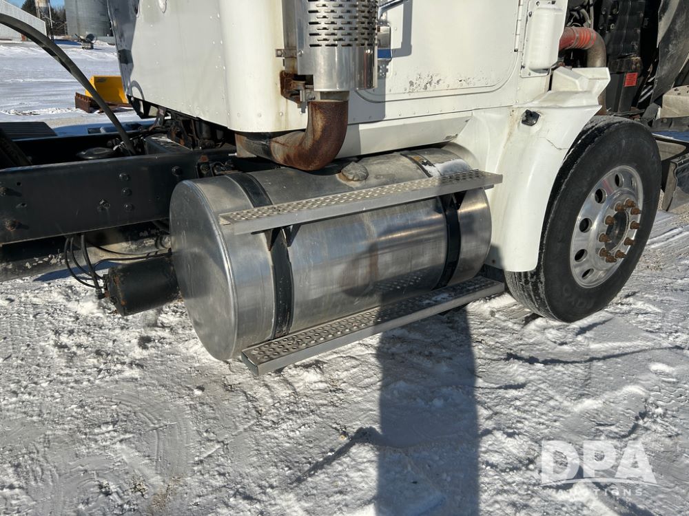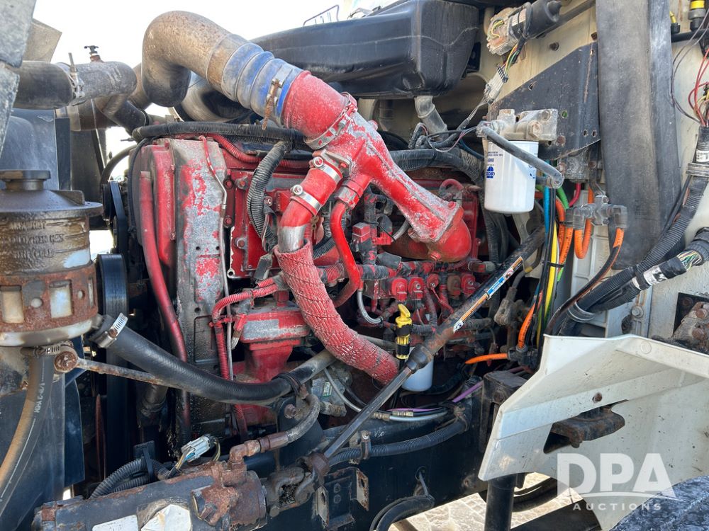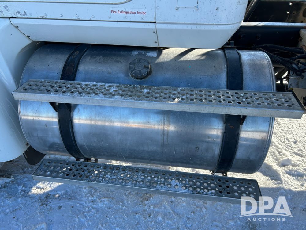 2007 International 9200i Dry Truck (CP1554 Unit 29128), Cummins diesel engine, 10 speed transmission, tandem axle full screw, air ride suspension, Willmar 1600 stainless steel hydraulic dry tender box, side discharge auger, electric roll tarp, engine brake, cruise control, dual polished aluminum fuel tanks, 22.5 tires, aluminum wheels.