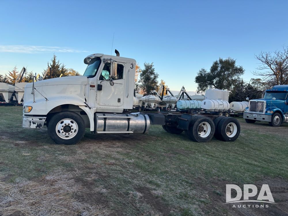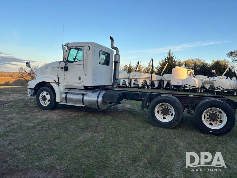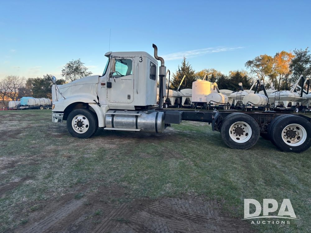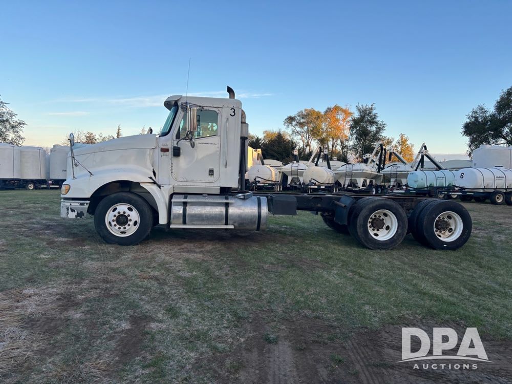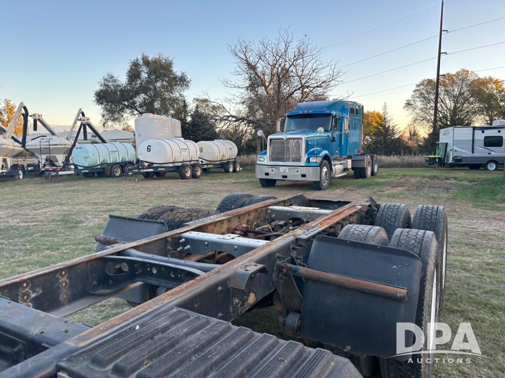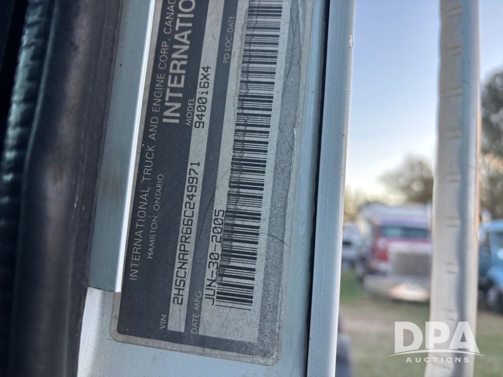 2006 International 9400i Truck (DR12661 Unit 00443), cab/chassis truck, Cummins ISX diesel engine, 13 speed transmission, tandem axle full screw, air ride suspension, dual aluminum fuel tanks, 214'' WB, engine brake, cruise control, power/heated mirrors, 22.5 tires, odometer reads 822,101 miles.