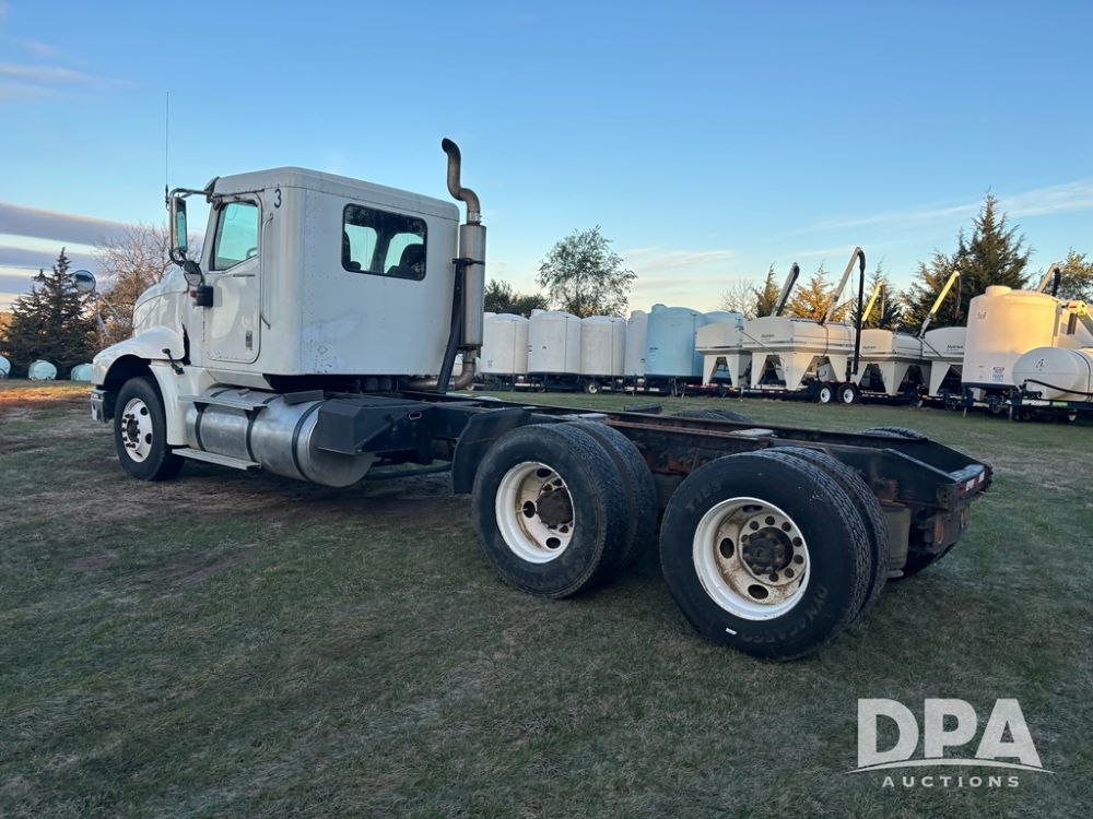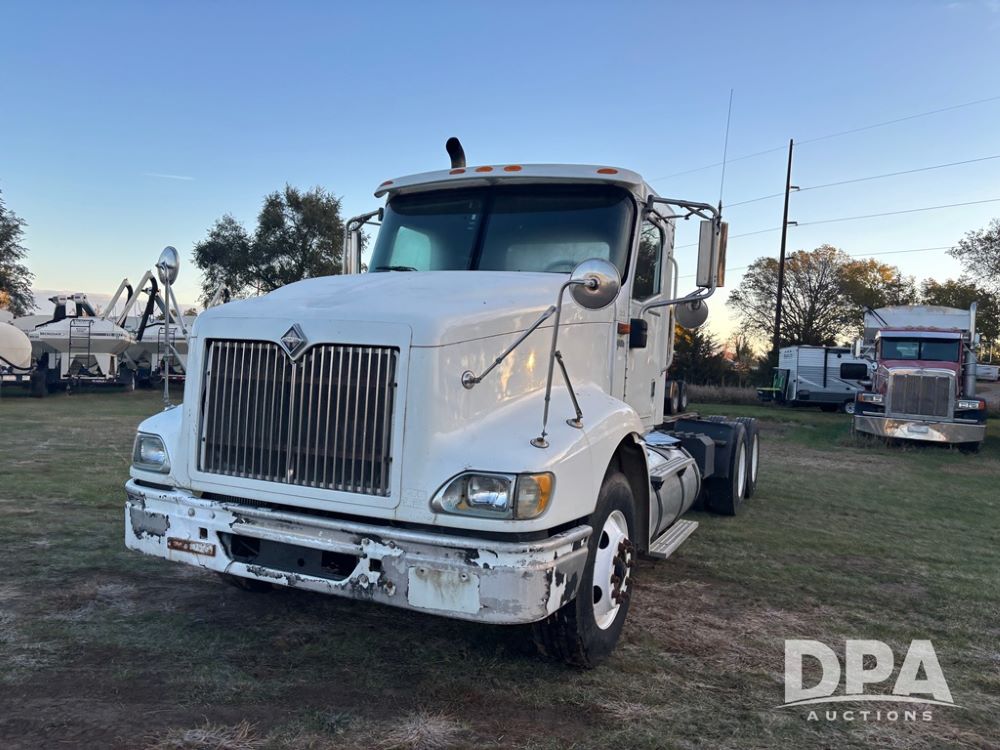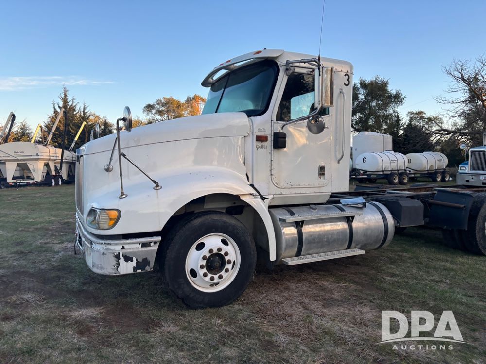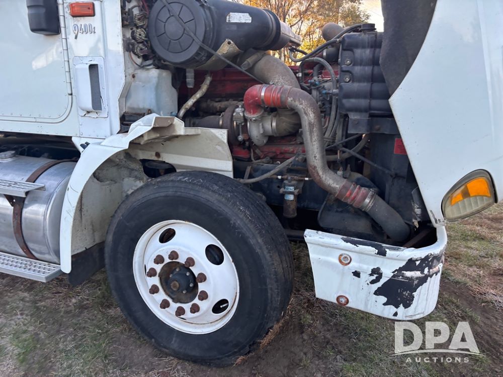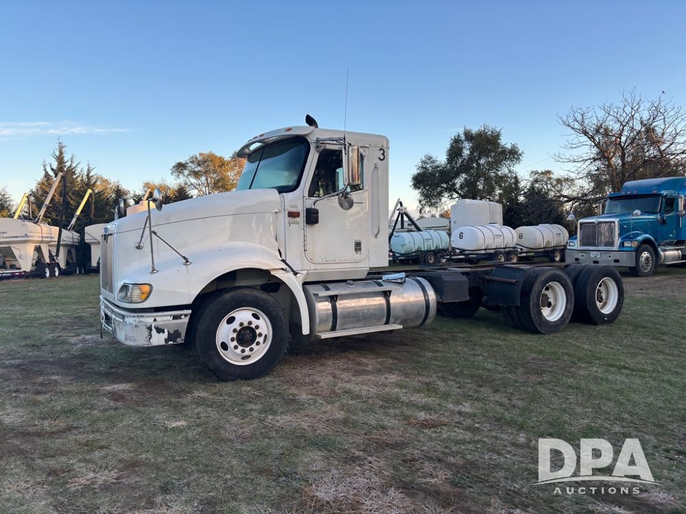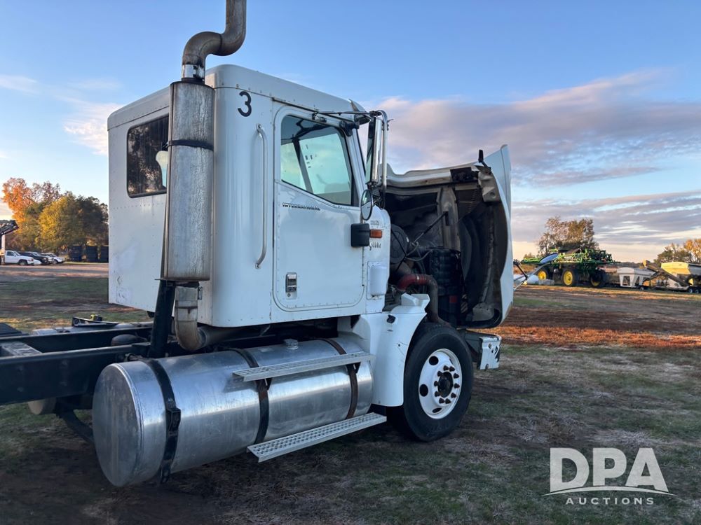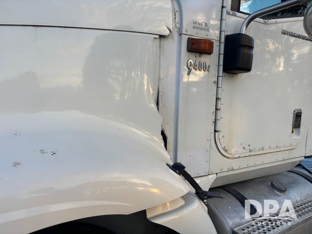 2006 International 9400i Truck (DR12661 Unit 00443), cab/chassis truck, Cummins ISX diesel engine, 13 speed transmission, tandem axle full screw, air ride suspension, dual aluminum fuel tanks, 214'' WB, engine brake, cruise control, power/heated mirrors, 22.5 tires, odometer reads 822,101 miles.
