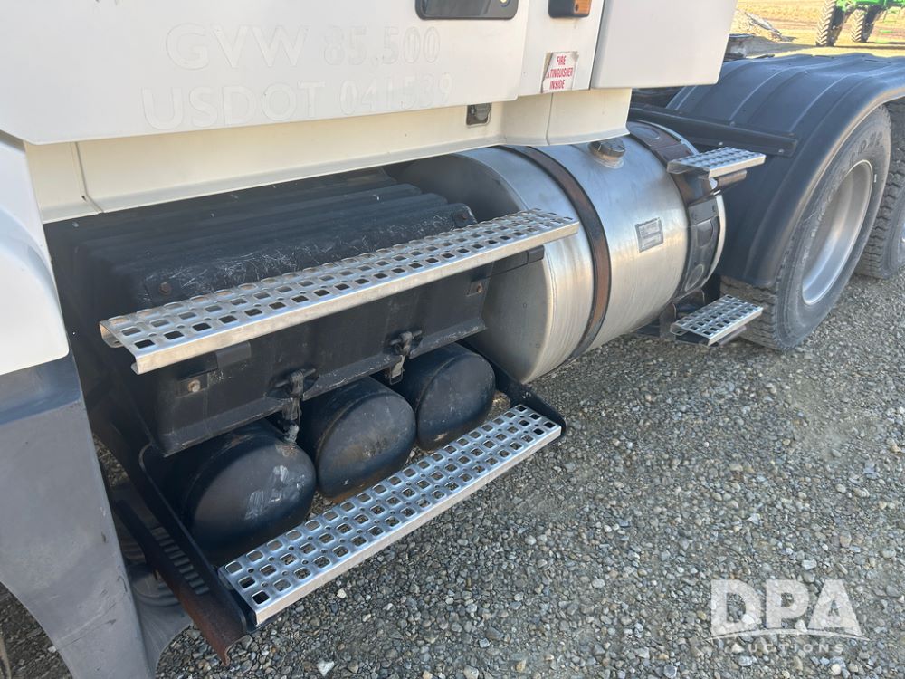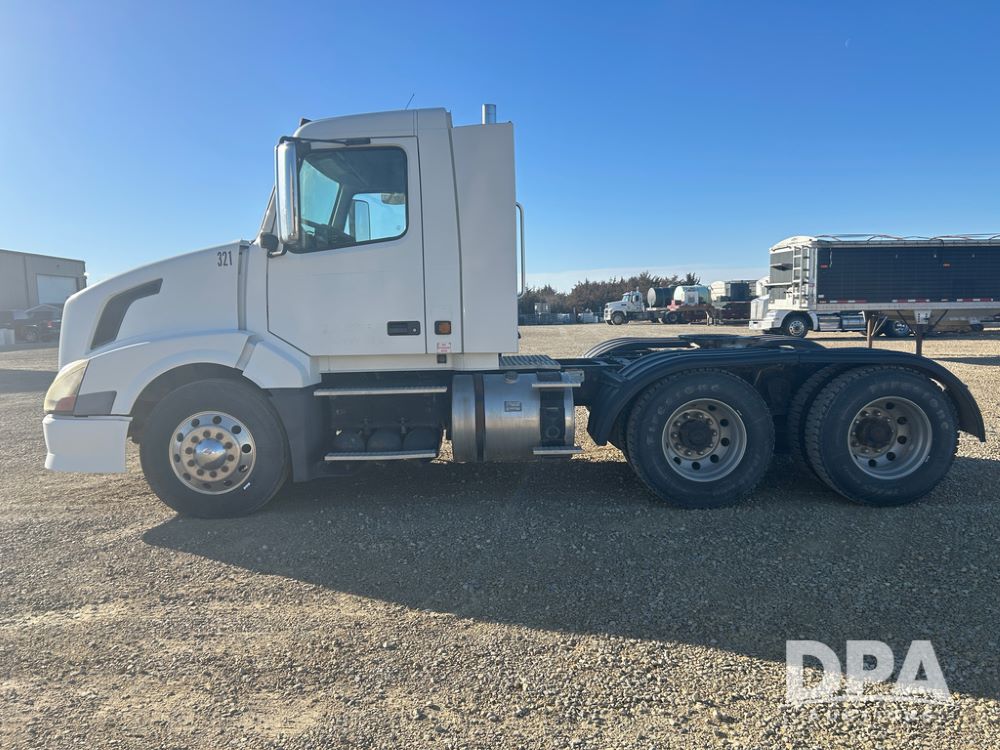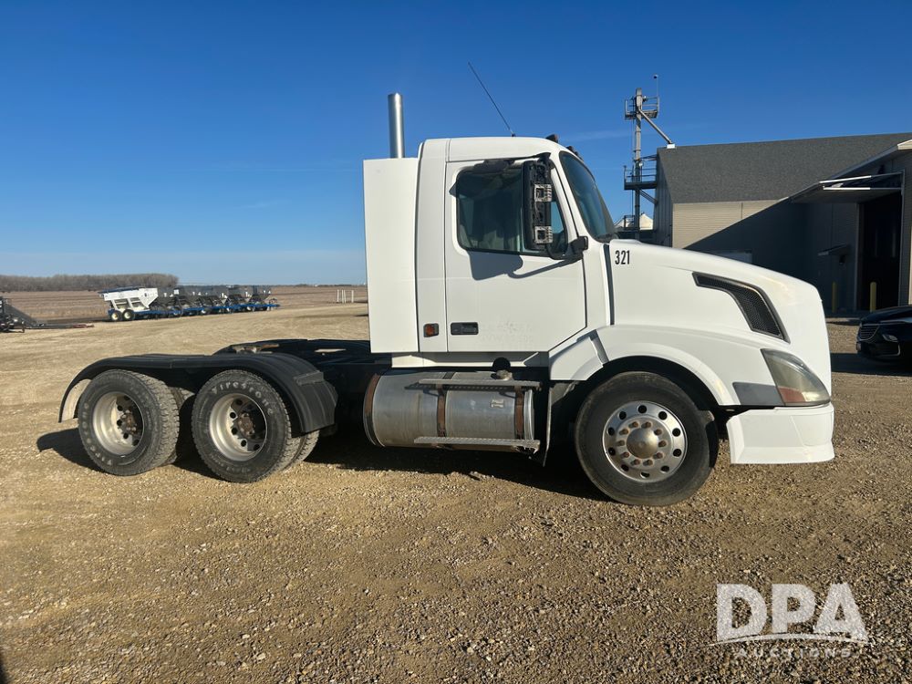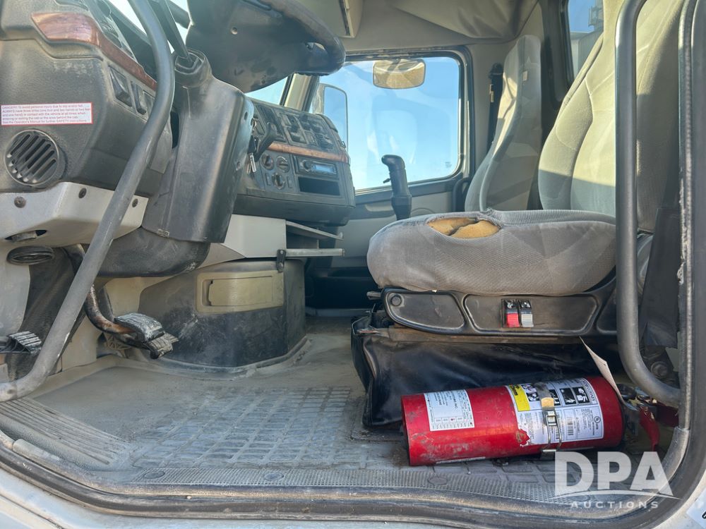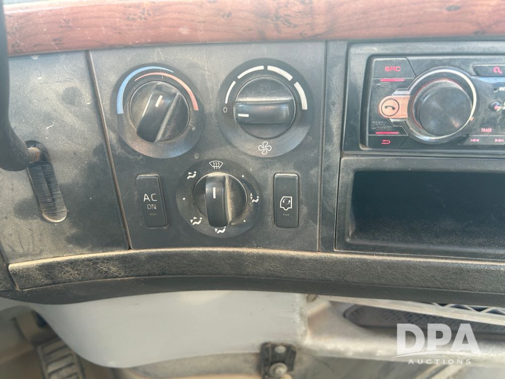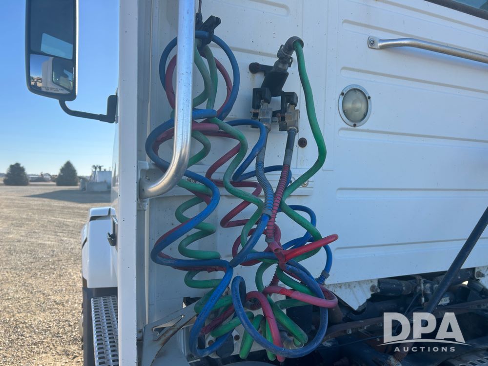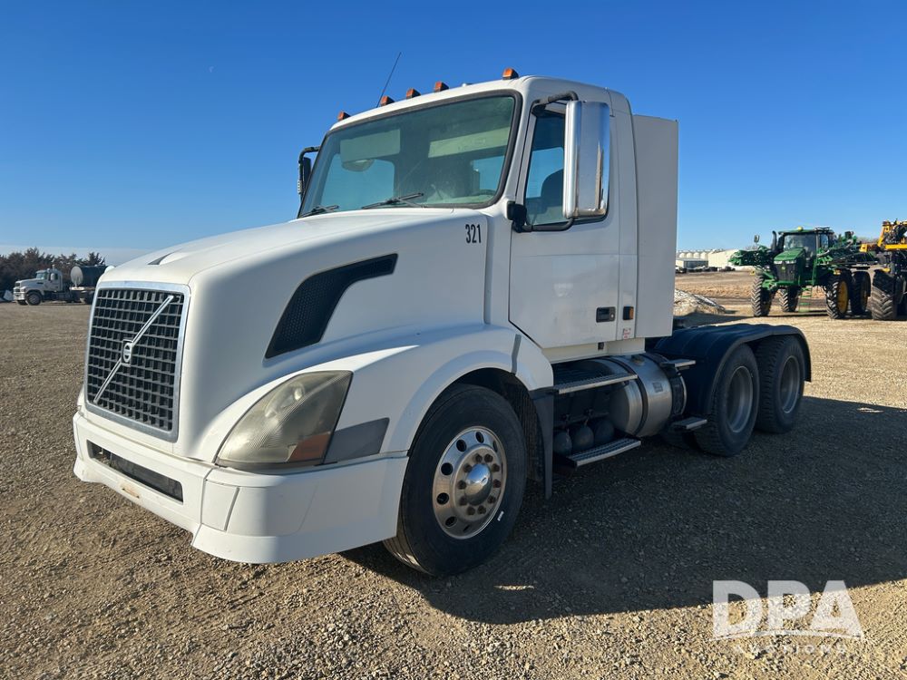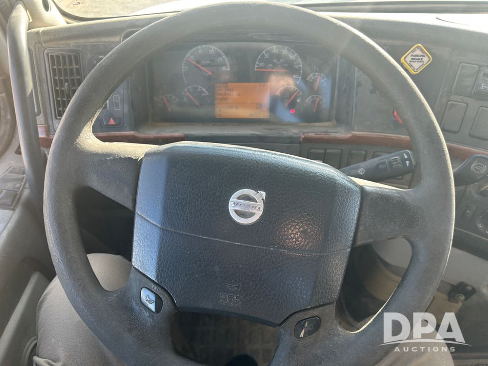 2004 Volvo Truck (CP1600 Unit 321), ISX diesel engine, 10 speed transmission, tandem axle full screw, 168'' WB, air ride suspension, air slide 5th wheel plate, Minimizer full fenders, dual aluminum fuel tanks, engine brake, air dump valve, cab heat/air conditioning, 22.5 tires, aluminum wheels, odometer reads 487,321 miles.