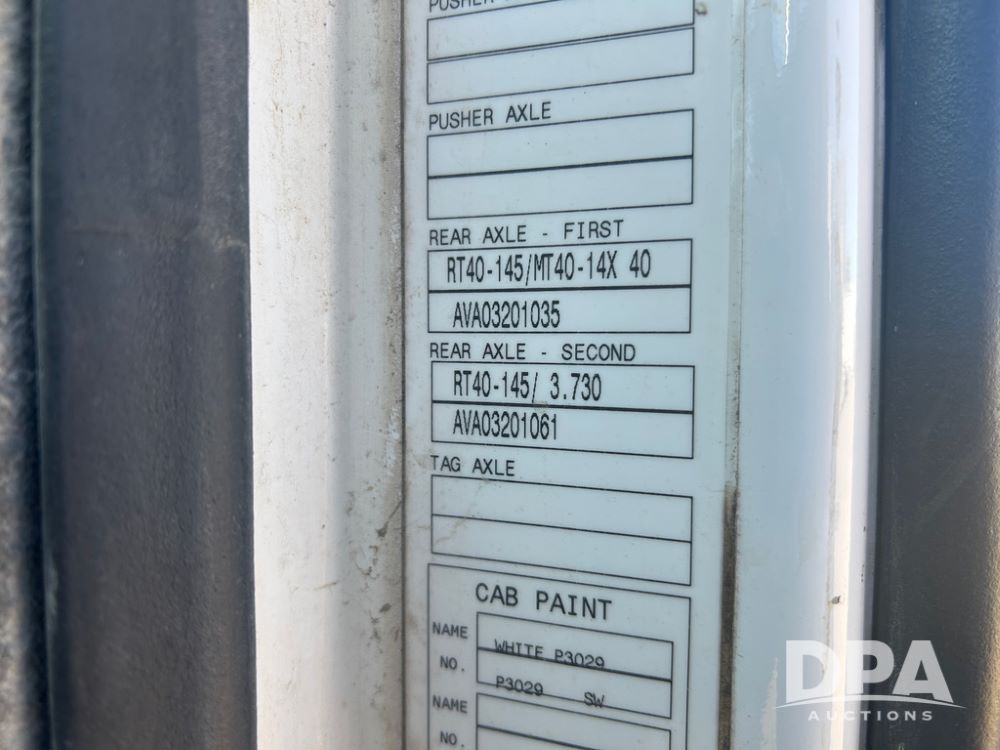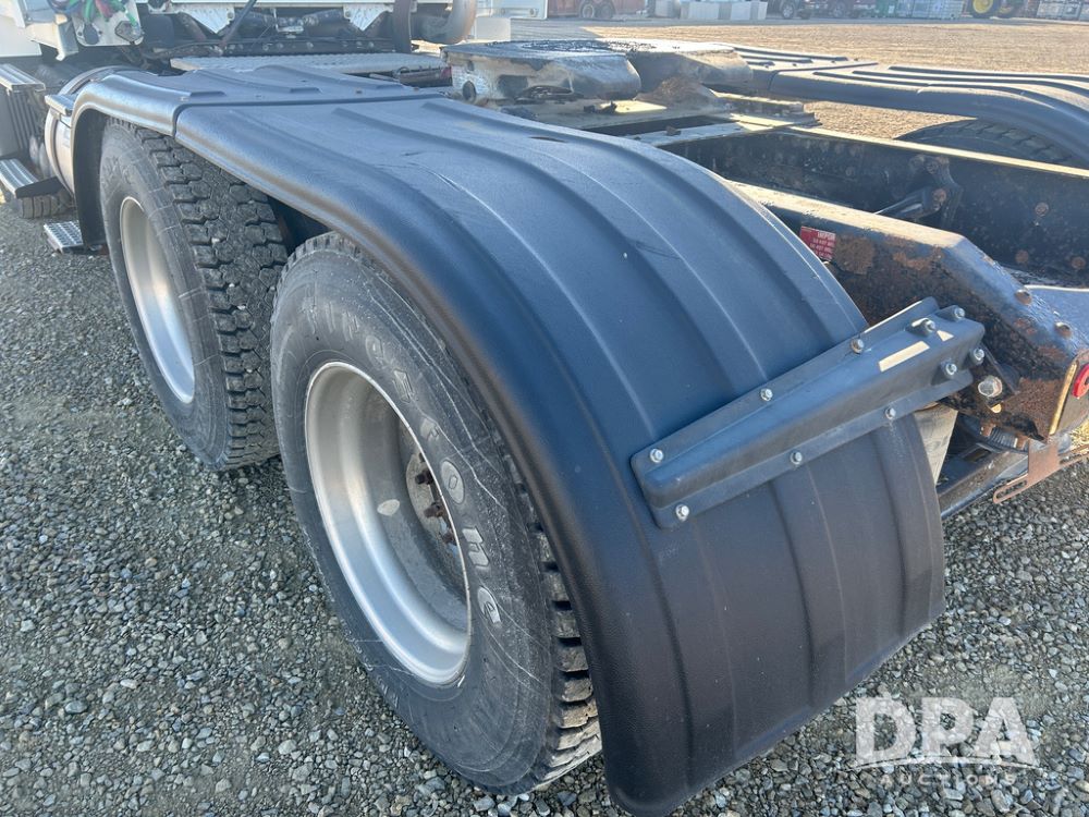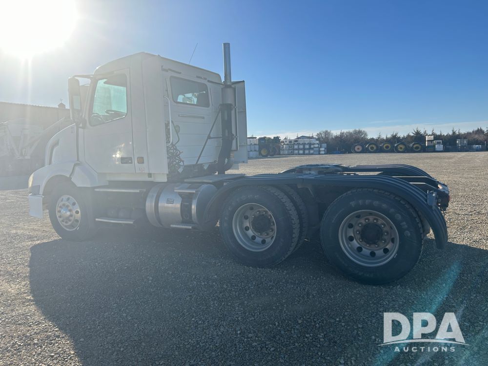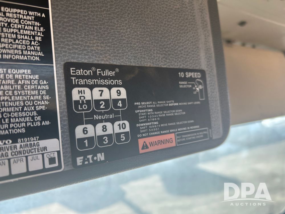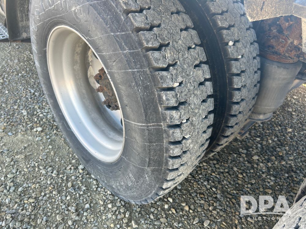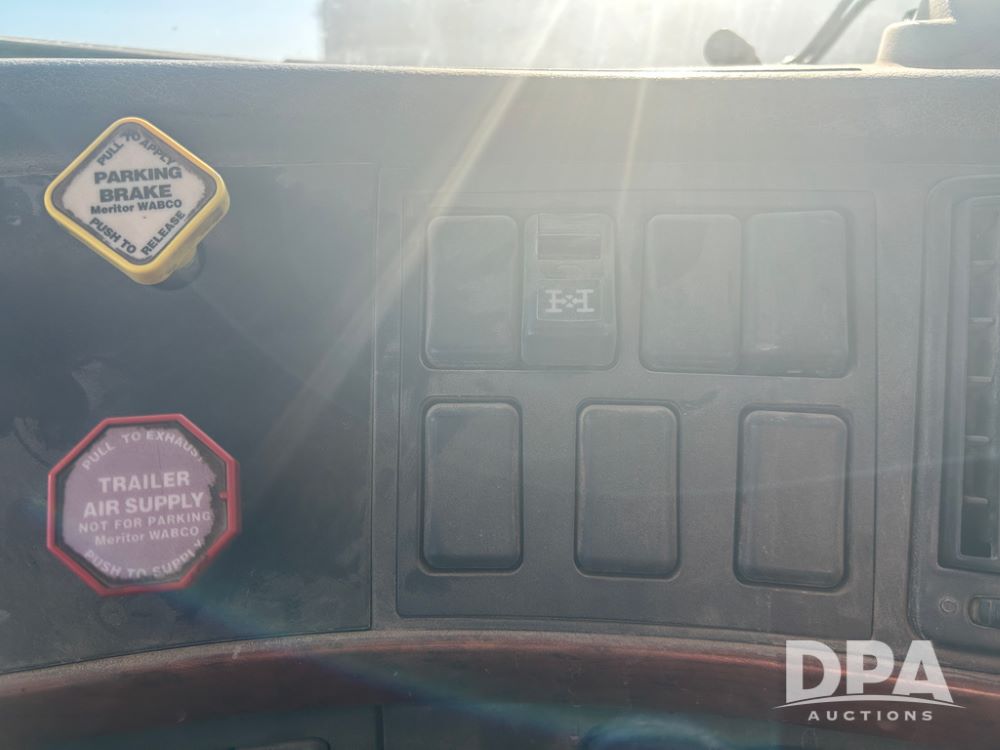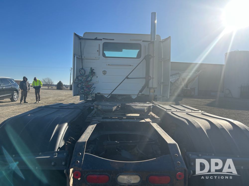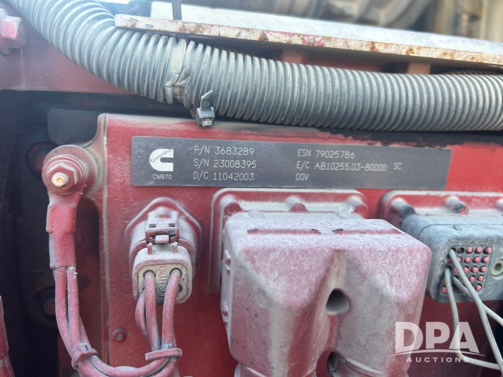 2004 Volvo Truck (CP1600 Unit 321), ISX diesel engine, 10 speed transmission, tandem axle full screw, 168'' WB, air ride suspension, air slide 5th wheel plate, Minimizer full fenders, dual aluminum fuel tanks, engine brake, air dump valve, cab heat/air conditioning, 22.5 tires, aluminum wheels, odometer reads 487,321 miles.