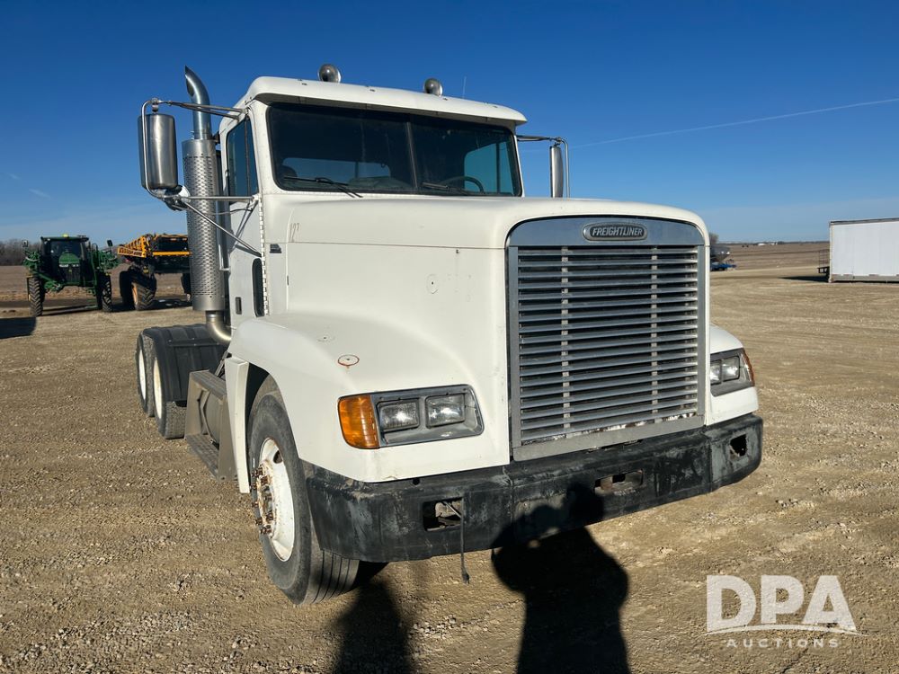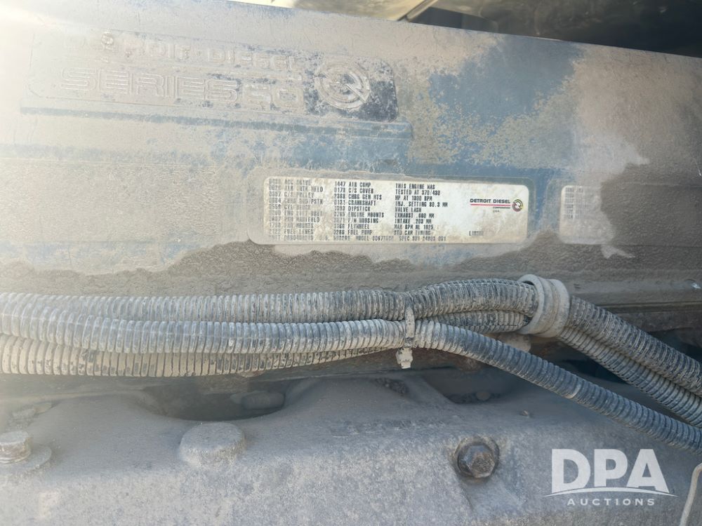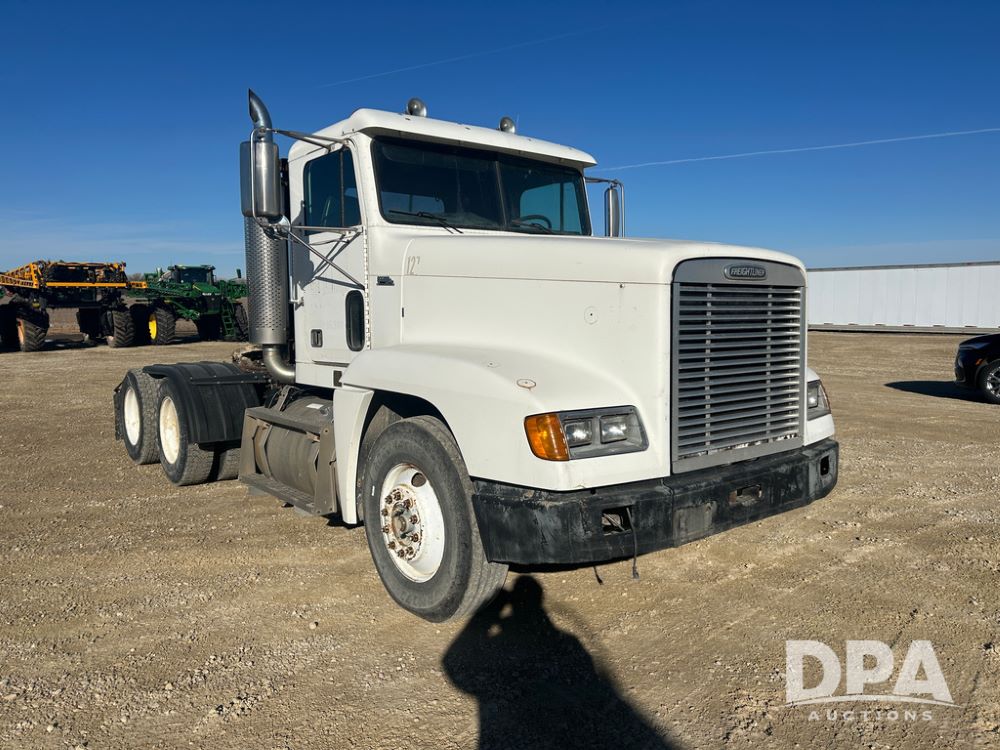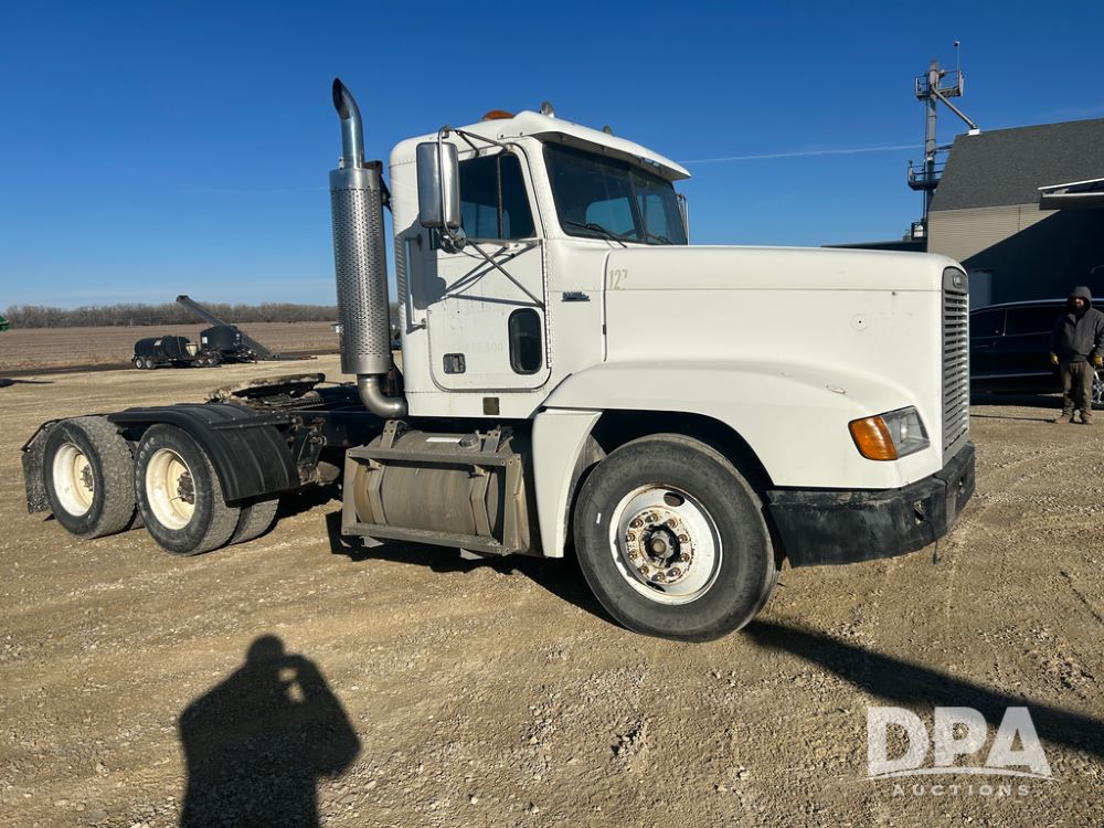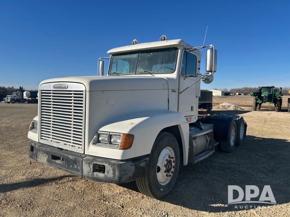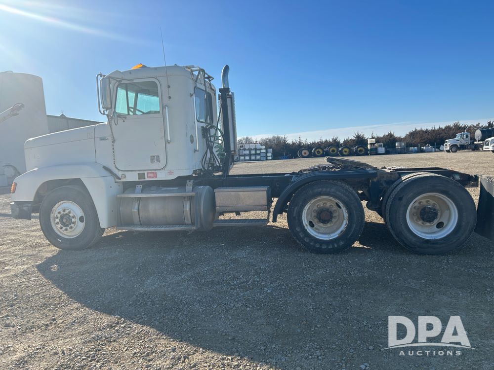 1999 Freightliner FLD Truck (CP1601), Detroit diesel engine, 10 speed transmission, tandem axle full screw, air ride suspension, 188'' WB, day cab, engine brake, air dump valve, cab heat/air conditioning, air slide 5th wheel plate, dual aluminum fuel tanks, Minimizer half fenders, 22.5 tires, odometer reads 734,701 miles.
