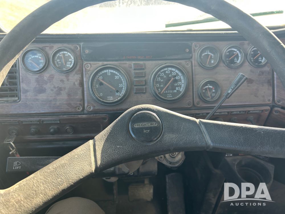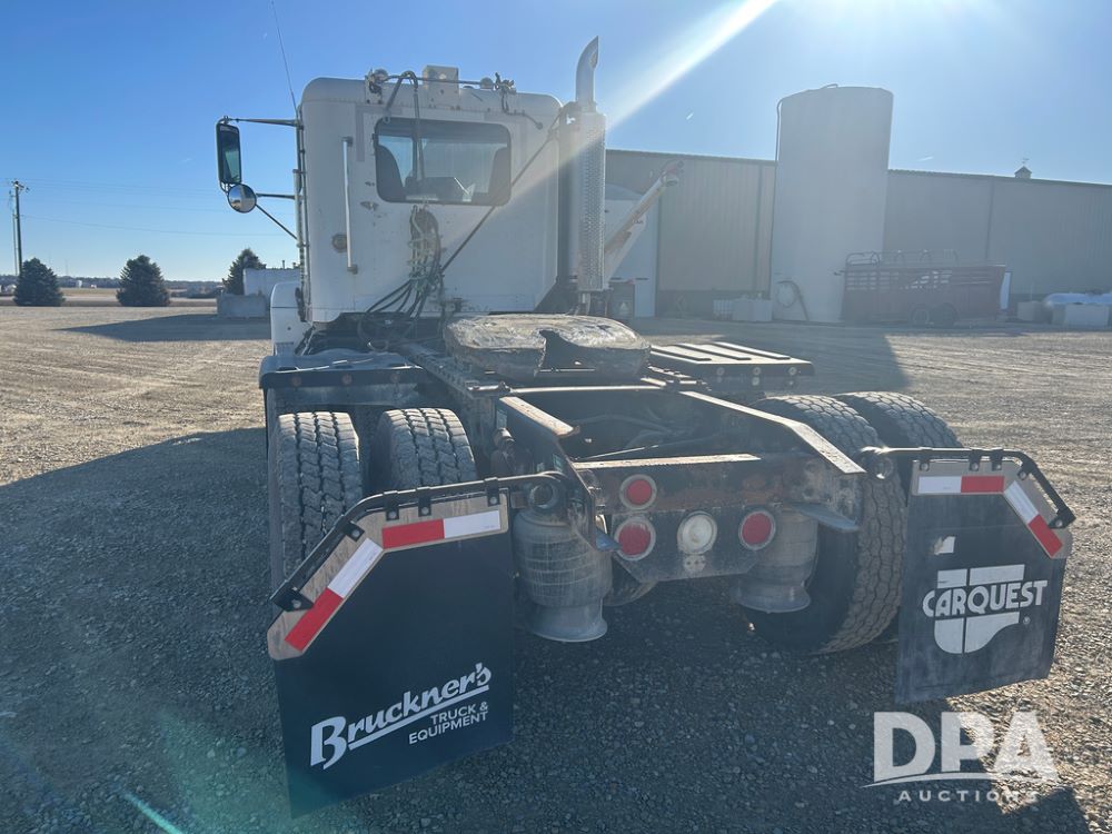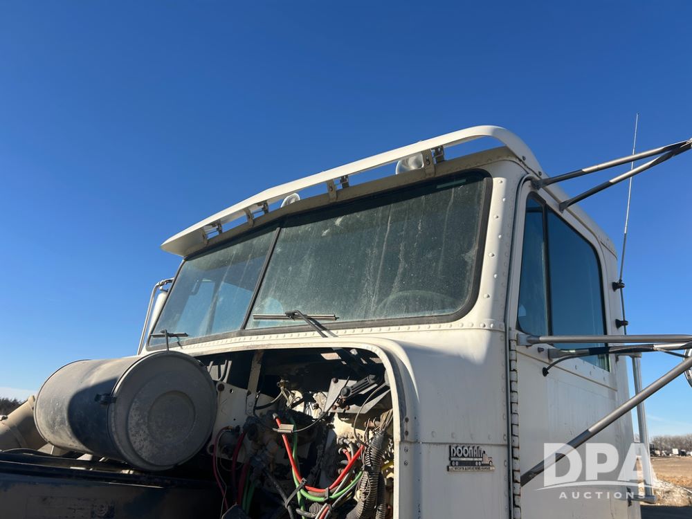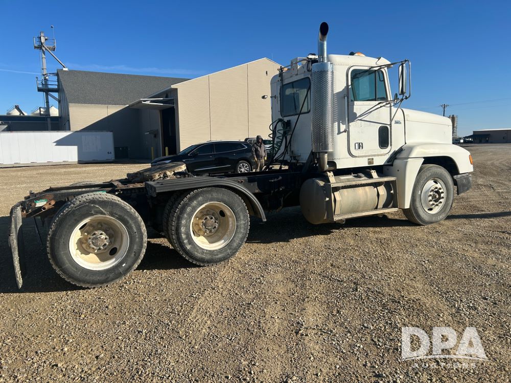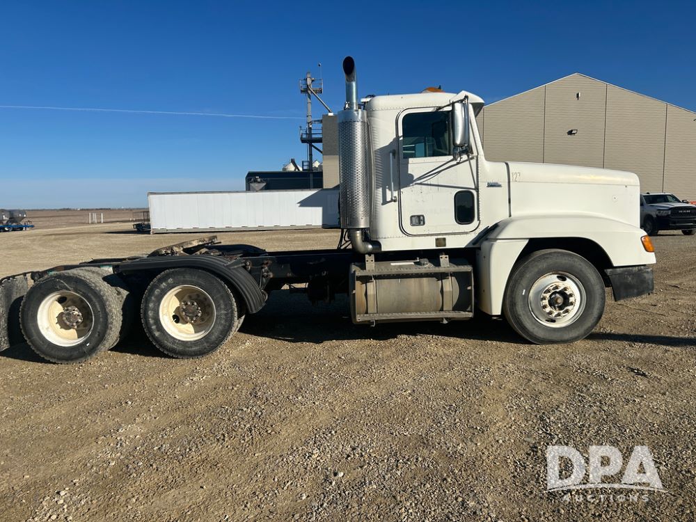 1999 Freightliner FLD Truck (CP1601), Detroit diesel engine, 10 speed transmission, tandem axle full screw, air ride suspension, 188'' WB, day cab, engine brake, air dump valve, cab heat/air conditioning, air slide 5th wheel plate, dual aluminum fuel tanks, Minimizer half fenders, 22.5 tires, odometer reads 734,701 miles.