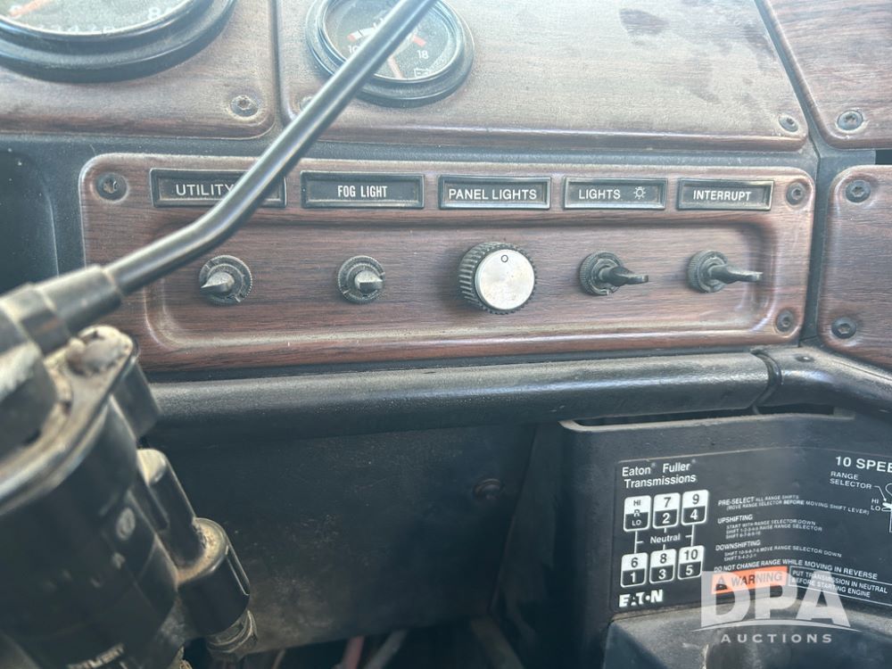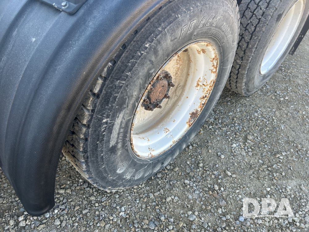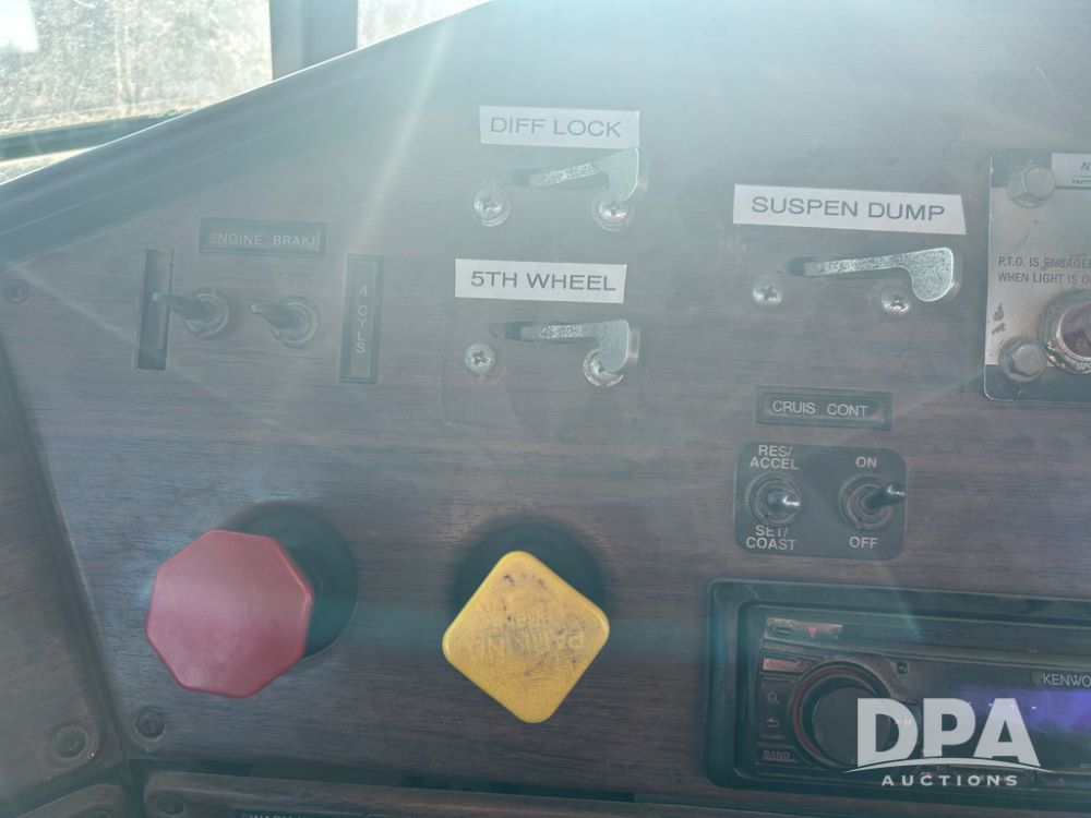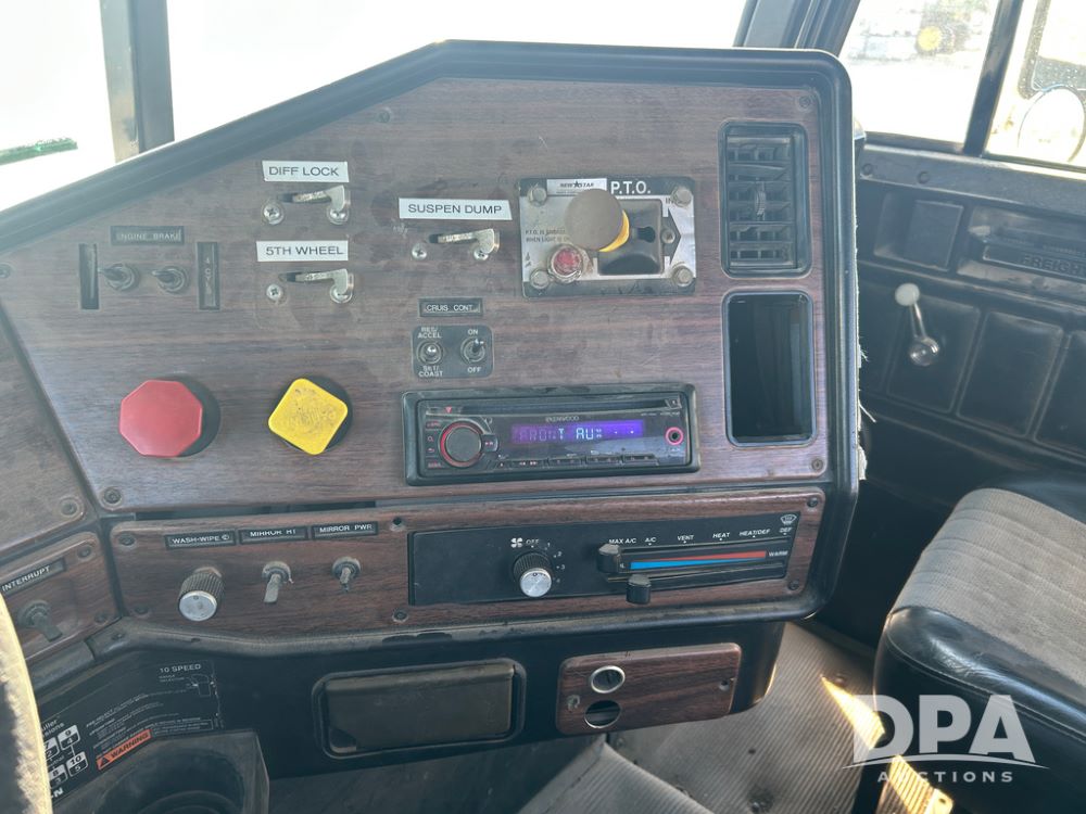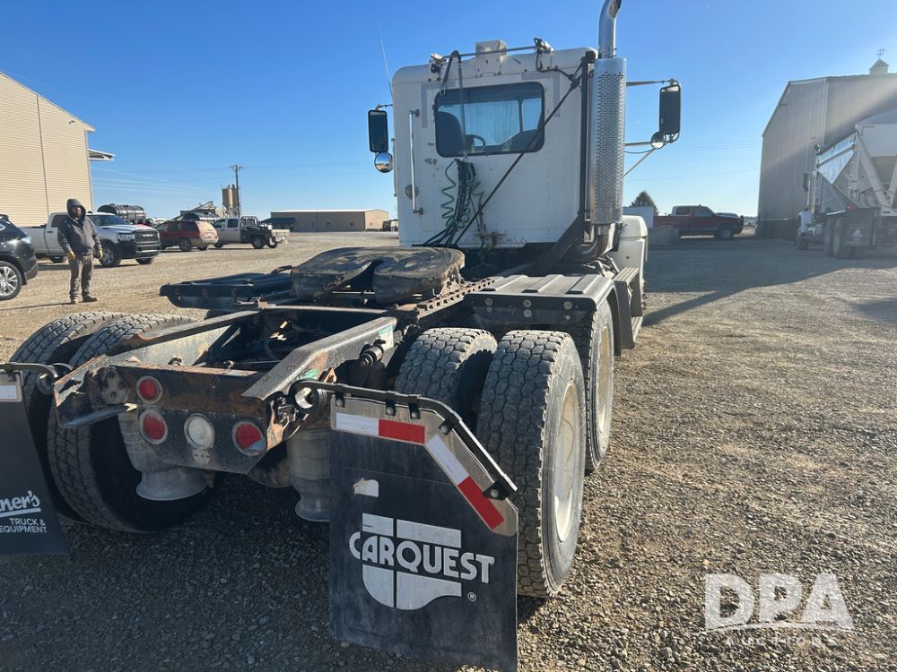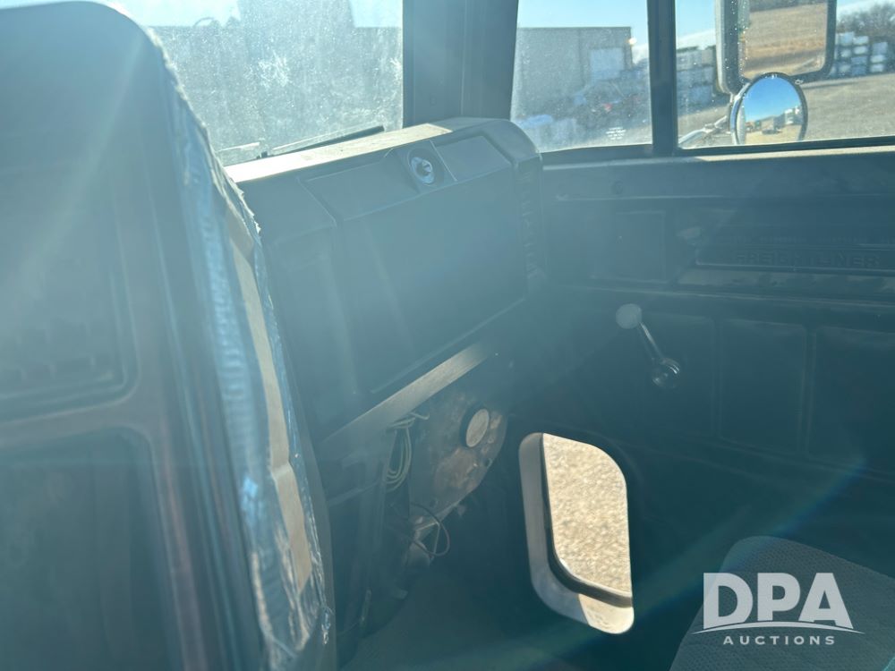1999 Freightliner FLD Truck (CP1601), Detroit diesel engine, 10 speed transmission, tandem axle full screw, air ride suspension, 188'' WB, day cab, engine brake, air dump valve, cab heat/air conditioning, air slide 5th wheel plate, dual aluminum fuel tanks, Minimizer half fenders, 22.5 tires, odometer reads 734,701 miles.