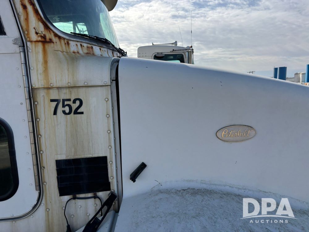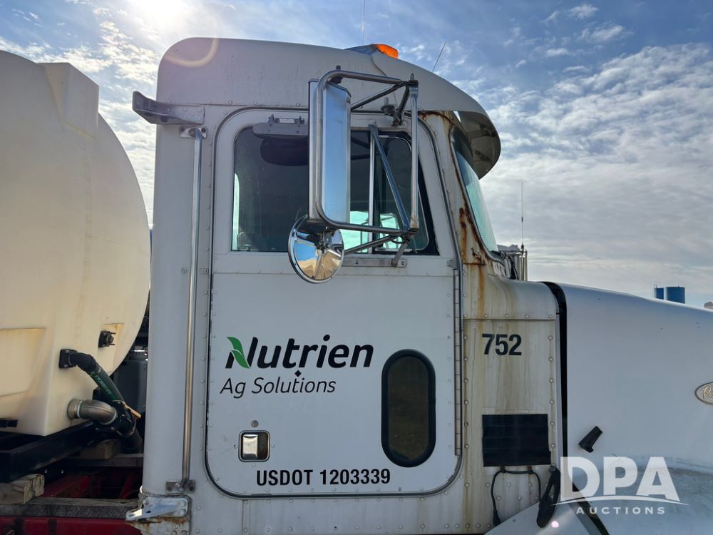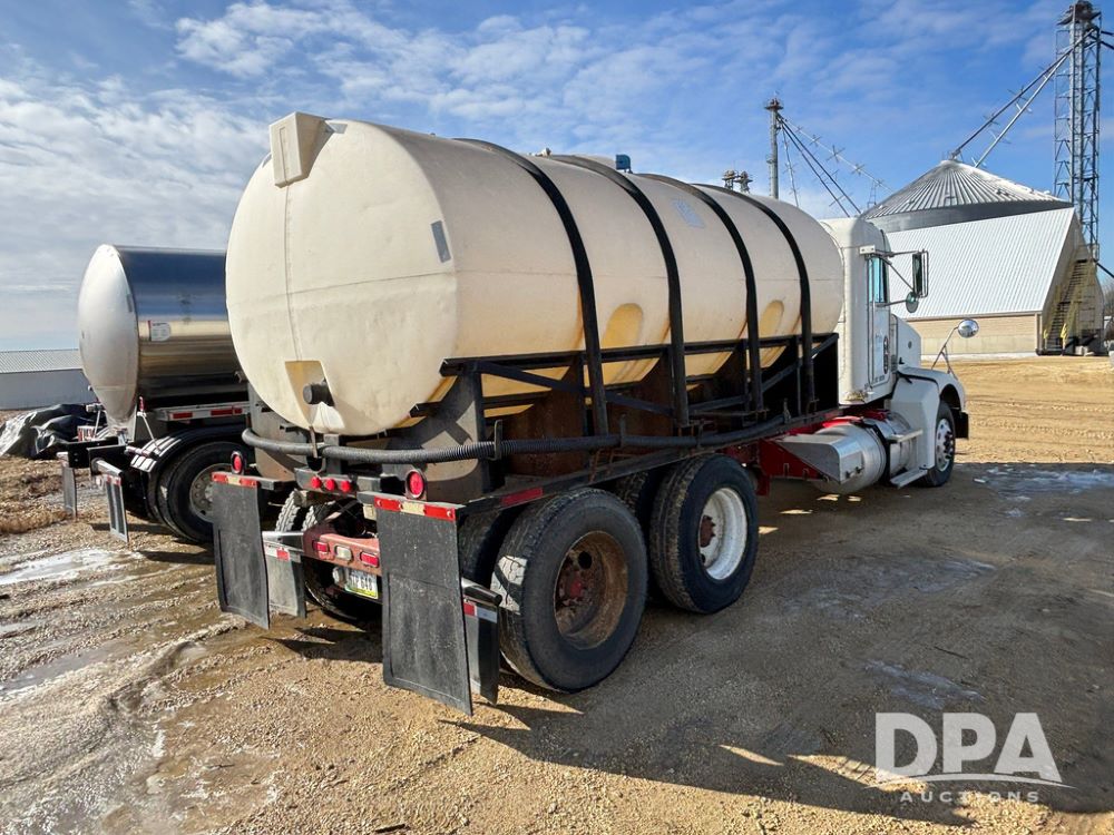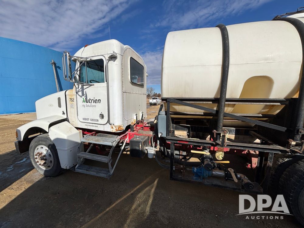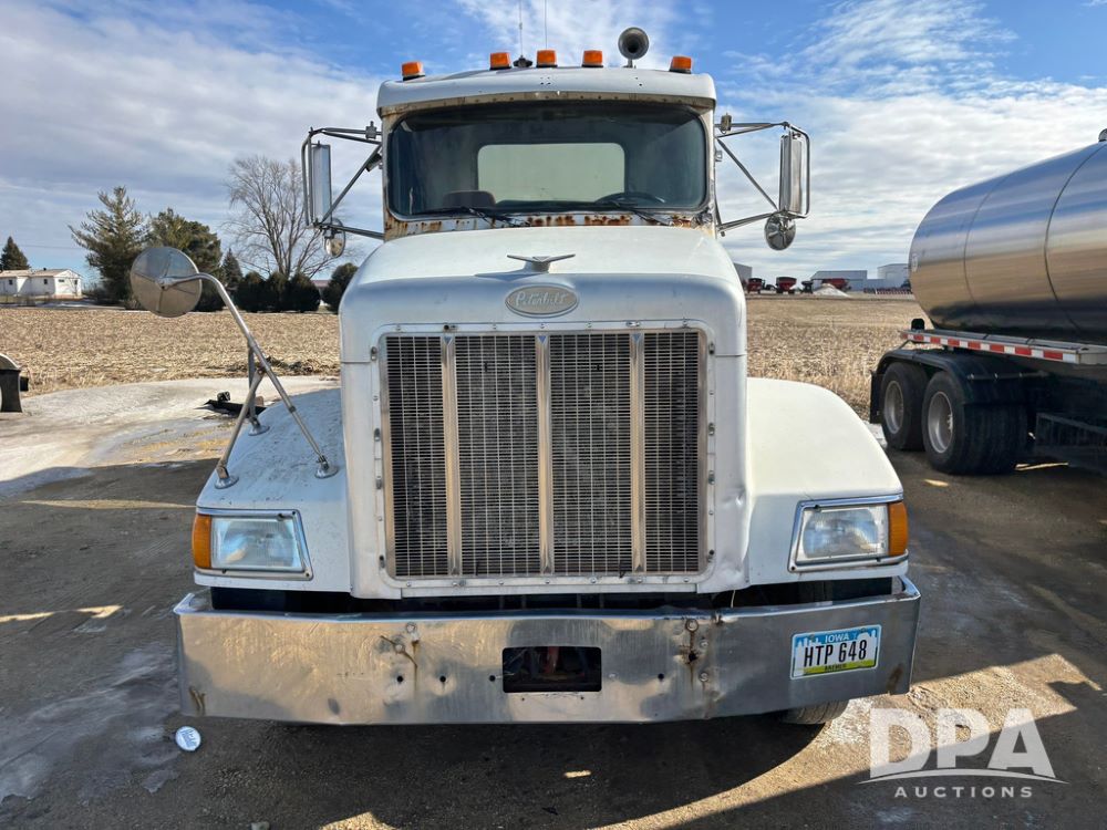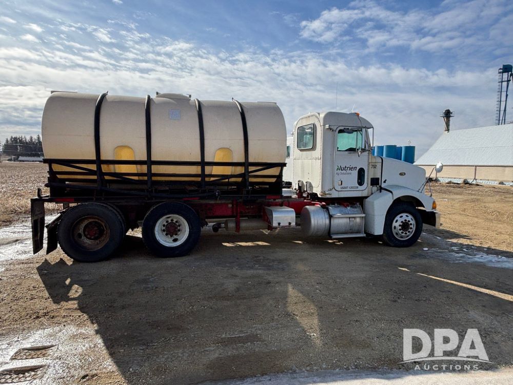 1998 Peterbilt 385 Liquid Nurse Truck (GP12781, Unit 108752), Cat diesel engine, Eaton Fuller Super 10 speed transmission, air conditioning, heat, Am/Fm radio, cruise control, engine brake, tandem axle, full screw, air ride suspension, 3200 gallon poly liquid nurse tank, hydraulic pump, 11R22.5 tires, aluminum front rims, shows 891,032 miles.