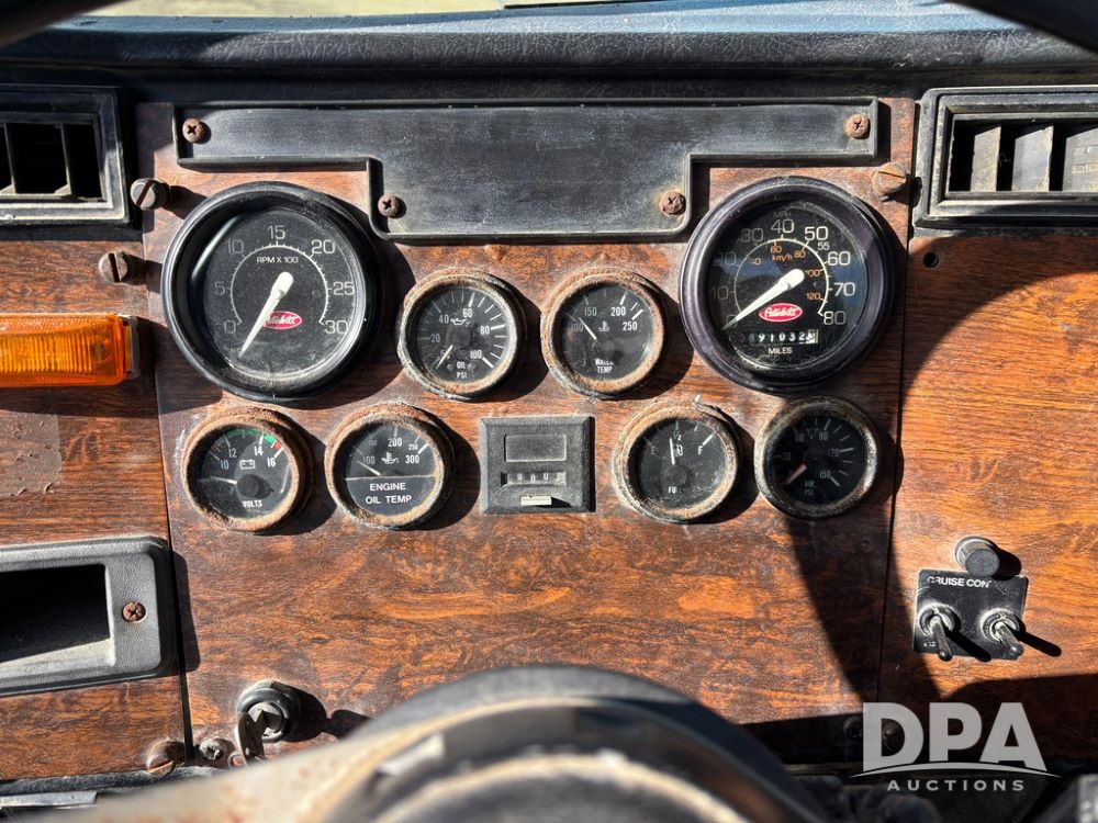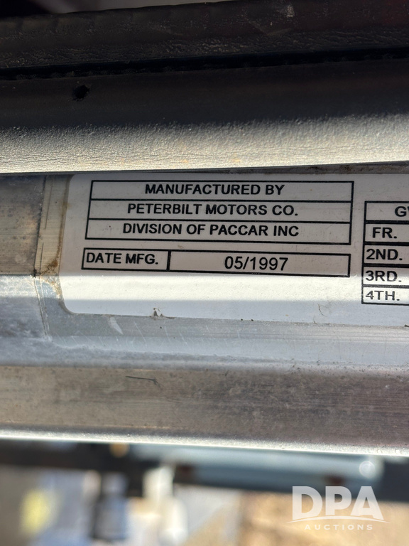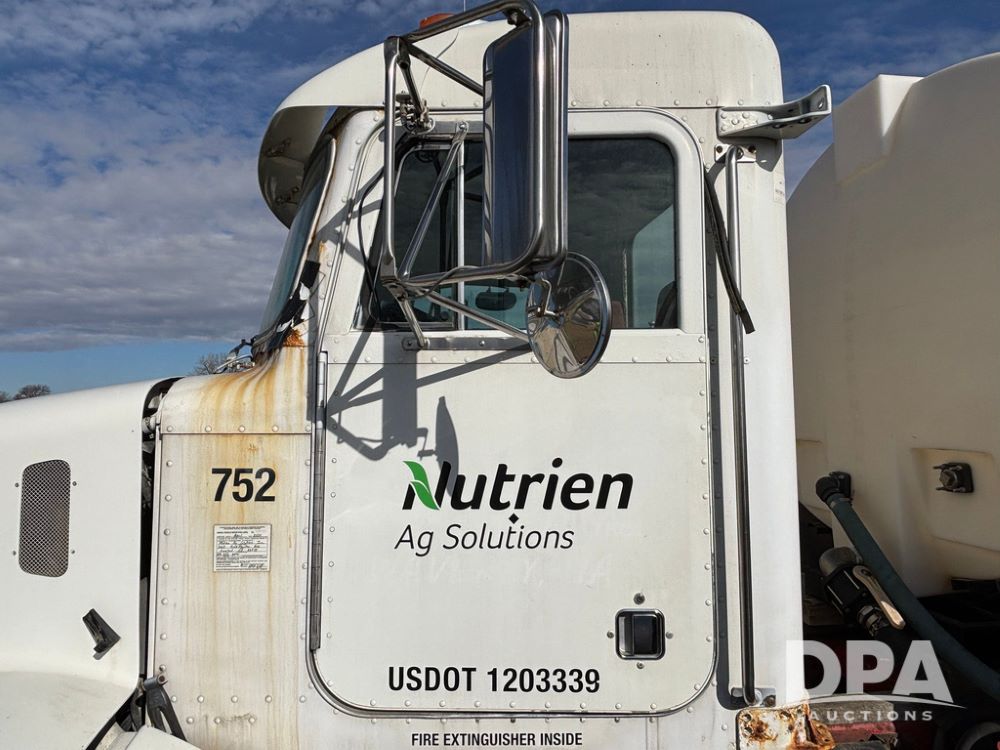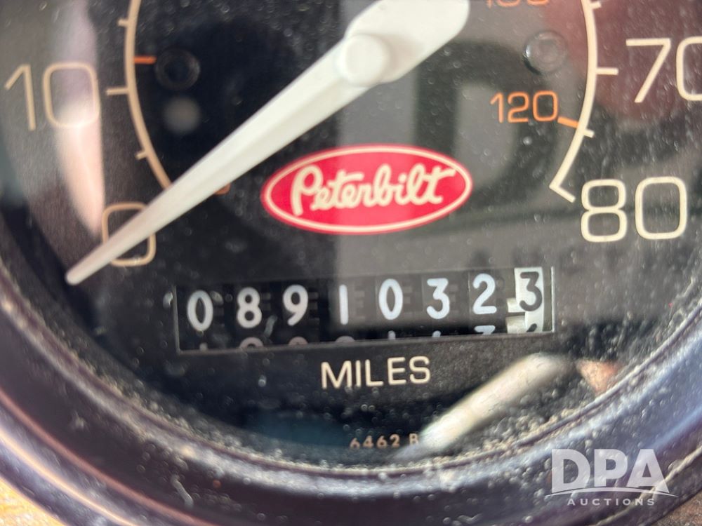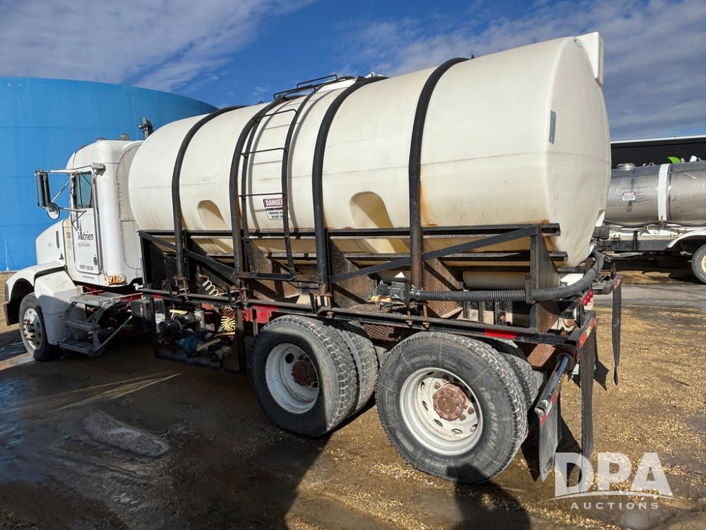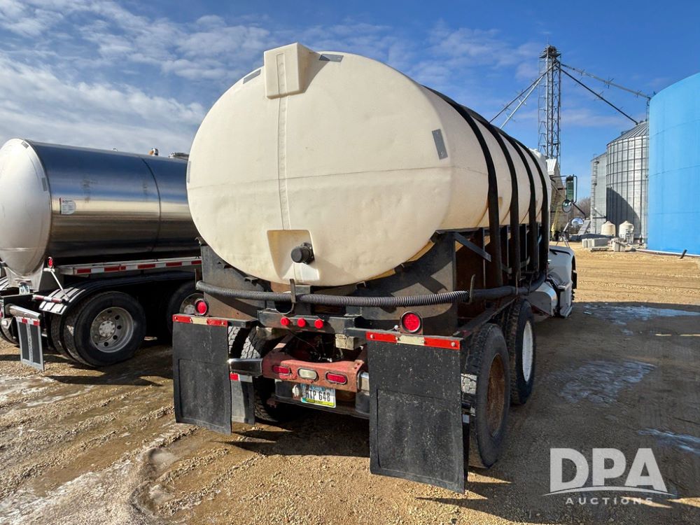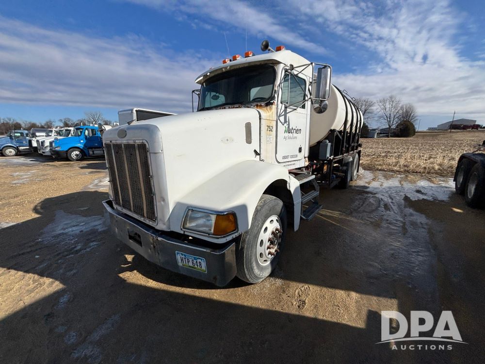1998 Peterbilt 385 Liquid Nurse Truck (GP12781, Unit 108752), Cat diesel engine, Eaton Fuller Super 10 speed transmission, air conditioning, heat, Am/Fm radio, cruise control, engine brake, tandem axle, full screw, air ride suspension, 3200 gallon poly liquid nurse tank, hydraulic pump, 11R22.5 tires, aluminum front rims, shows 891,032 miles.