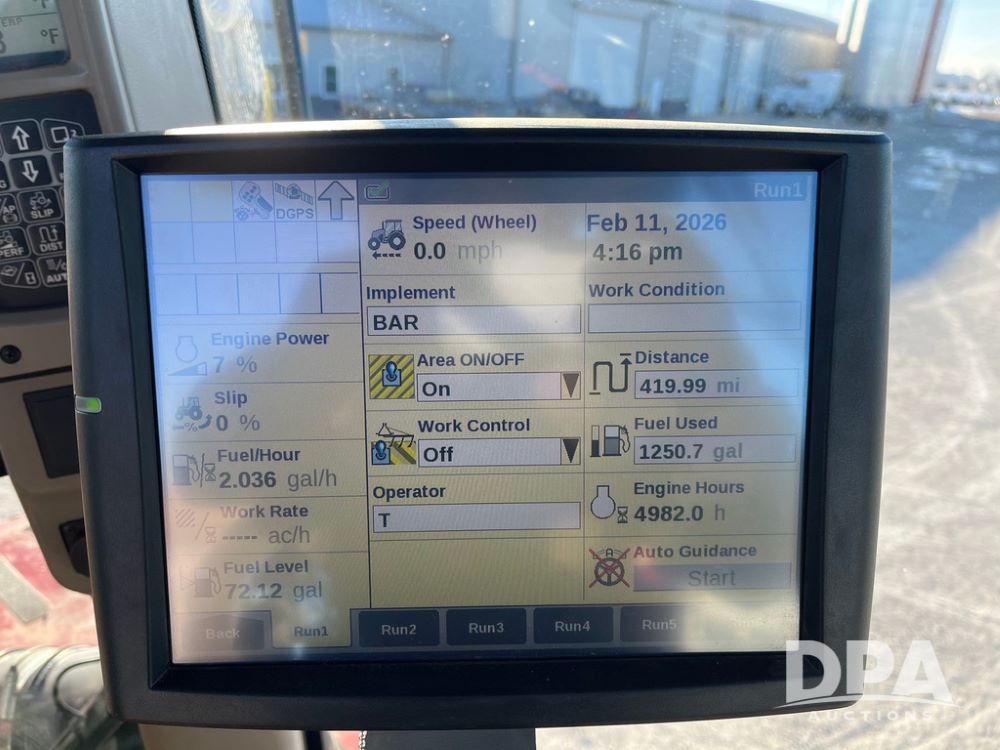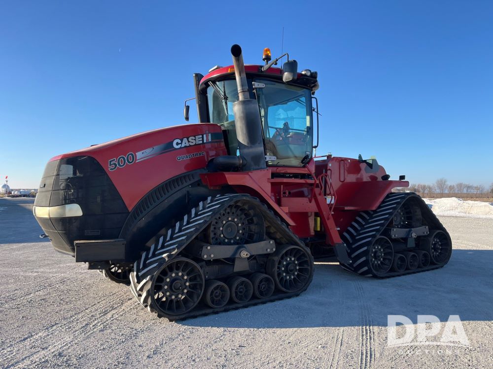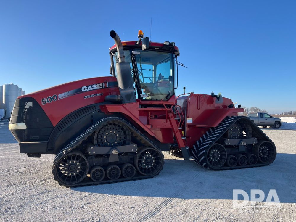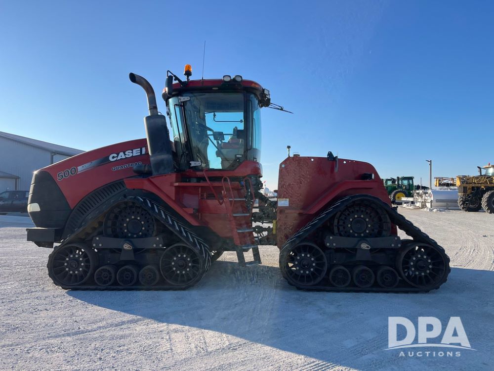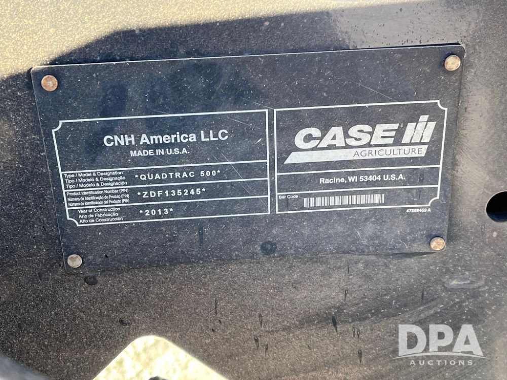 2013 Case IH 500 Quadtrac Tractor (JN3977), 12.9L FPT engine (large block replaced less than 800 hrs.), 16F/2R full powershift transmission, enclosed cab with leather, buddy seat, heat, air conditioning, radio, 1,000 PTO, working hydraulics, 30" tracks, Pro 700 factory monitor, shows 4,982 hours.