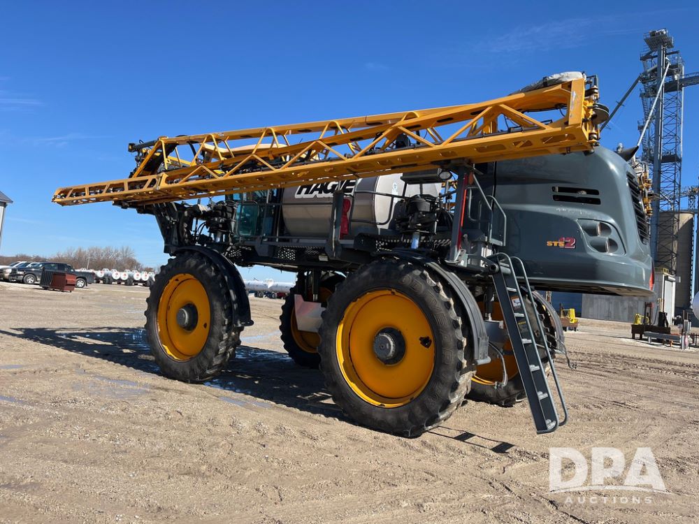 2018 Hagie STS12 Sprayer (JN3983), 6.7L Cummins engine, 300HP, hydrostatic transmission, air conditioning, heat, Delhi Bluetooth radio, 1200 gallon stainless steel liquid system, 120' boom, Good Year 380/105R50 row crop tires, fenders, Raven Viper 4 monitor, shows 2,879 hours.