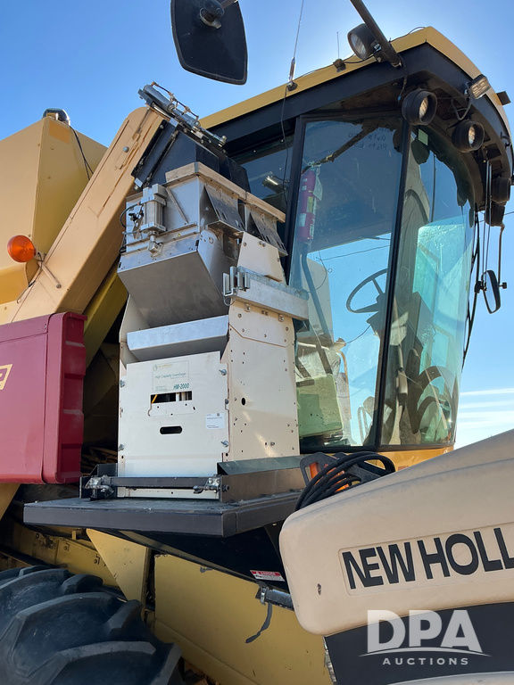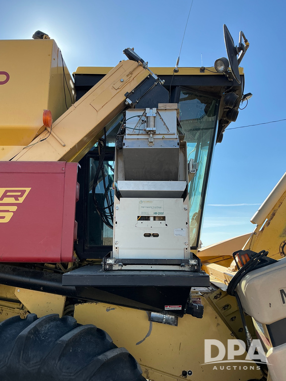 2000 New Holland TR86 Research Combine (NP6490), 2000 New Holland TR86 Combine, cab, diesel engine, side dicharge auger, New Holland corn head, HarvestMaster High Capacity HM-2000 GrainGage, shows 681 hours.