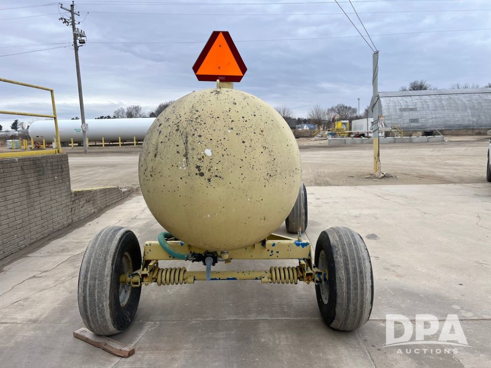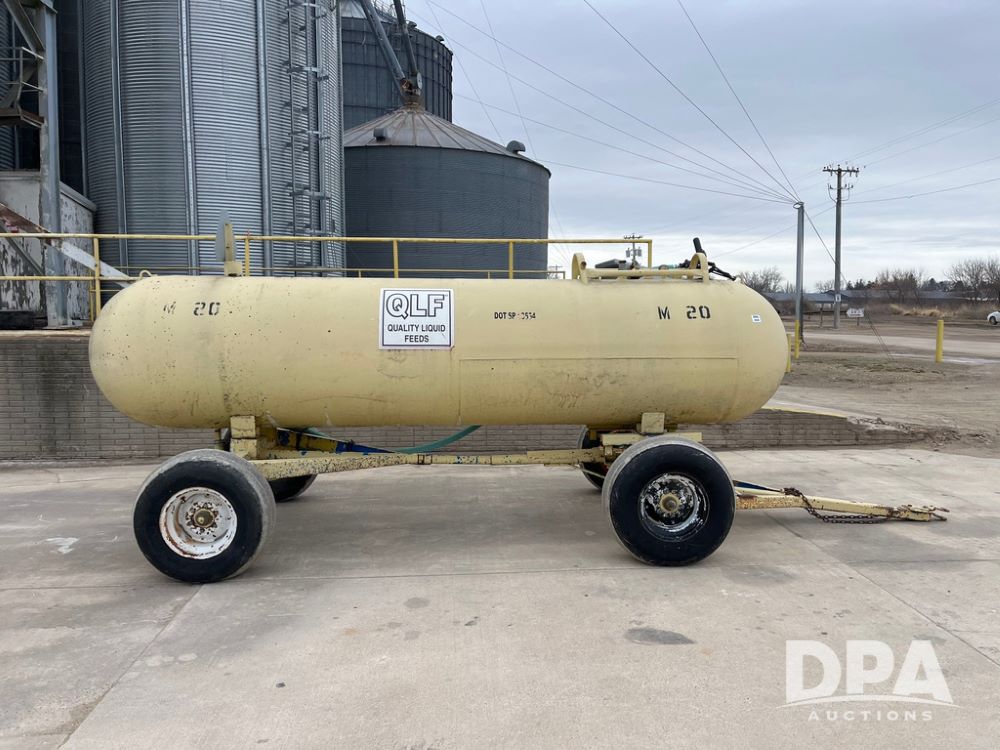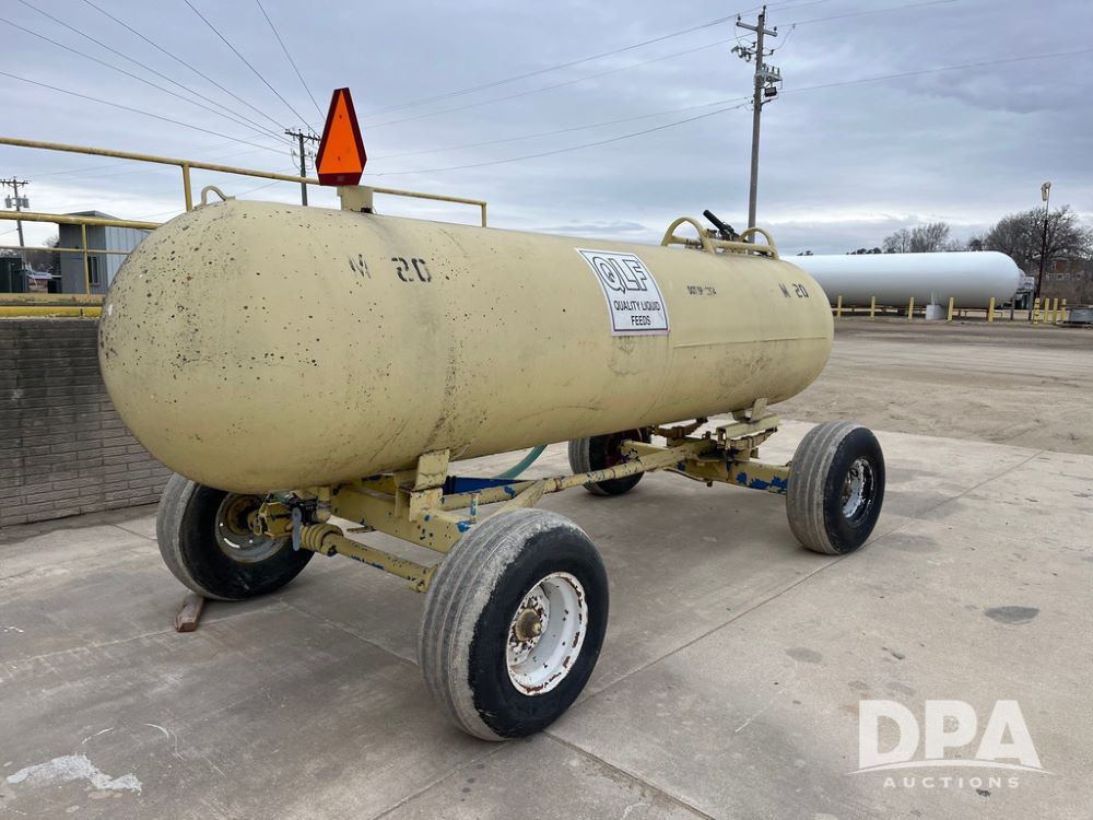 Liquid Feed Tank (JN3990, Unit M20), 1000 gallon portable liquid feed tank, top front fill, hose, 5th wheel running gear, 11L-15 flotation tires.