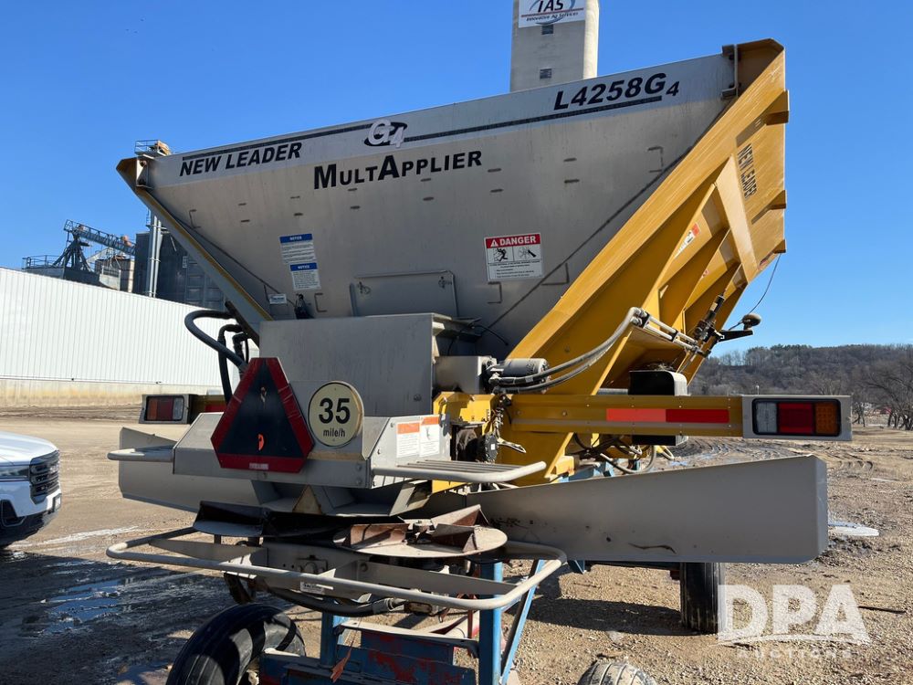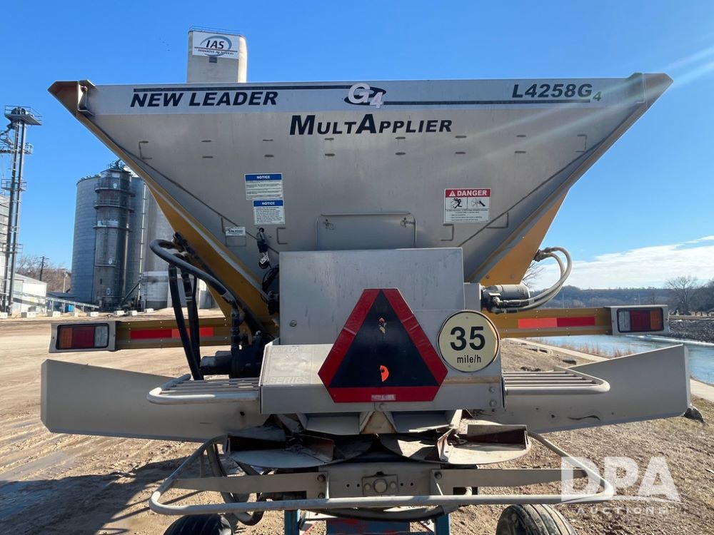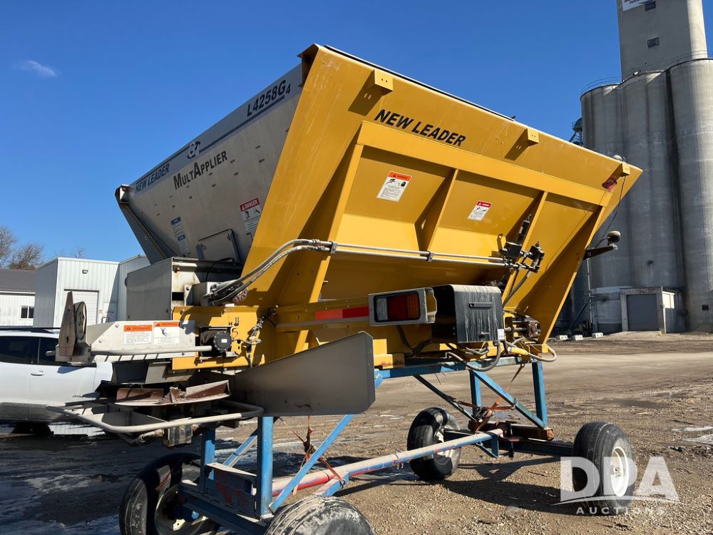New Leader L4258 G4 Dry Spreader Box (JN3995), New Leader L4258 G4 dry spreader box, twin spinner, all hydraulic, New Leader Multapplier 5' stainless steel insert (S/N 414071),