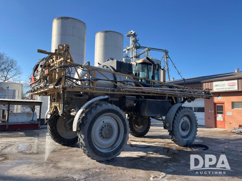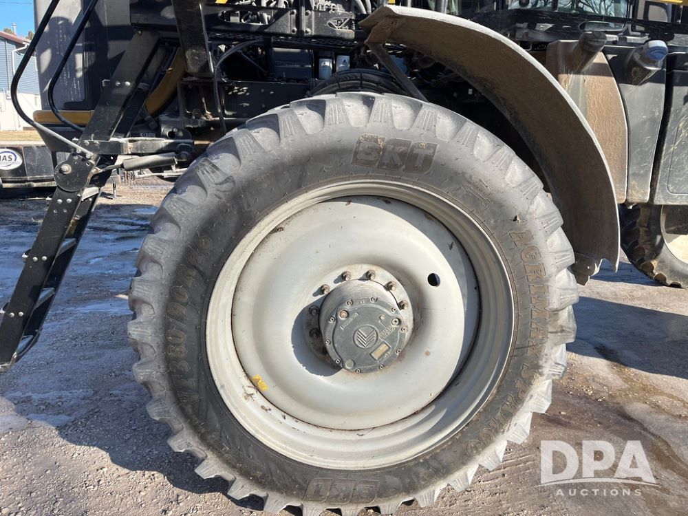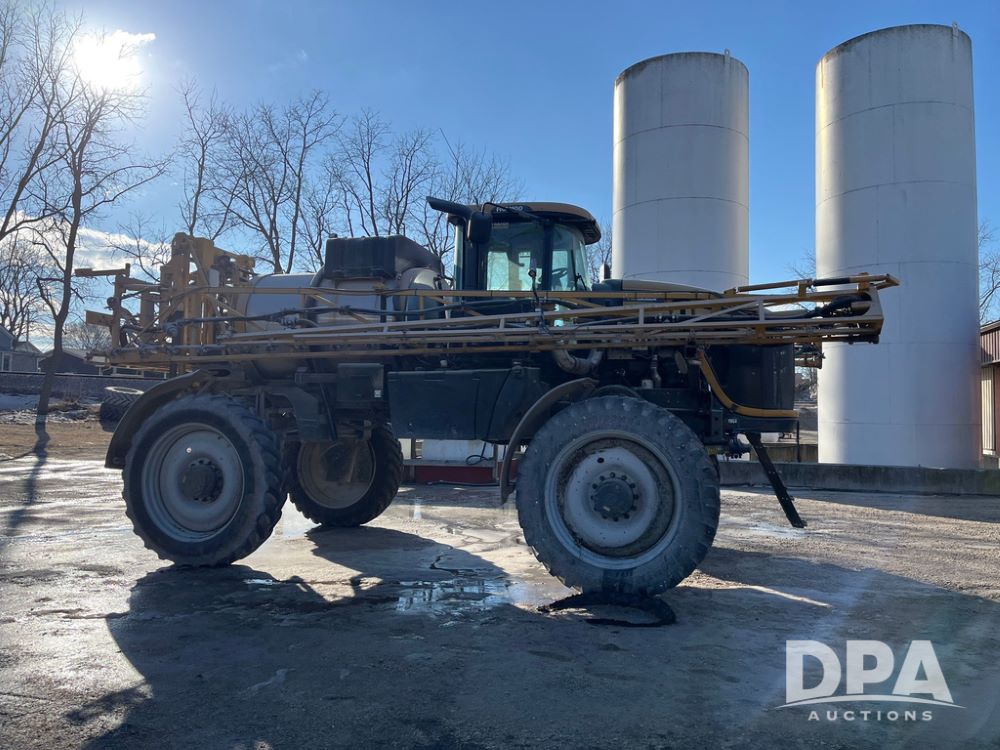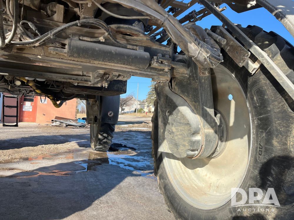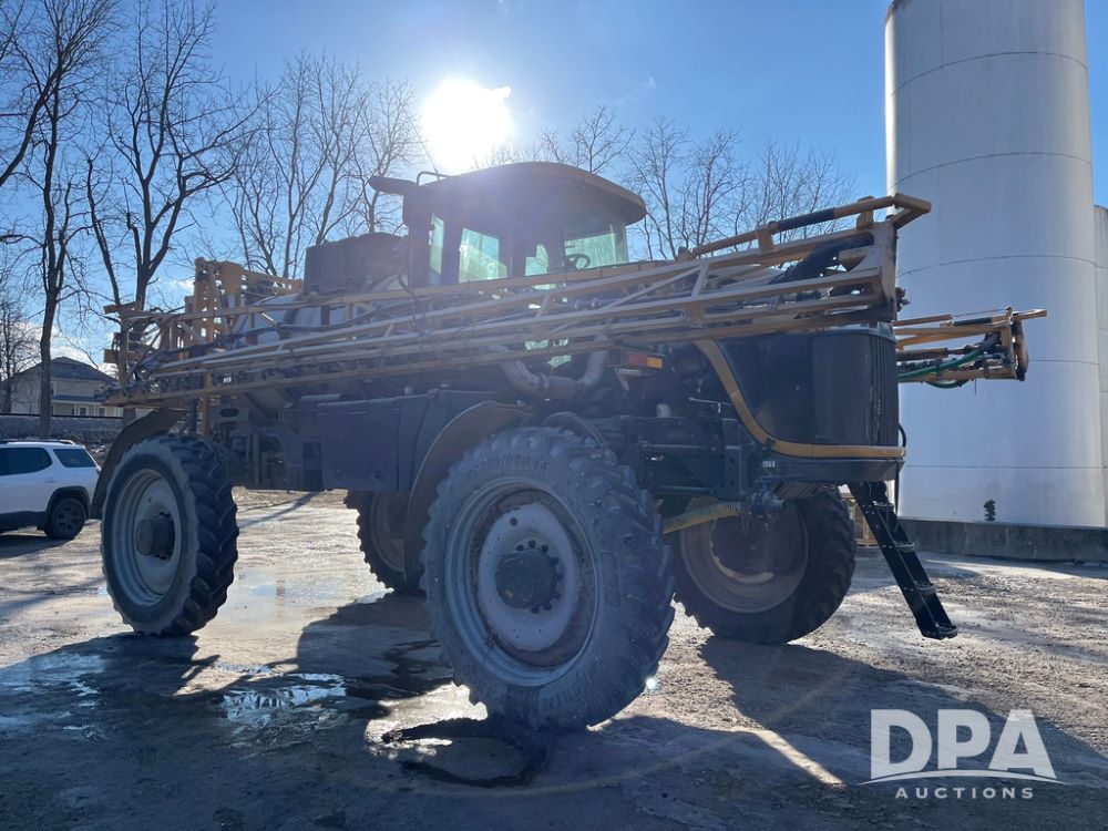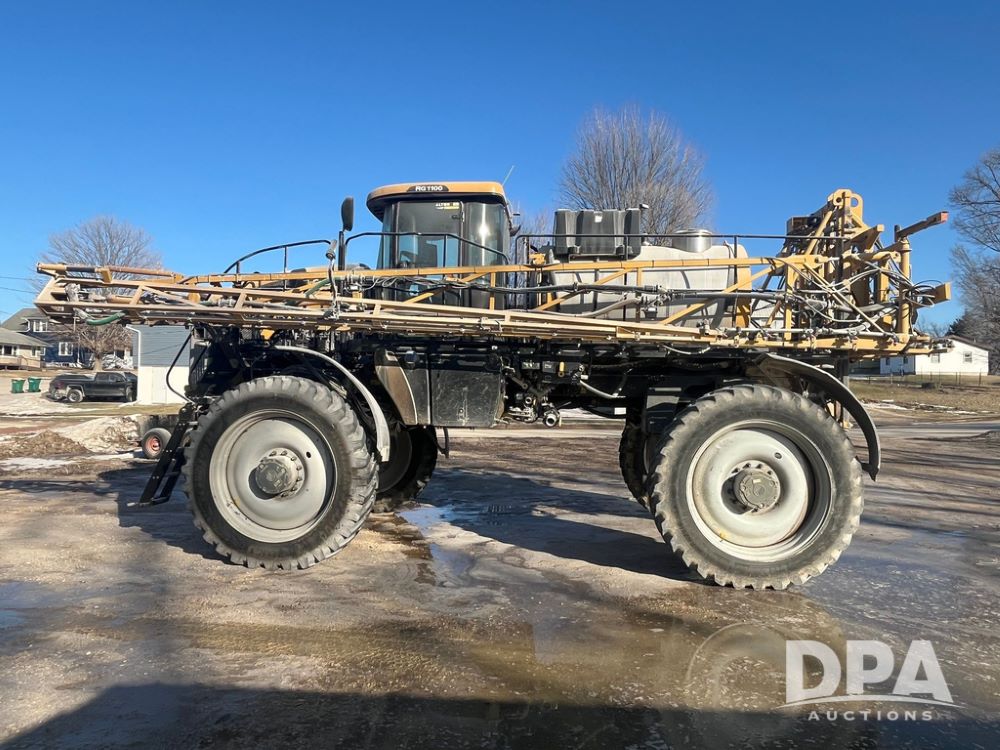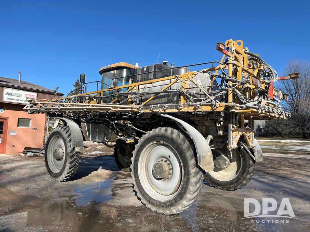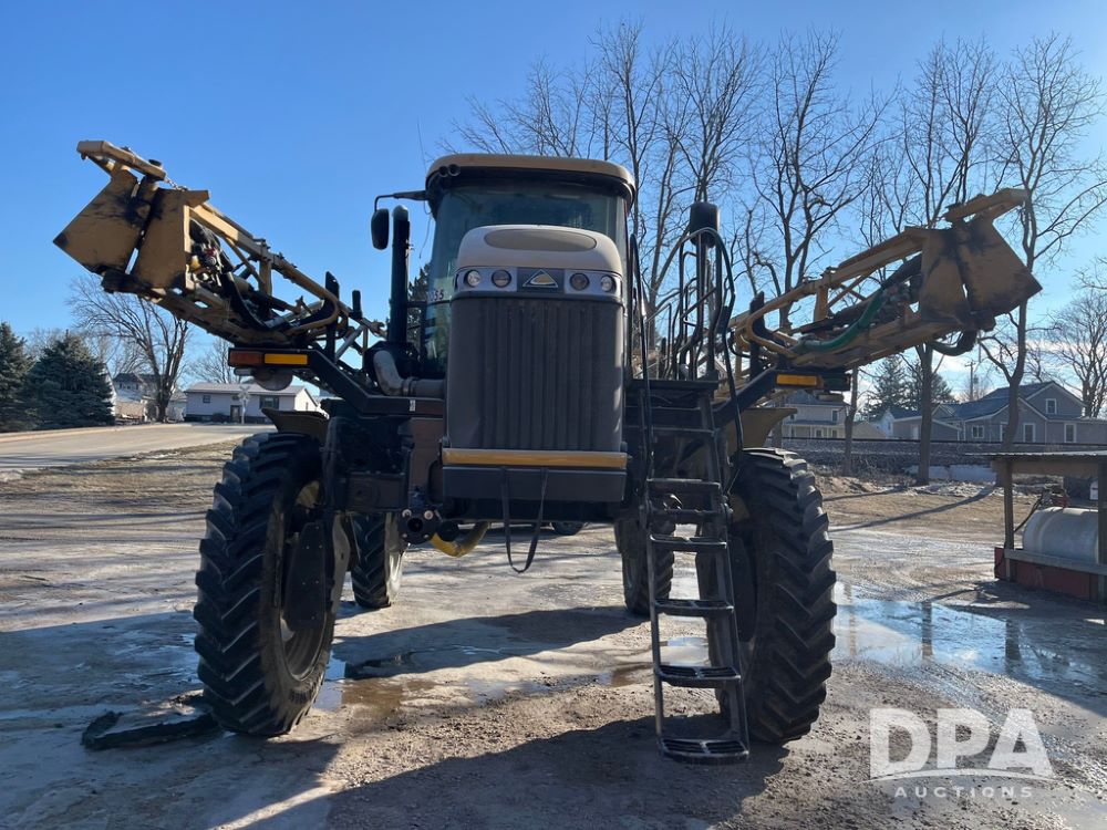 2013 RoGator 1100 Sprayer (JN3997, Unit 1055), AGCO diesel engine, hydrostatic transmission, air conditioning, heat, Am/Fm radio, buddy seat, 1100 gallon stainless steel liquid system, 100' boom, top poly rinse tank, front fill, BKT Agrimax Spargo, Firestone and Michelin VF380/90R46 tires, fenders, Raven Viper Pro monitor, shows 3,483 hours.