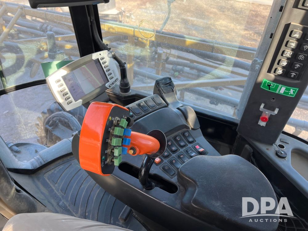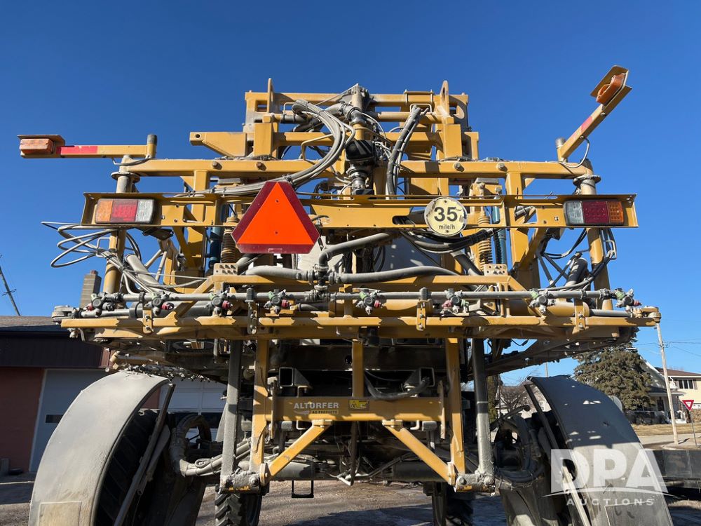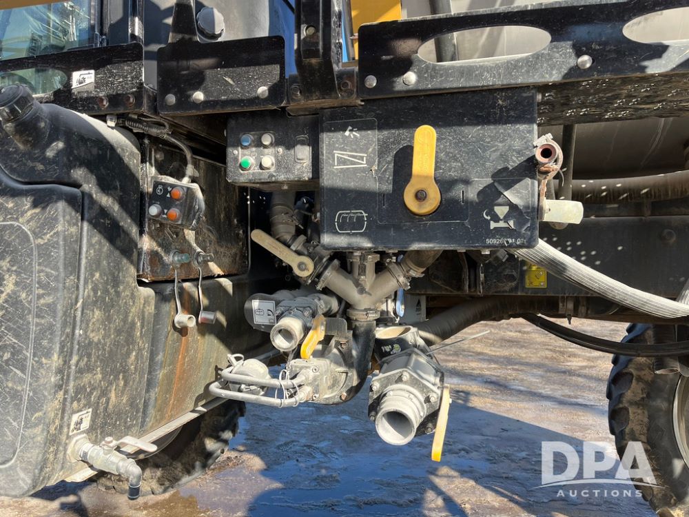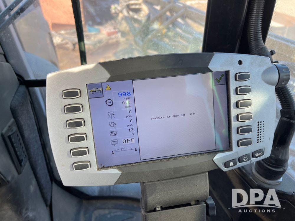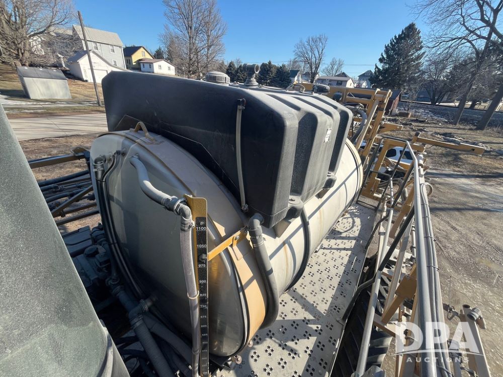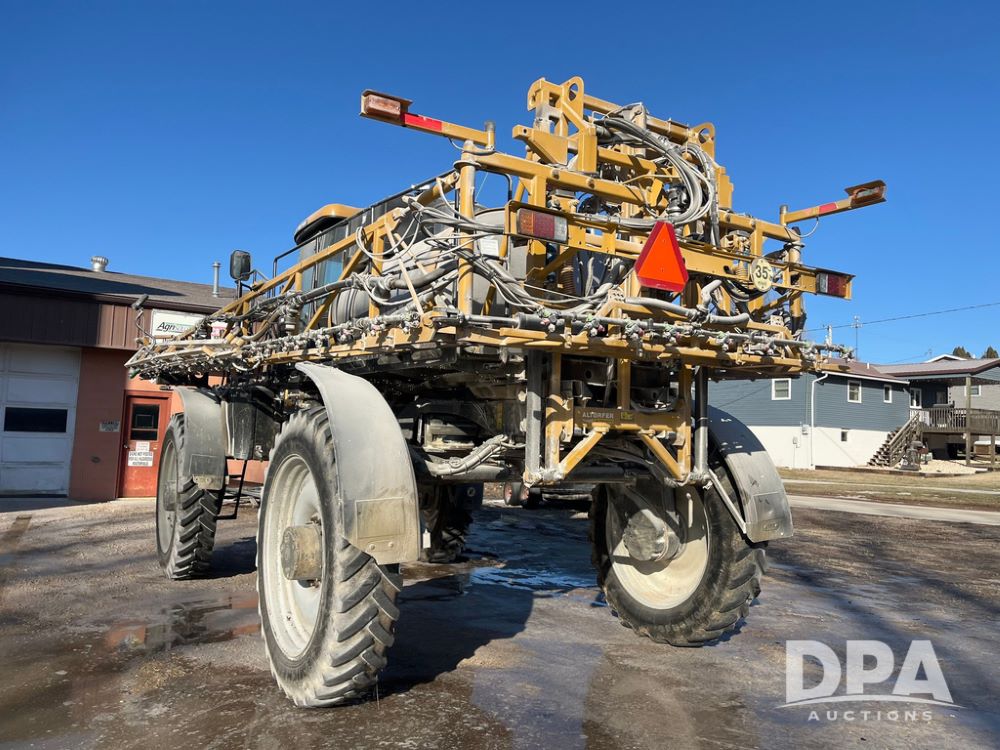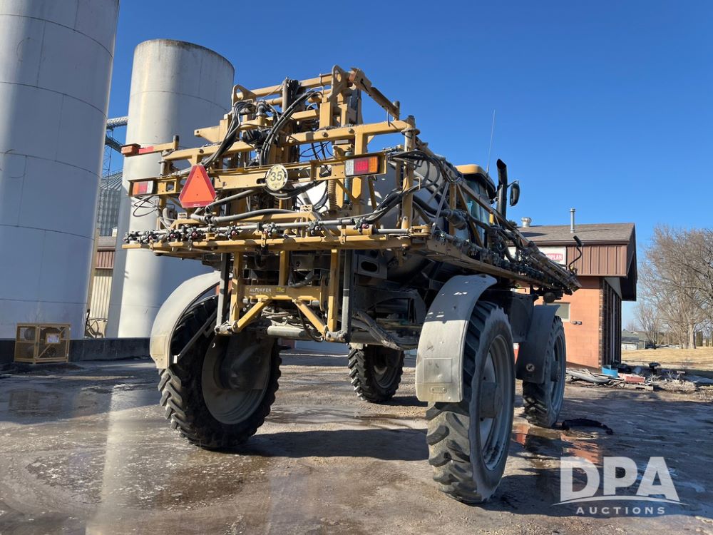 2013 RoGator 1100 Sprayer (JN3997, Unit 1055), AGCO diesel engine, hydrostatic transmission, air conditioning, heat, Am/Fm radio, buddy seat, 1100 gallon stainless steel liquid system, 100' boom, top poly rinse tank, front fill, BKT Agrimax Spargo, Firestone and Michelin VF380/90R46 tires, fenders, Raven Viper Pro monitor, shows 3,483 hours.